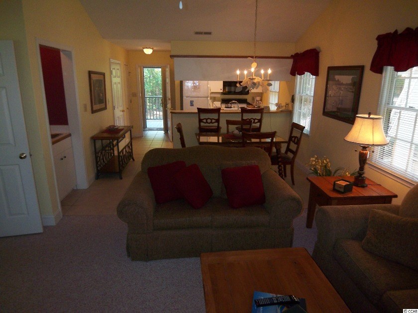 2 bedroom, 2 bath Golf Villa overlooking the 11th fairway of Pawleys Plantation Golf and Country Club, a Jack Nicklaus Signature Golf Course. Tastefully furnished and decorated with cathedral ceiling, wet bar, screened porch with sliders, and one-bedroom lockout. Lockout bedroom has private bath and kitchenette area complete with mini-fridge, microwave and coffee pot. Recent carpet, mattresses, bedroom furniture, and 3 flat screen TV'S. Air handler replaced in April of 2011. Refrigerator replaced in 2014. Transferable Golf membership is available to be purchased separately. Come and enjoy the Low Country's nearby beaches, fine and casual dining, shopping, (Famous Hammock Shops) Huntington State Park, (Famous BrookGreen Garden). Historic Charleston 65 miles plus or minus south.