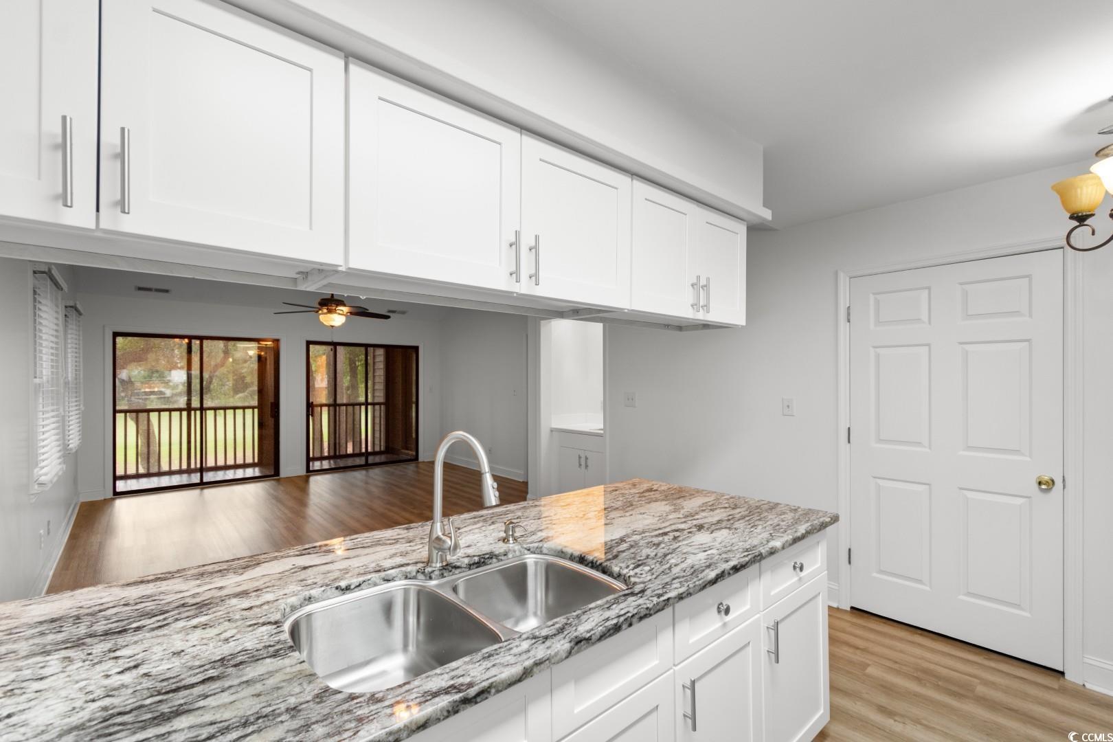 Nestled within the prestigious Weehawka Woods of Pawleys Plantation, this beautifully renovated 2-bedroom, 2-bath condo is your gateway to the coveted Pawleys Island lifestyle. As you step inside, you'll be greeted by an open and airy living space, highlighted by vaulted ceilings and an abundance of natural light. This home has been completely transformed with a totally renovated interior. Every detail has been thoughtfully updated, including new LVP flooring throughout, new soft-close kitchen cabinets, and a fresh coat of paint. The kitchen is a true centerpiece, featuring sleek granite countertops and stainless steel appliances, perfect for a quiet night in or entertaining guests. One of the unique features of this condo is its versatile lock-out unit setup, providing endless possibilities. Use it to host guests, generate rental income, or offer private living space for family members. After a day of golf or exploring the island, you can unwind on the peaceful screened-in back porch with a good book, a gentle ocean breeze with a view of the golf course. The Pawleys Plantation community offers a wealth of amenities just steps from your front door. You can spend your days lounging by the community pool, staying active in the clubhouse gym, or exploring the scenic walking trails. For the avid golfer, an optional Golf Buy-In is available, providing access to one of the area's premier courses. Living here means you're just minutes away from all the best of Pawleys Island, boutique shops, top-rated restaurants, and the tranquil shoreline of the Atlantic Ocean. This isn't just a home; it's a lifestyle upgrade. This property offers the perfect blend of charm, comfort, and convenience, making it an ideal choice for a full-time residence, a second home, or a profitable rental opportunity!