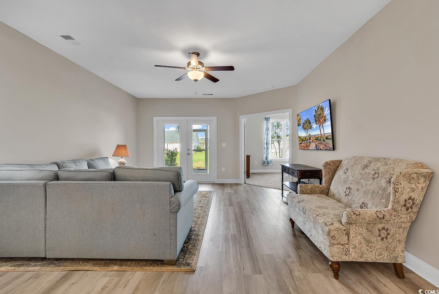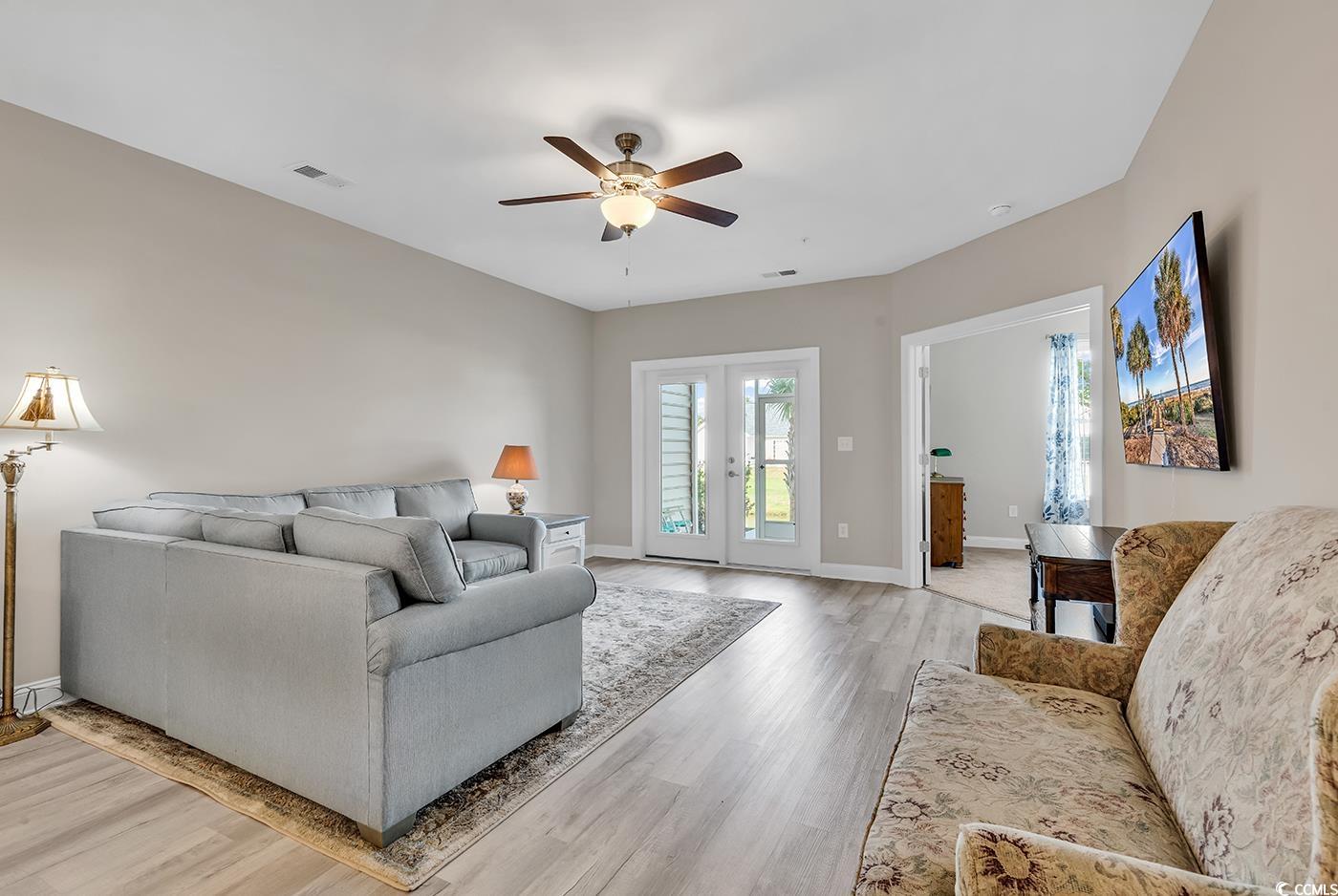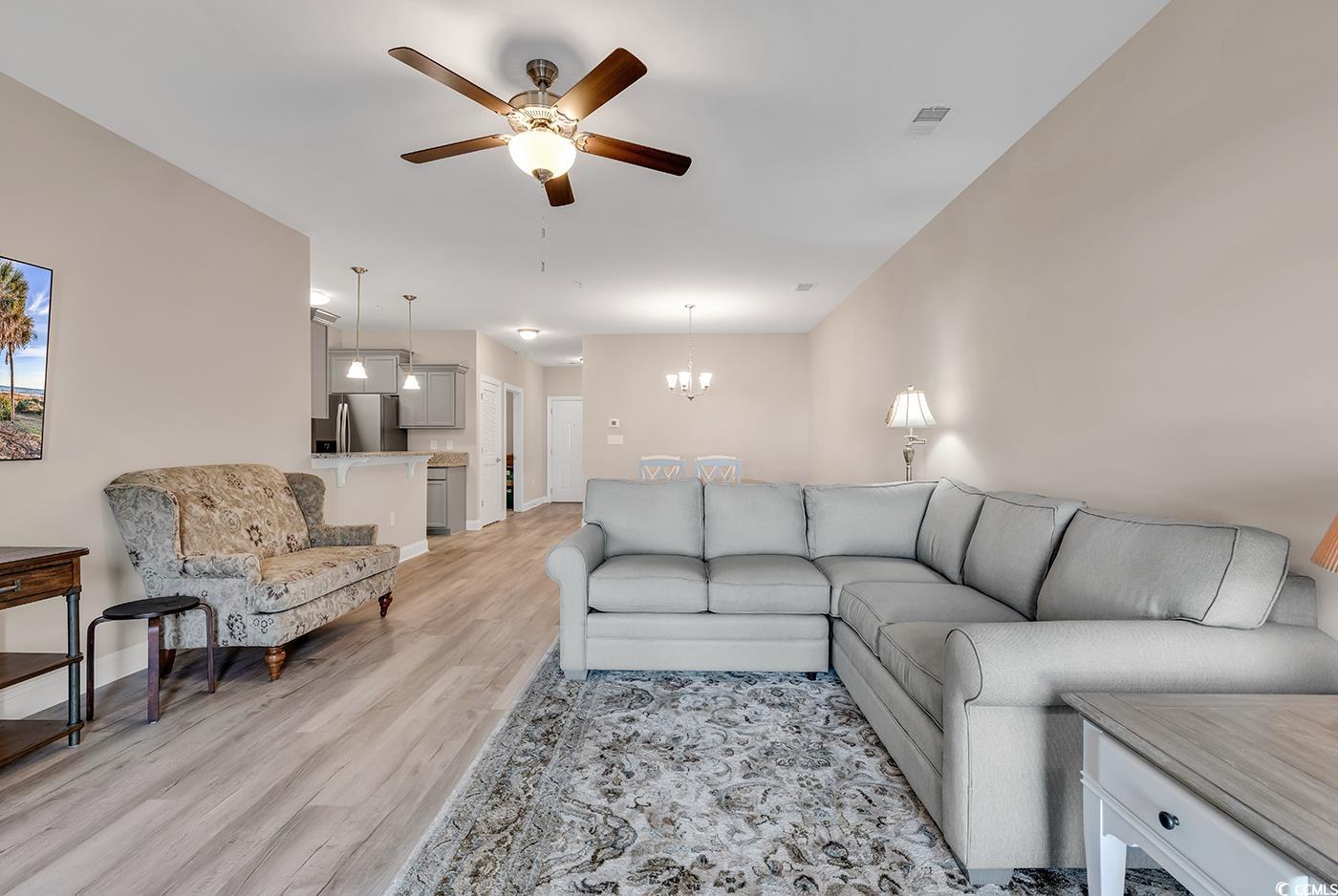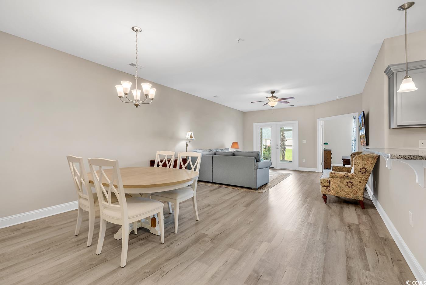 This beautifully appointed 2 bedroom, 2 bath ground floor home is immaculate and in almost new condition. The open living space features luxury vinyl planking, while light neutral tones create a warm and inviting atmosphere. The modern kitchen boasts stainless steel appliances, granite countertops, a breakfast bar, more than ample pantry space and fully trimmed cabinetry, ideal for both everyday living and entertaining. The primary bedroom is accessed through elegant princess doors and offers a serene retreat with plush carpeting for added comfort. Ensuring privacy, the guest bedroom is separated from the primary bedroom and has a guest bath just across the hallway. The spacious laundry room has extra shelving and a folding area. Step through the back door to the screened porch where you are sure to enjoy peaceful views of the pond or sunbathe on the patio. Additionally just outside of the front door an exterior storage area is perfect for luggage, beach chairs and coolers. Resort-style amenities, including a community pool, grill area, and clubhouse make this the perfect spot to call home. Located just a short drive from the stunning blue waters of the Atlantic Ocean and white sandy beaches, this home is close to golf courses, watersports, shops, dining, entertainment, Market Common, and the Murrells Inlet Marsh Walk. Come find your own place in the sun today!