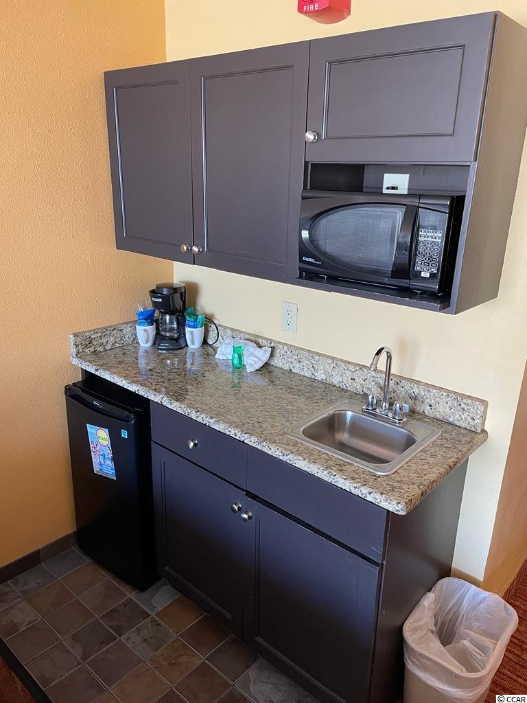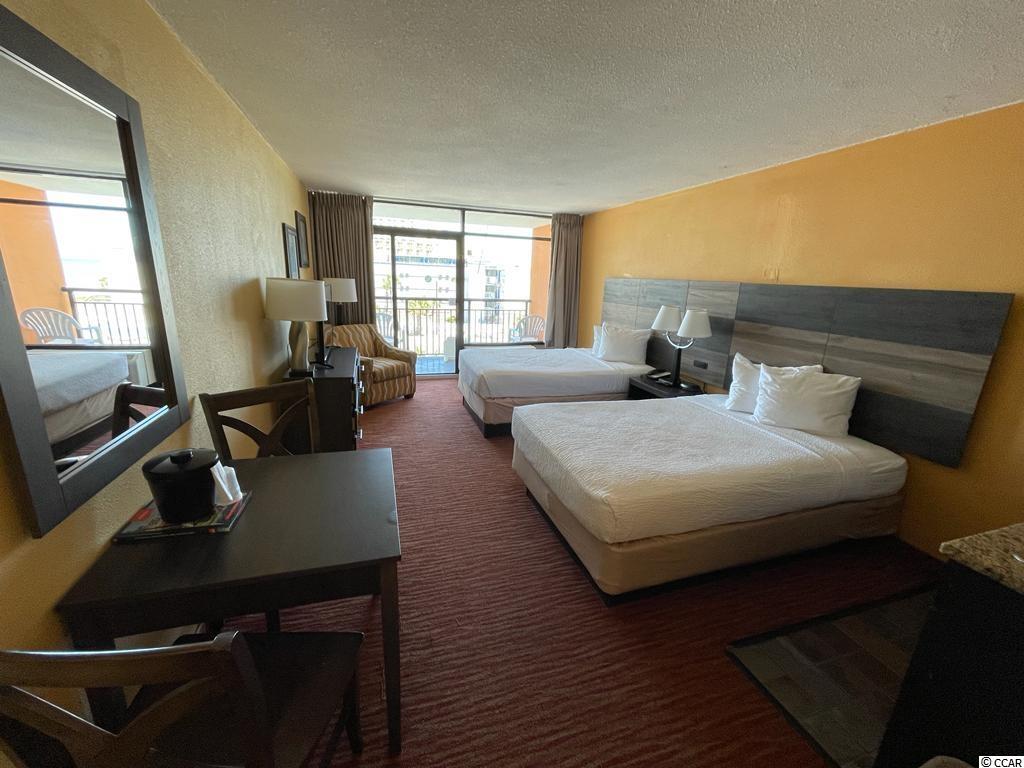 Great efficiency ocean view condo at Landmark Resort on the fourth floor. This furnished condo comes with granite countertops, a minifridge, microwave, and private balcony. Landmark has all the amenities such as indoor and outdoor pools, lazy rivers, kiddie pools, fitness room, arcade, on-site Starbucks, inside and outside restaurants. Landmark Resort is located in the heart of Myrtle Beach, close to shopping, restaurants, attractions, and the airport!