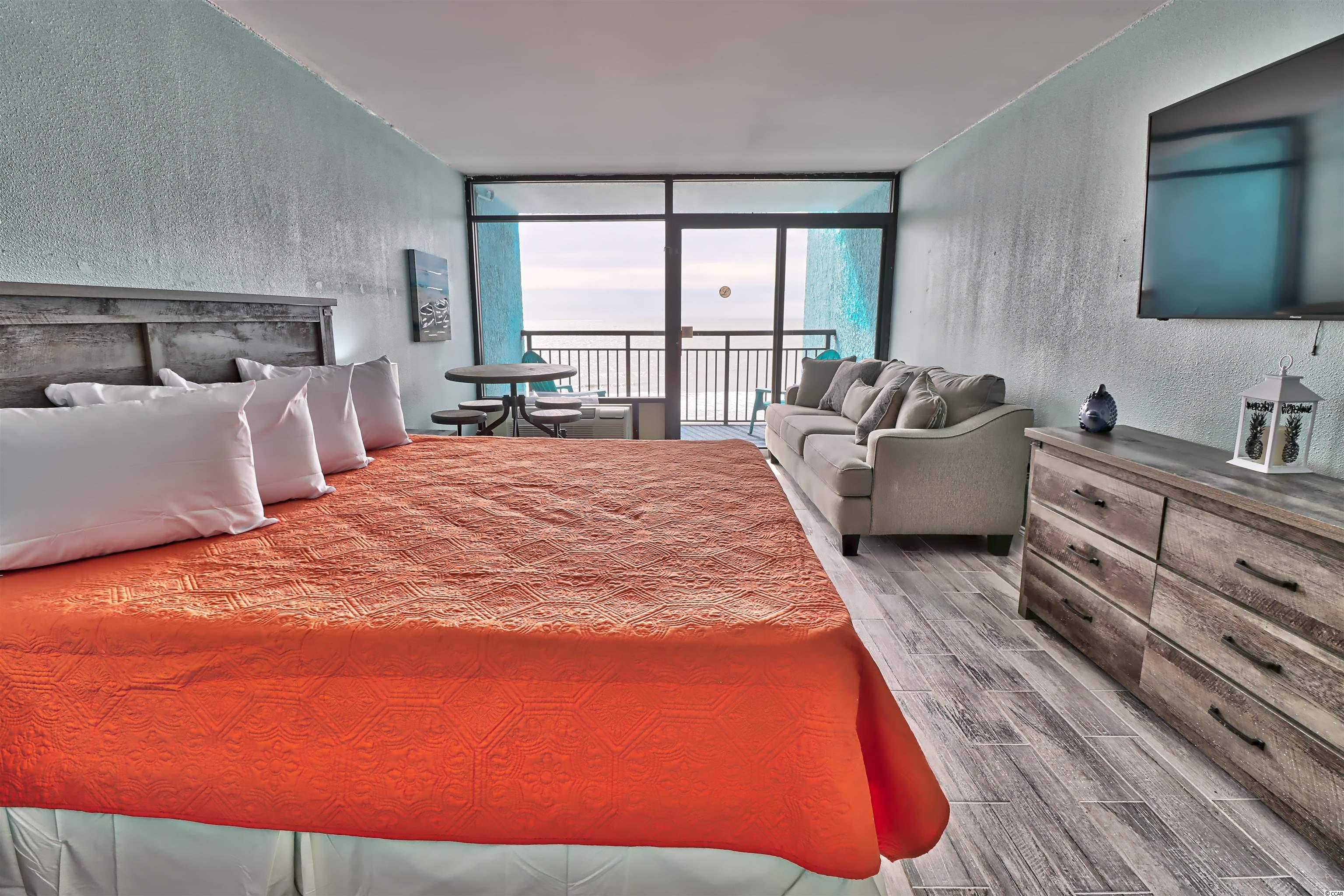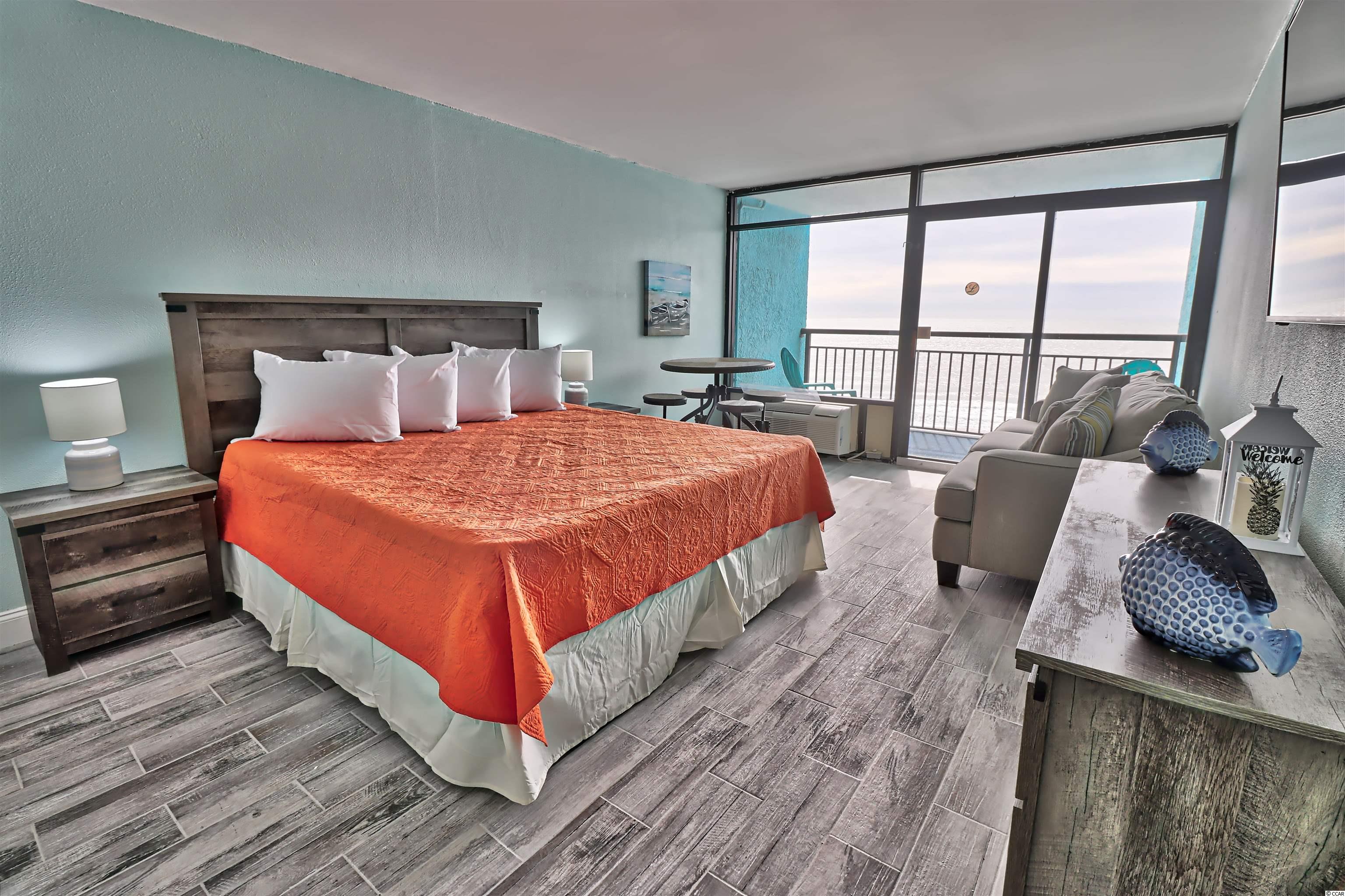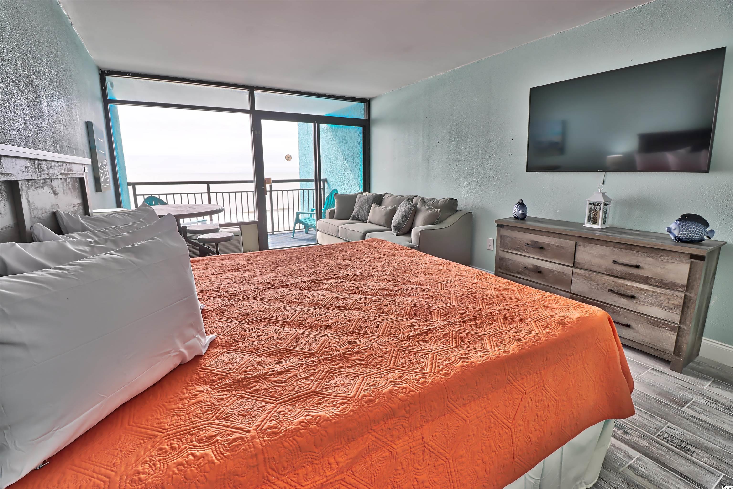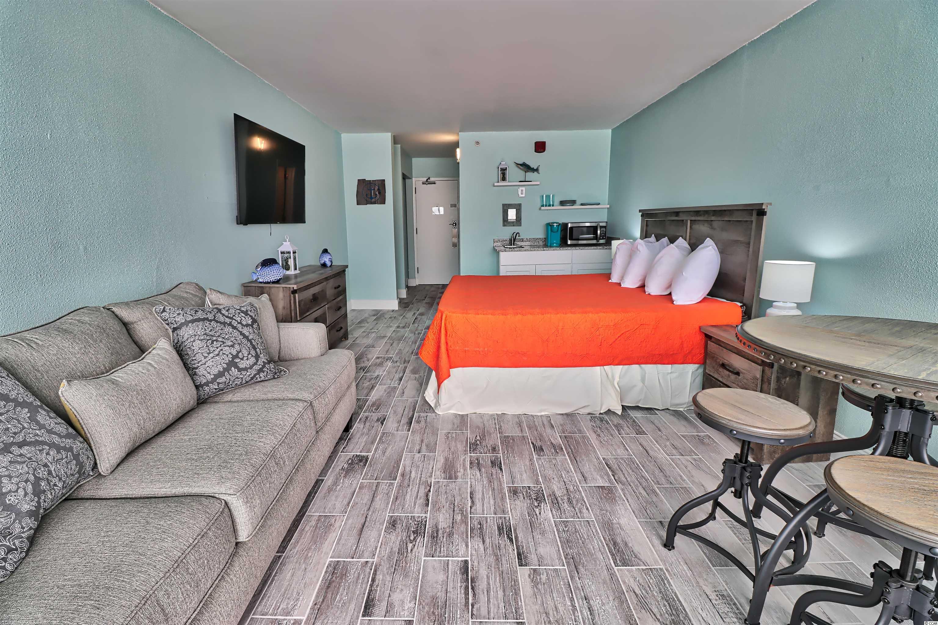 Oceanfront efficiency in the ever popular. Landmark Resort. Great rental income! Condo was renovated with new tile floors, HUGE TV, new furniture, new paint, and more. Landmark is well known for its awesome indoor water area, along with outdoor amenities as well. Make sure you see this beautiful unit!