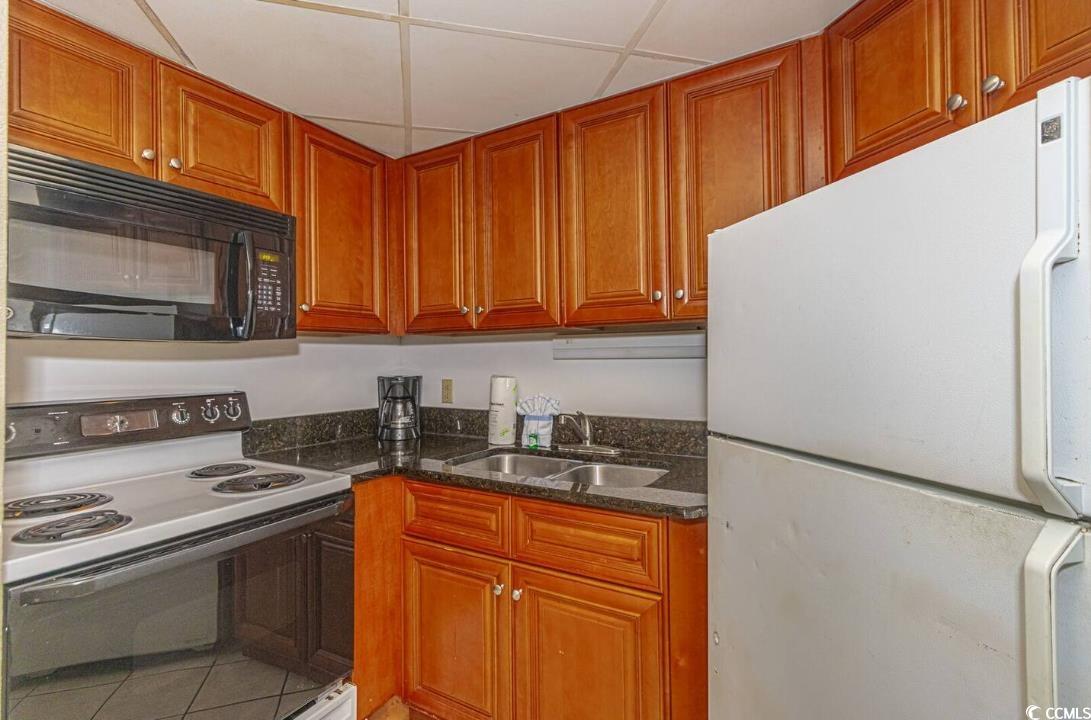 Check out this 5th floor, ocean view condo in the Landmark Resort, conveniently situated oceanfront on the south-end of Myrtle Beach and is just a short drive from endless attractions, dining and show options. This 1-bedroom condo is fully furnished with 2 full size beds, 1 full size murphy bed, and will comfortably accommodate up to 6 guests. The kitchen features a full-size stove and oven, oversized cabinet space, mounted microwave, granite countertops and full-size fridge. The bathroom is split into 2 areas with the toilet, vanity, and shower/tub in one, and an additional sink and vanity in the other. The vanity features a solid surface counter, mirror, hair dryer, and sink. This resort allows you to enjoy year-round dining, indoor and outdoor pools, a lazy river and a brand-new waterpark featuring 17 water attractions.