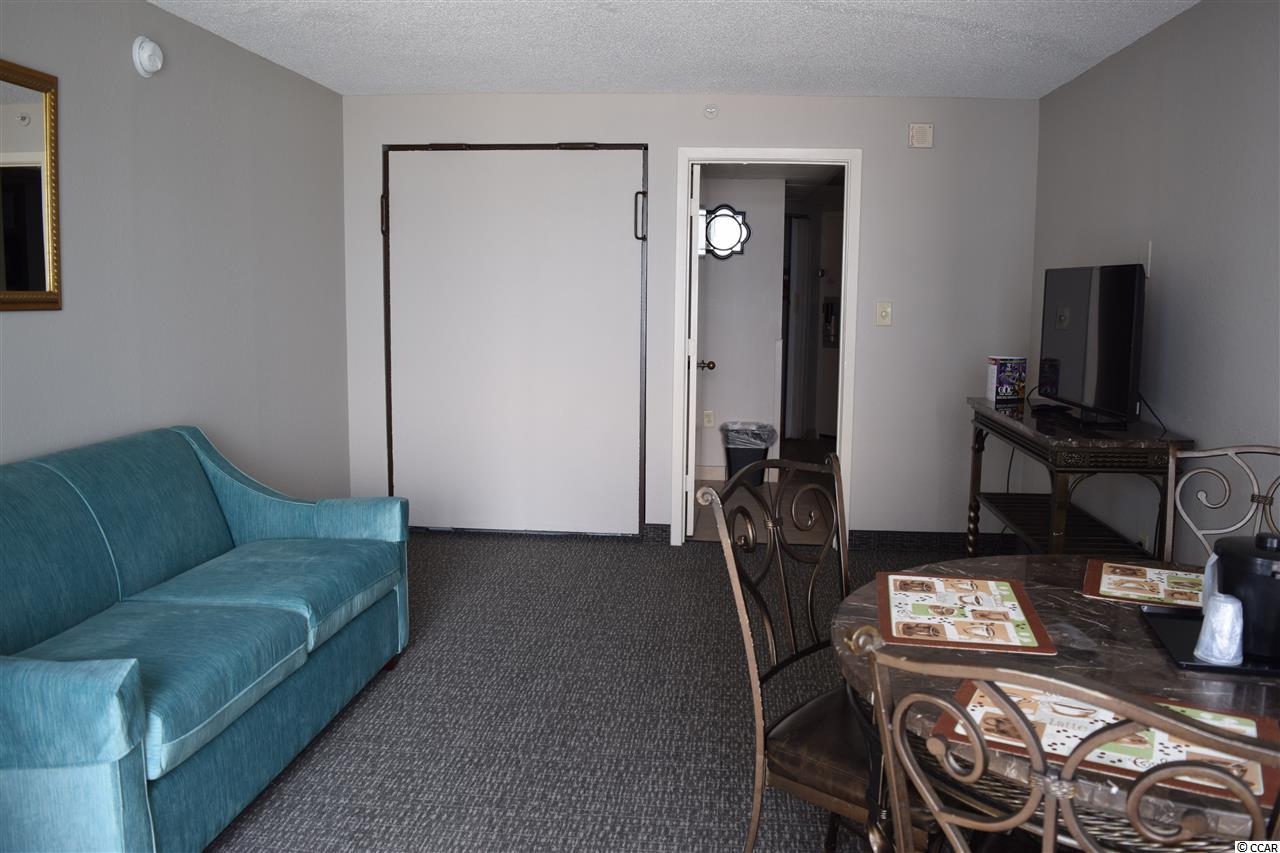 Great ocean view from this condo that lives like a 2 bedroom. You enter into a foyer area that boasts a full size corner kitchen and full bath with a separate vanity area. The bedroom has two queen beds and another balcony. The family room has a Murphy bed and sleeper sofa and has a door that can be closed like the main bedroom. The Landmark resort has great amenities including a lazy river, water park, massive inside pool and hot tubs, big outside pools, fitness center, game room, restaurant, bar, coffee shop, large conference center and so much more.