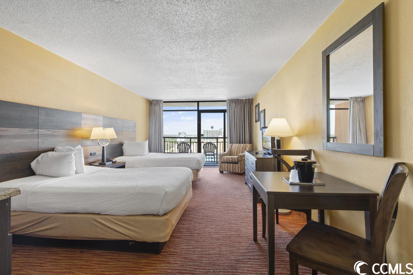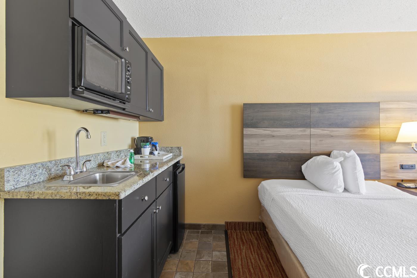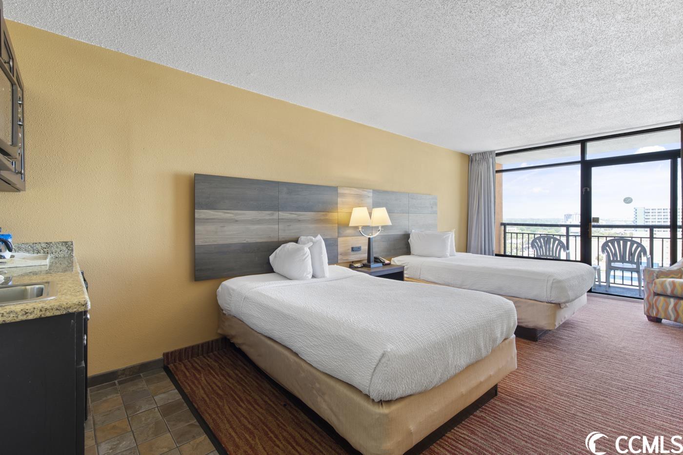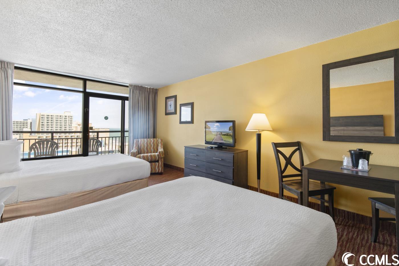 This is your chance to purchase an ocean view efficiency in Landmark Resort in beautiful Myrtle Beach, South Carolina! This ocean view efficiency is the perfect place for a beach vacation with stunning views. This cozy and comfortable efficiency features two queen beds, a fully equipped kitchenette with a mini-fridge, a microwave, and a private balcony overlooking the Atlantic Ocean. It's the perfect place to sip your morning coffee and watch the sunrise or relax in the evening with a glass of wine and the sound of the waves. The Landmark Resort is a top-rated resort with a variety of amenities and activities for guests of all ages. Take a dip in one of the indoor or outdoor pools, float down the lazy river, or soak in one of our hot tubs. Kids will love the splash pad and the waterpark while the adults enjoy the poolside bar. Don't forget about the numerous restaurants including Gazebo Restaurant, Latitudes Grill, and Havana Java Bar serving Starbucks all day.