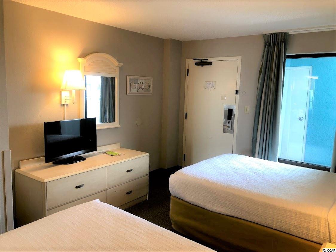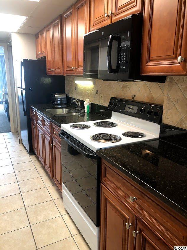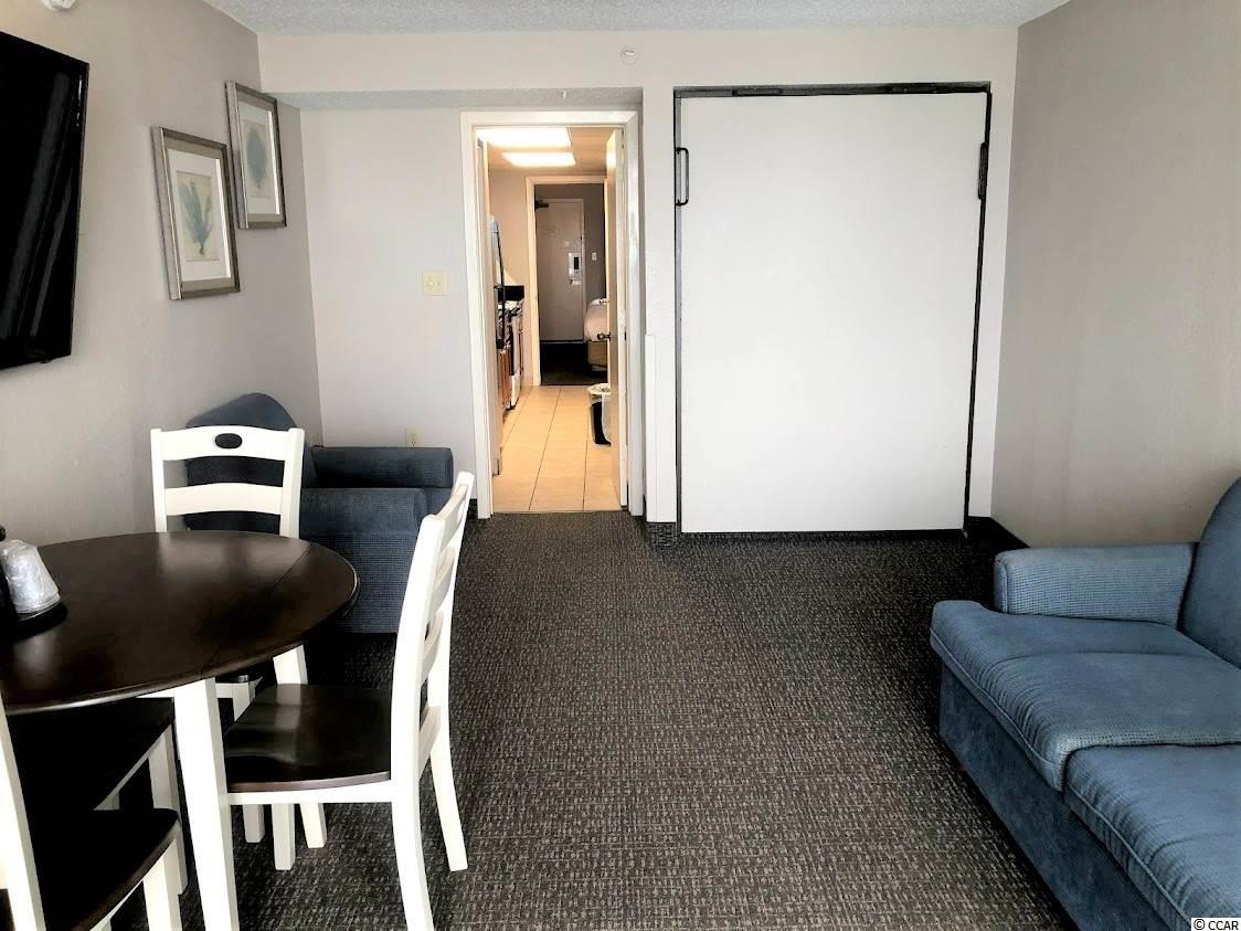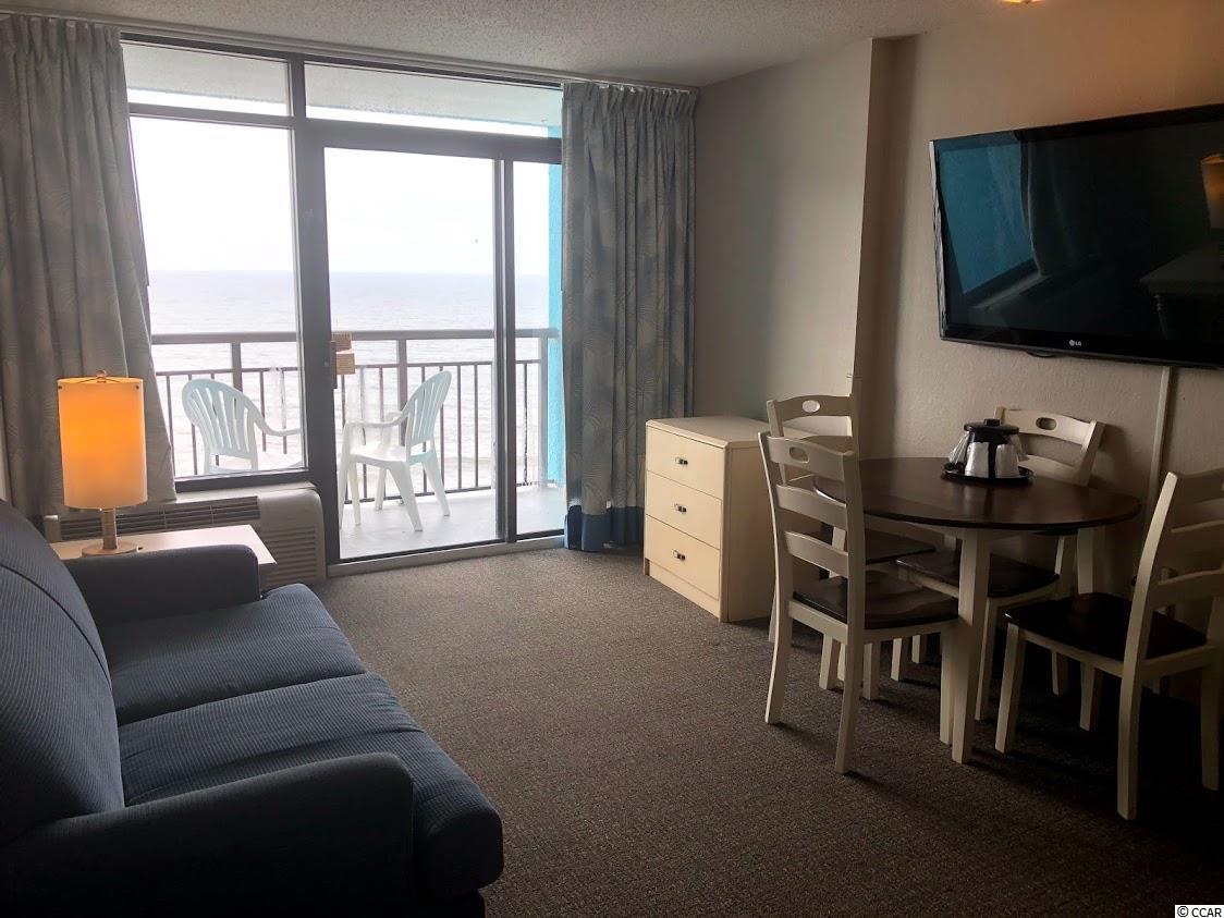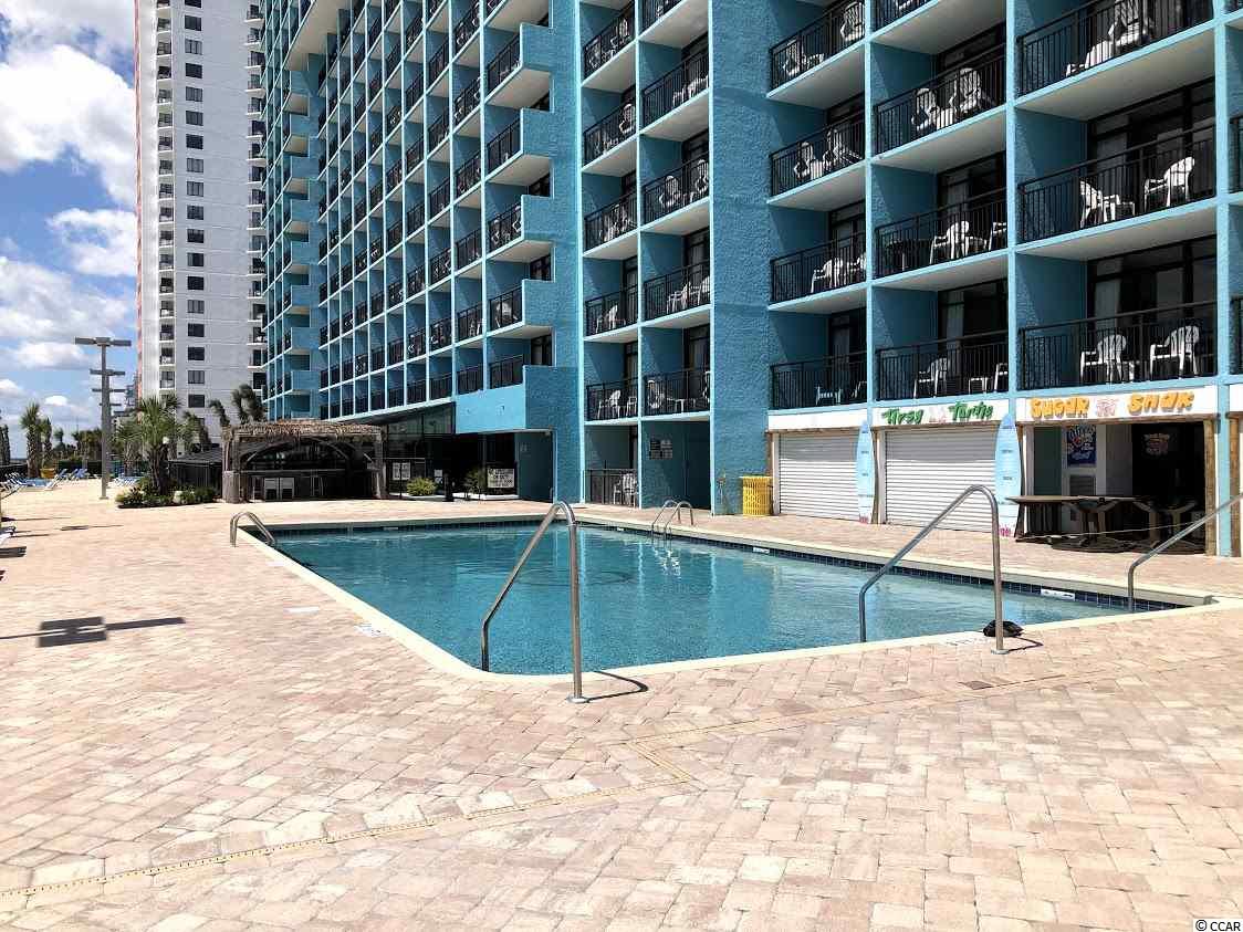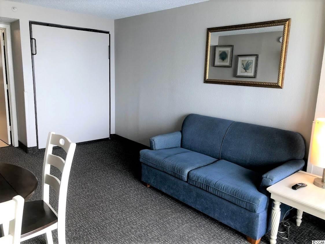 Beautiful 1 Bedroom 1.5 Bath direct Oceanfront Condo located in the desirable Landmark Resort. Must see this fully furnished updated condo including matching granite counters in the kitchen and bathrooms. Under mount sink with tile back splash in the kitchen. All the walls are freshly painted and carpet was replaced in Dec 2018. Refrigerator and living room curtains replaced in 2019. New table & chairs and slip resistant flooring on the balcony June 2020. Murphy bed in the living room area for additional sleeping area. The Landmark Resort is a popular oceanfront resort with pools galore, lazy river, workout facility, restaurant, and Starbucks! The landmark also offers convention & wedding banquet halls with enclosed parking garage and a covered walkway to the resort. Enjoy an oceanfront condo with great rental income that this unit provides.