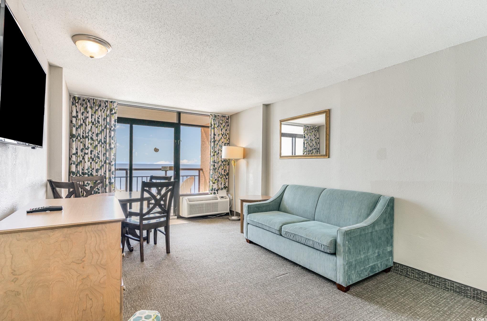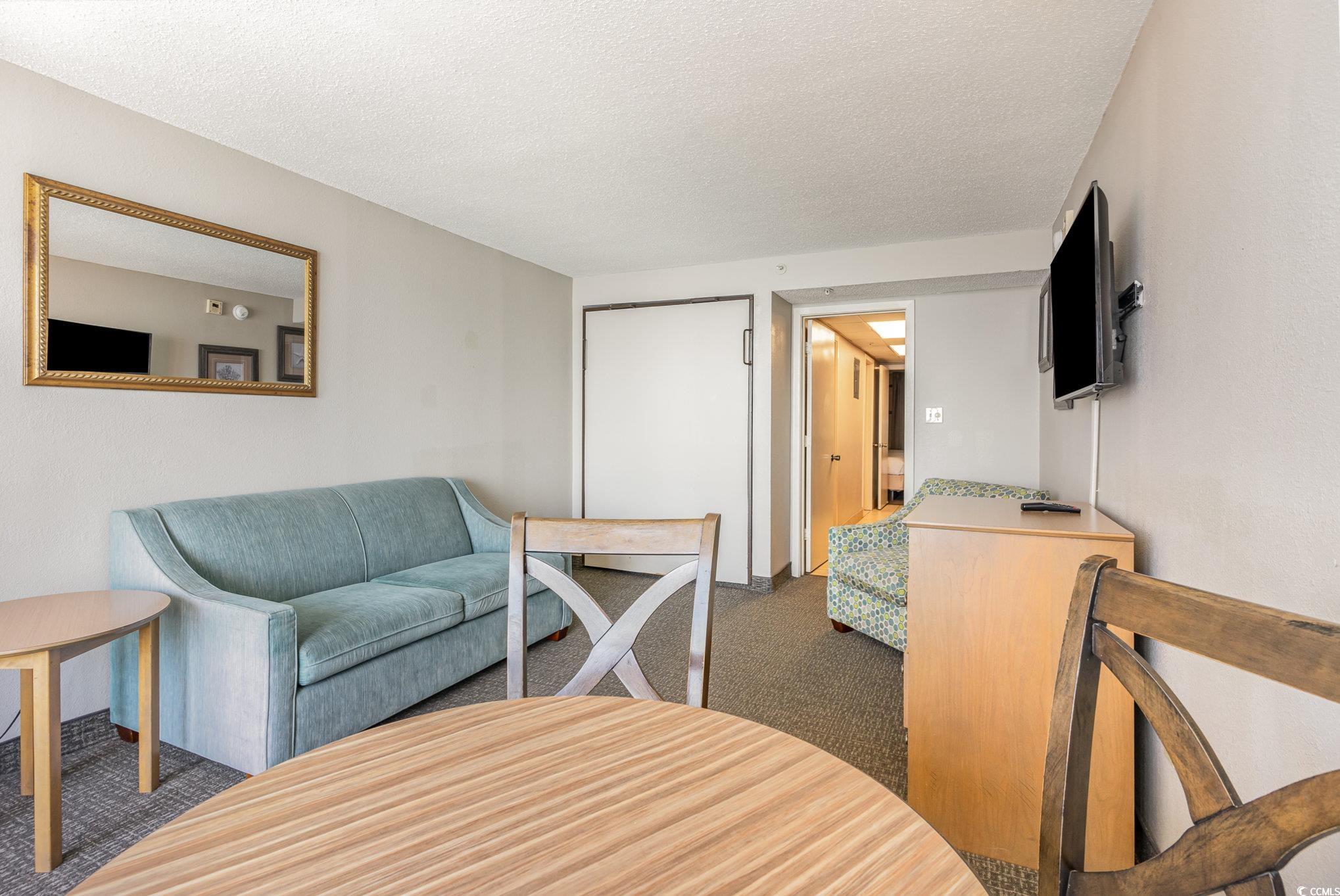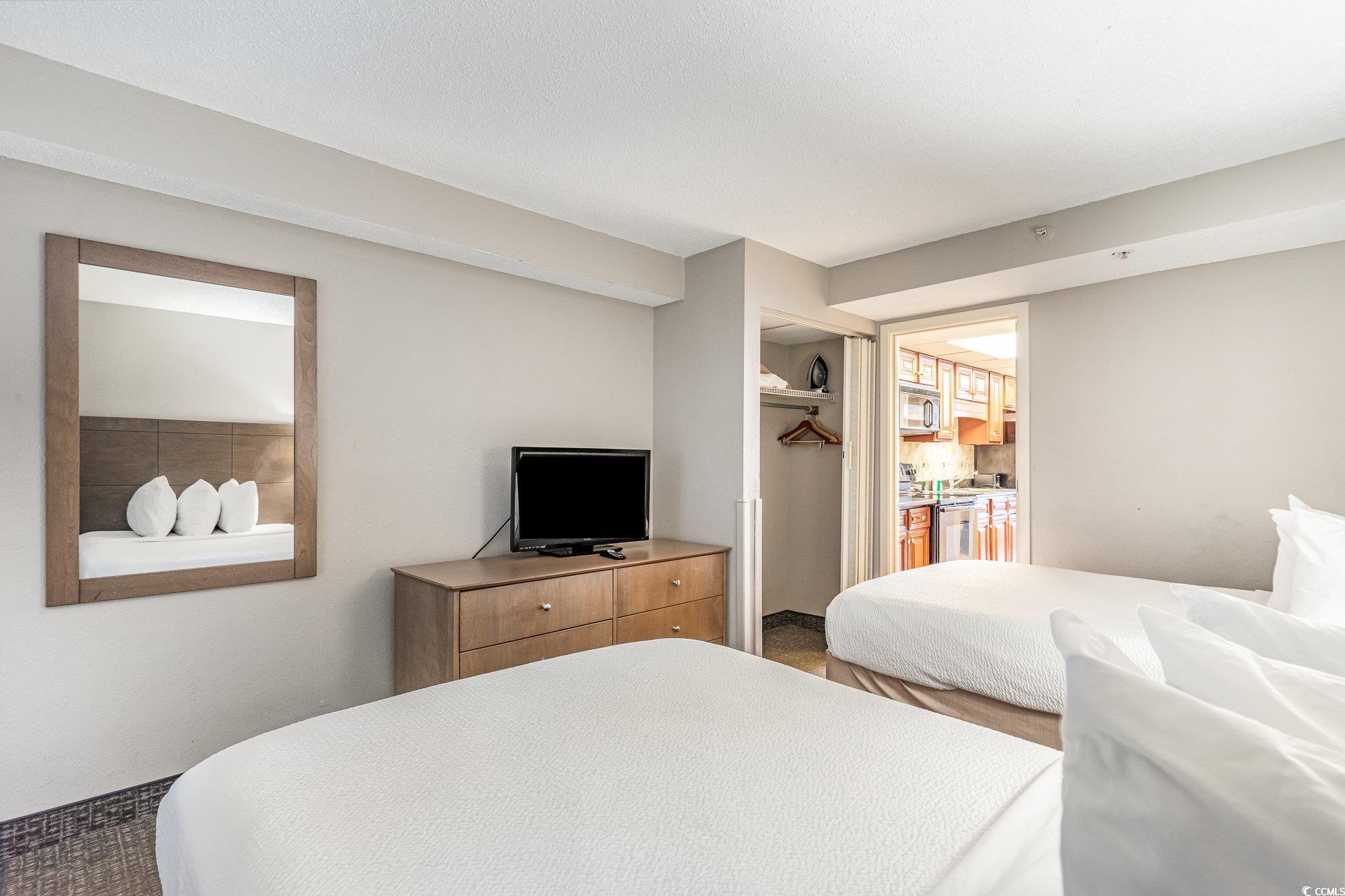 You must see this oceanfront 1 bedroom 1.5 bath unit situated on the 14th floor of the exciting Landmark Resort. This unit features a spacious kitchen equipped with a refrigerator, microwave, stove, and oven combo. In the multifunctional living room there is a small dining space, a couch and a pull-down Murphy bed, as well as sliding glass doors out to the balcony. This bathroom has a vanity in the middle and 2 showers and 2 toilets on each side. In addition to its fantastic views of the ocean, the Landmark Resort offers numerous great amenities such as outdoor and indoor pools, indoor and outdoor lazy rivers, hot tubs, and spas, as well as Starbucks, a game room, a newly built waterpark, and much more! Whether it is an investment or a relaxing beach getaway, this unit checks off all the boxes.