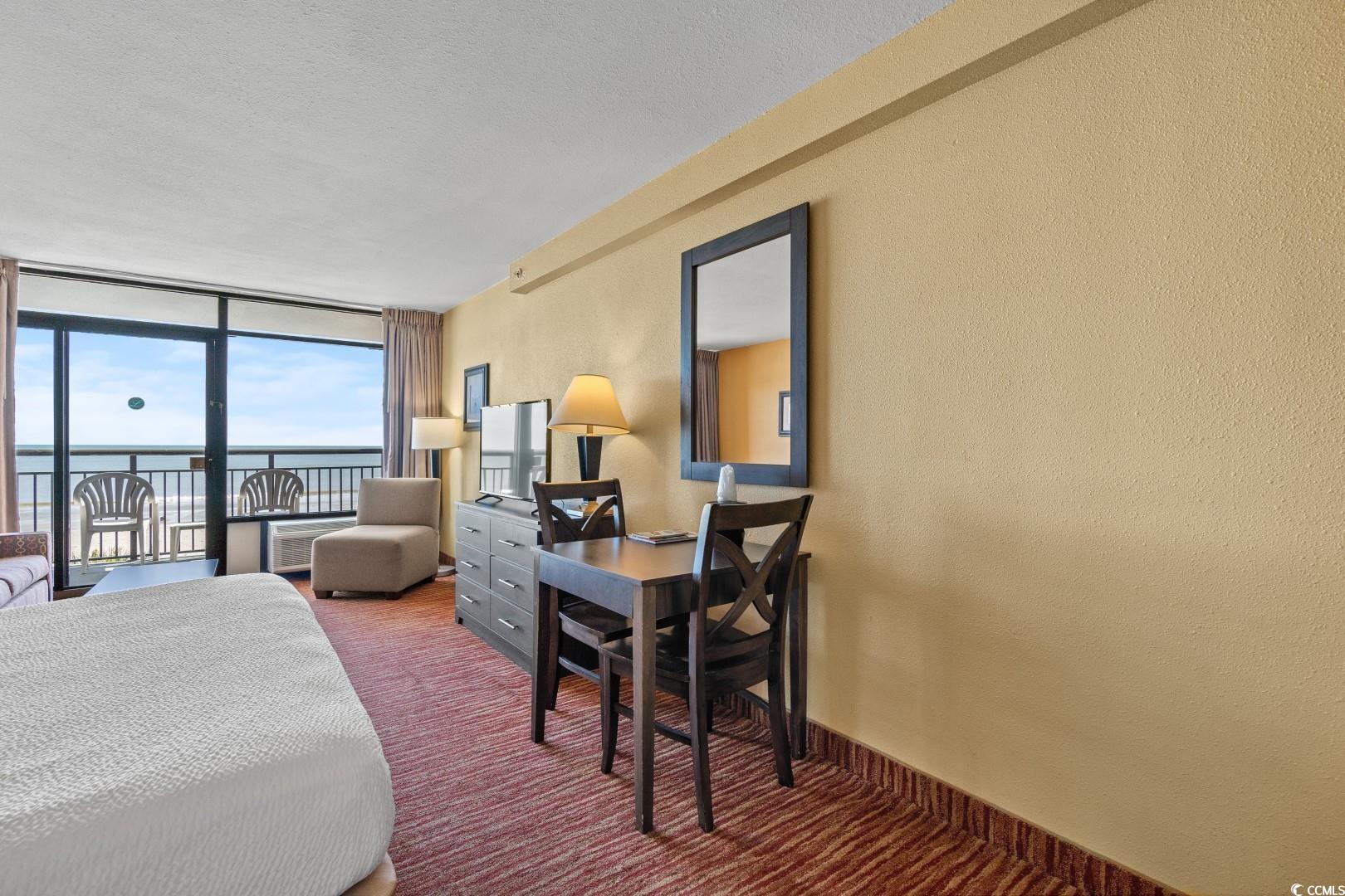 Don't miss this opportunity to own this fully furnished, oceanfront efficiency unit in the highly sought after, Landmark Resort! Featuring aRARE full kitchen with a full size fridge, range, microwave, granite countertops, and a breakfast bar, along with well coordinated furnishings, a king size bed and a pull out sofa for an added sleeping space! Landmark offers top of the line amenities, including indoor and outdoor pools, waterpark, lazy river, exercise room, laundry facilities, onsite dining, and more, all with low HOA fees and great rental potential! Perfectly situated in the heart of Myrtle Beach, close to all of the Grand Strand's finest dining, shopping, golf, andentertainment attractions. Whether you are looking for a vacation get away or an investment opportunity, you won't want to miss this.Schedule your showing today!