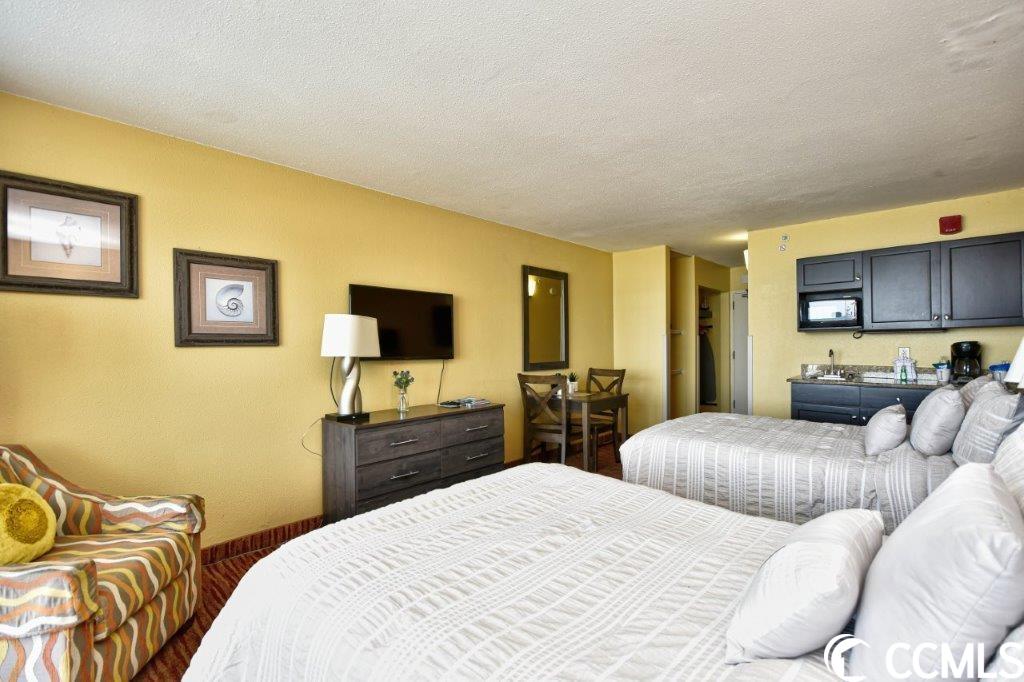 Welcome to your dream oceanfront property! This fully furnished efficiency unit is the epitome of beach living with its breathtaking view of the ocean and a balcony that overlooks the ocean waters. Imagine waking up to the sound of waves crashing and enjoying a cup of coffee while soaking in the salty sea air on your balcony. This unit is located on an 3rd floor in the building, providing utmost comfort and convenience to make your stay even more enjoyable. Plus, the rental income potential of this property is outstanding, making it a wise investment for anyone seeking to own a vacation property. Landmark Resort offers a wide range of amenities that will make your stay even more unforgettable. Enjoy indoor and outdoor pools, indoor/outdoor lazy river, hot tubs, saunas, indoor kiddie fun pool, Starbucks, Gazebo Restaurant, The Pub Lounge, snack bar, fitness room, laundry facilities, game room, gift shop, and an air-conditioned walkway from the resort to the 8-story parking garage. Not to mention, the pristine Atlantic Ocean with 60 miles of white sandy beaches is just steps away from your doorstep! Located in the heart of the Grand Strand, Landmark Resort is close to everything that the area has to offer, including shopping, dining, entertainment, golf courses, and other exciting attractions. Whether you're looking for a profitable investment or a cozy vacation getaway, this unit is perfect for you. Don't miss out on this opportunity to own a piece of paradise!