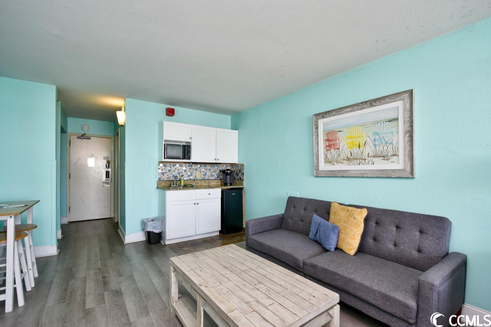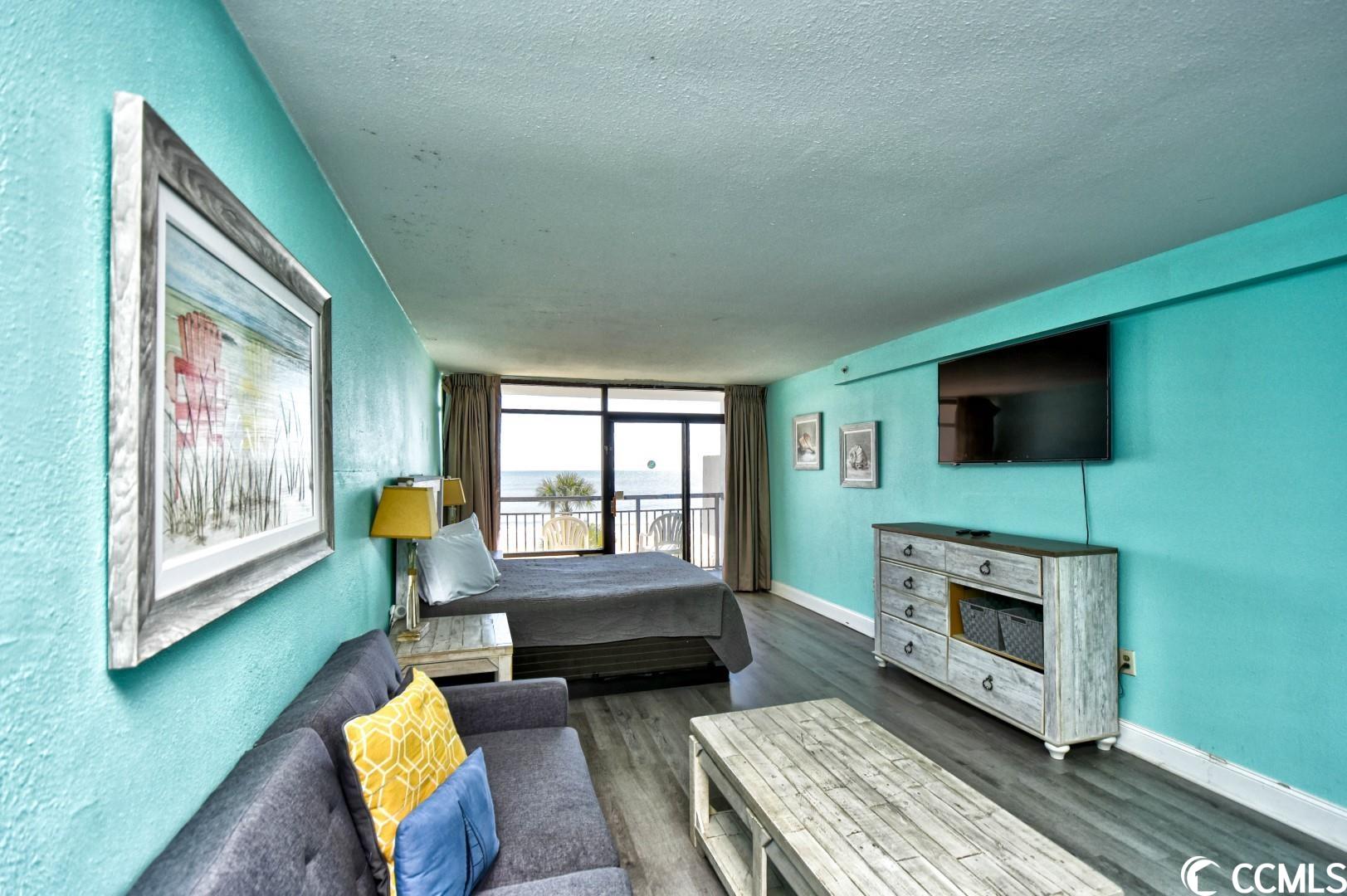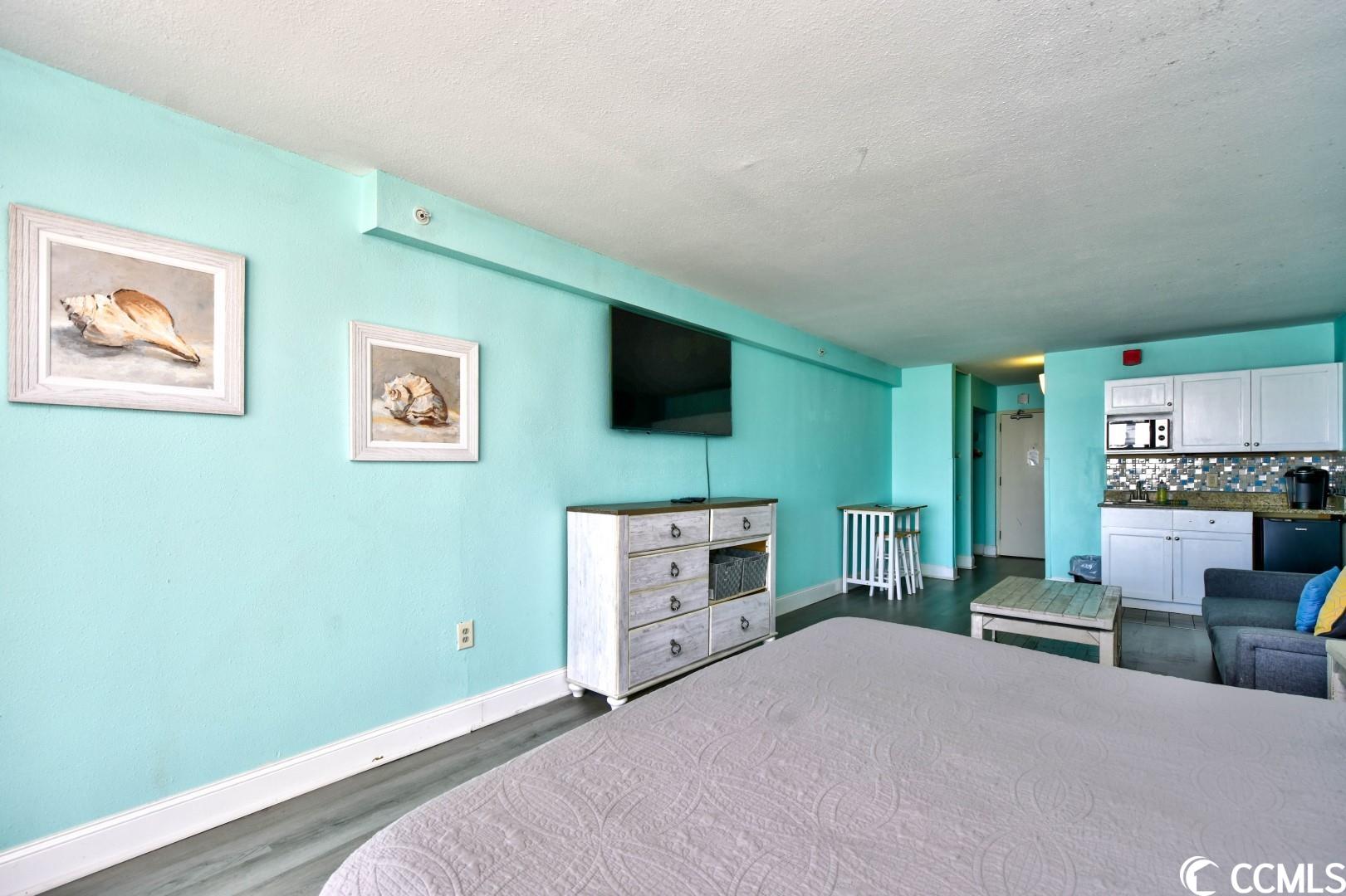 Don't miss this opportunity to own this fully furnished, oceanfront efficiency unit in the highly sought after, Landmark Resort! Featuring a kitchenette with microwave & mini fridge, upgraded LVP flooring, well coordinated furnishings, a king size bed and a pull out sofa for an added sleeping space! Landmark offers top of the line amenities, including indoor and outdoor pools, waterpark, lazy river, exercise room, laundry facilities, onsite dining, and more, all with low HOA fees and great rental potential! Perfectly situated in the heart of Myrtle Beach, close to all of the Grand Strand's finest dining, shopping, golf, and entertainment attractions. Whether you are looking for a vacation get away or an investment opportunity, you won't want to miss this. Schedule your showing today!