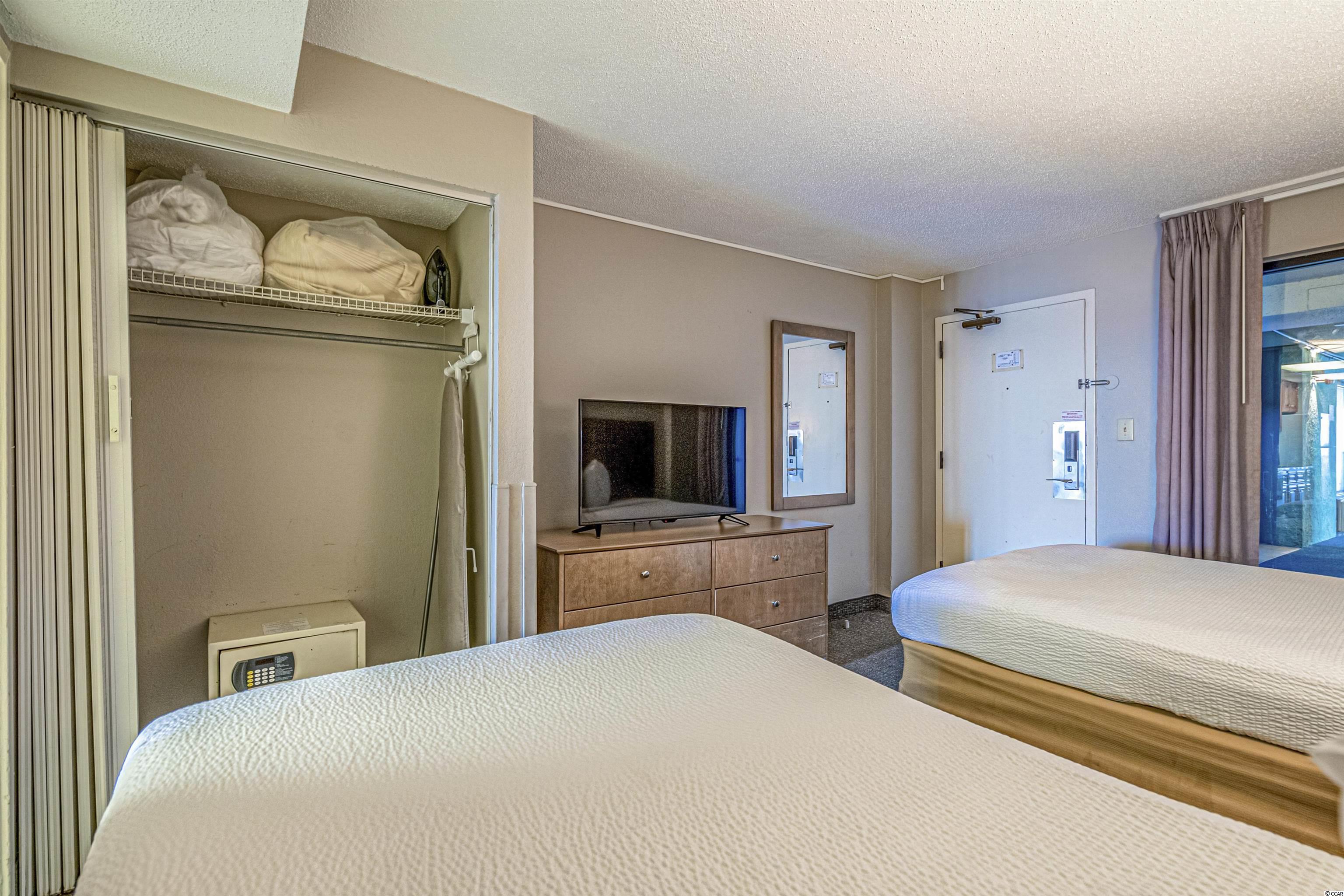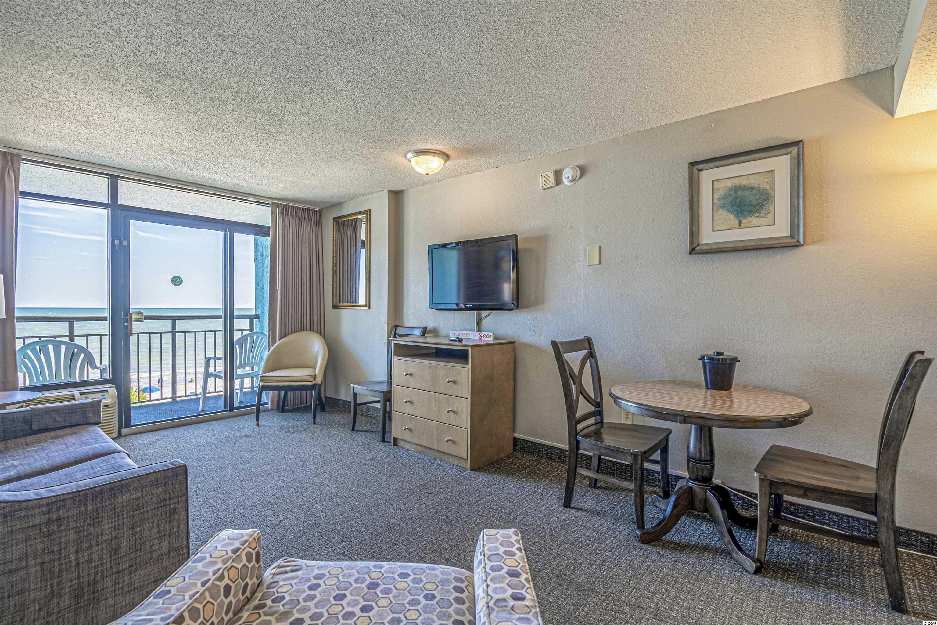 This direct Oceanfront condo offers breathtaking views from the fourth floor located in The Landmark Resort. This property features a fully equipped kitchen with gorgeous wood cabinets and granite countertops as well as a spacious bedroom with two double beds, a flat-screen TV, and an updated bathroom with shower/tub combination and framed mirror. In addition to the Murphy bed there is also additional sleeping space available in the living room or enjoy being able to stretch out on your sleeper sofa! With all that one could need just steps away, its no wonder why The Landmark Resort has become so popular among those looking for relaxation on one of most stunning beaches in South Carolina. Be sure to contact the Listing Broker/agent or your agent for more information about this property, Message us for virtual tours, video walkthroughs and more! All measurements and data are deemed reliable but are not guaranteed, purchaser and or purchaser's agent to verify.