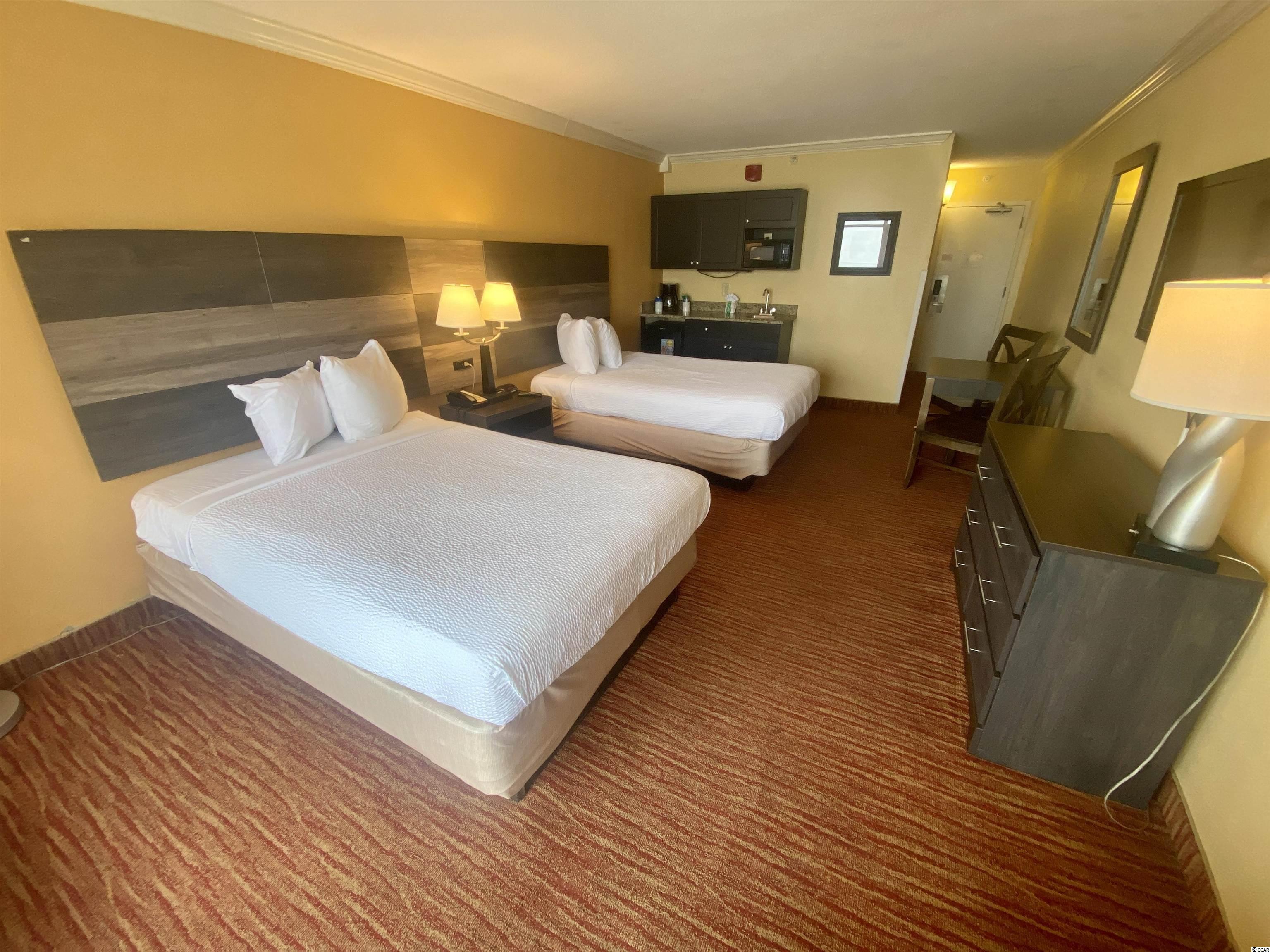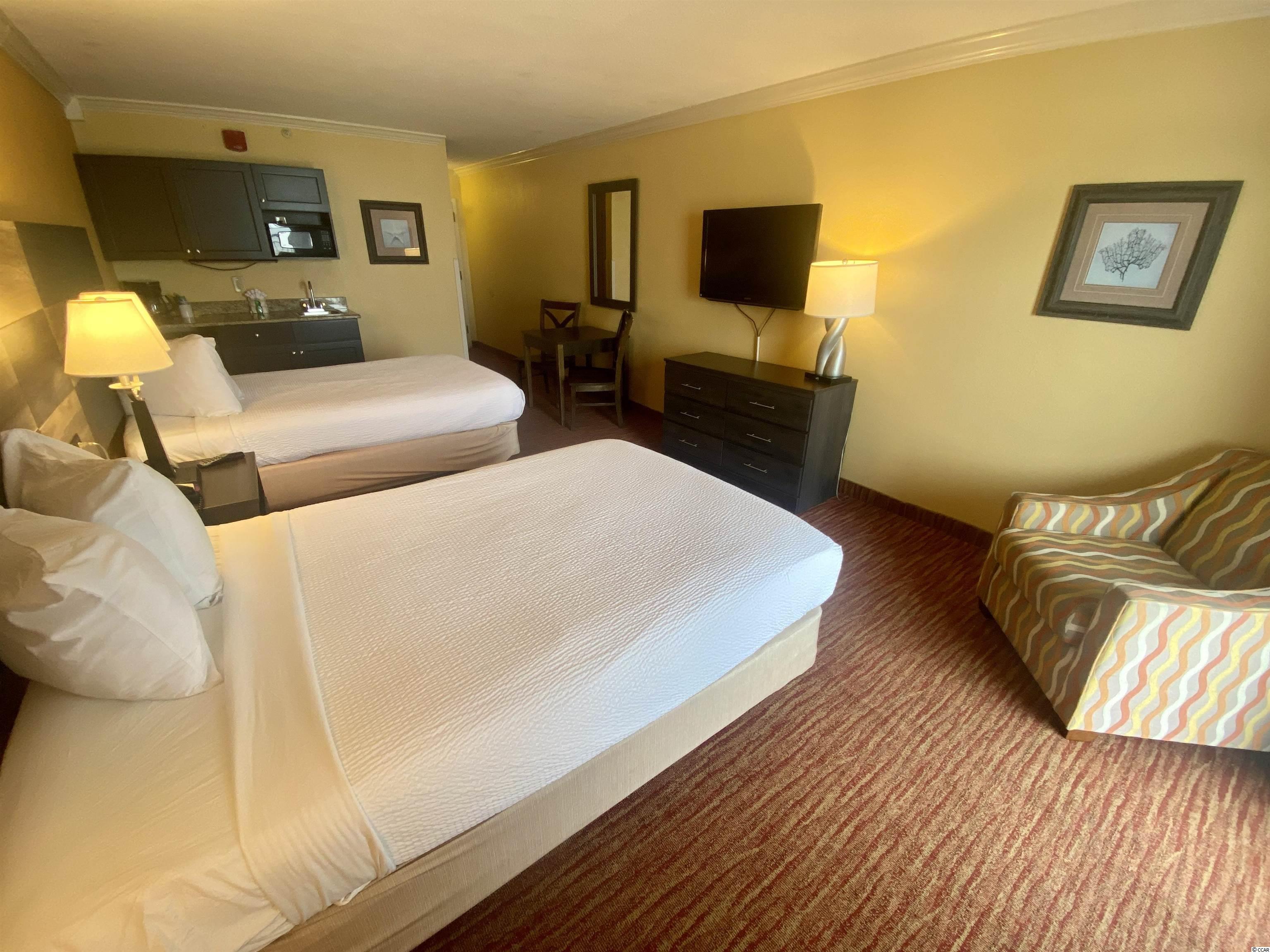 Rare opportunity to own directly on the oceanfront at one of the most sought-after buildings in Myrtle Beach, The Landmark Resort. This fully furnished efficiency unit has massive rental potential and offers 2 beds, half kitchen and full bath. Landmark Resort is known for its 17 water amenities and location near downtown Myrtle Beach within walking distance to many attractions, the boardwalk and more!