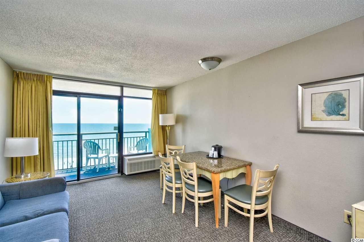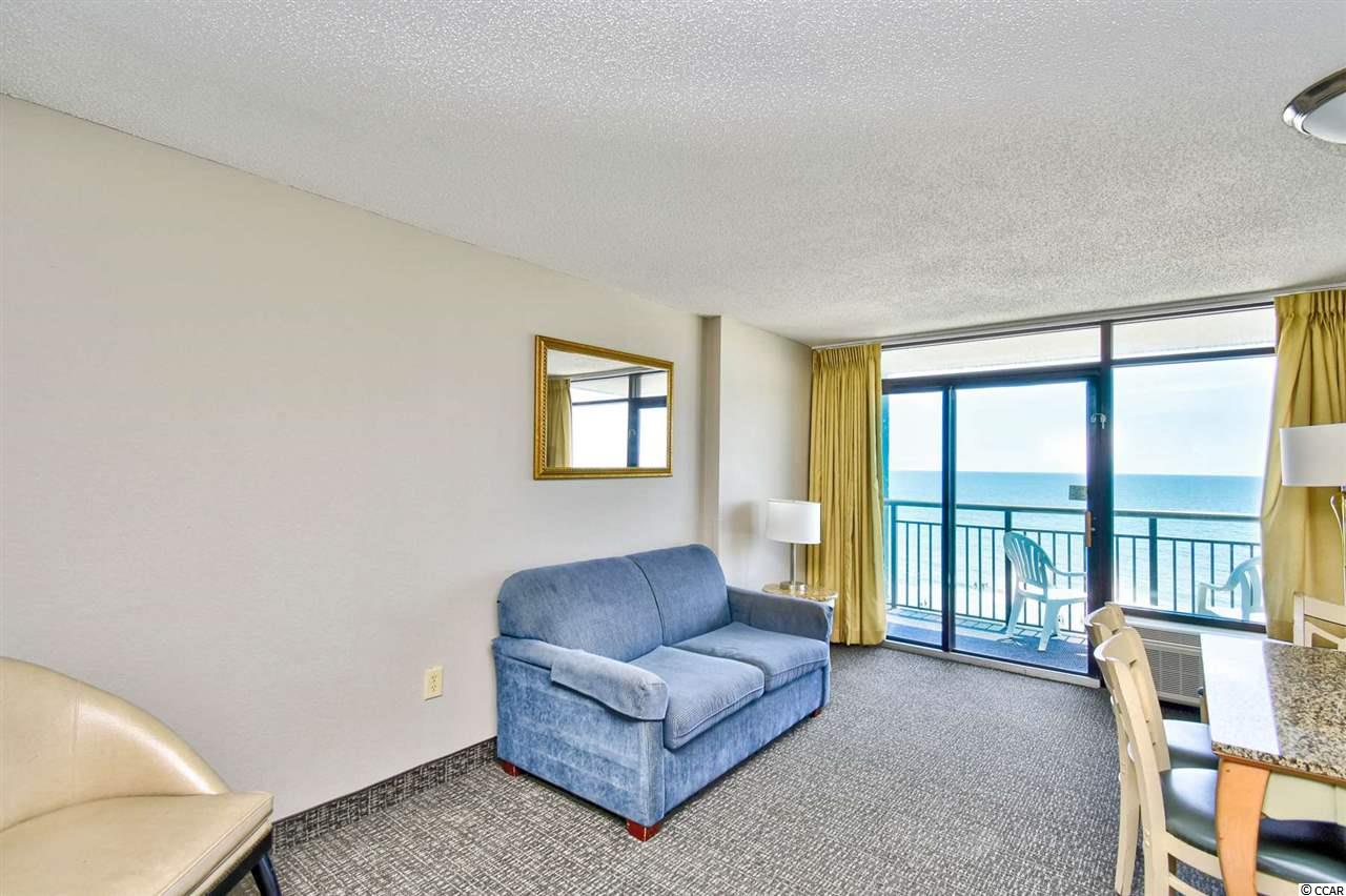 Welcome to this fully furnished 1 bedroom, 1.5 bathroom corner-end unit in the beautiful Landmark Resort. This unit features a 2 queen size beds with an upgraded flatscreen TV, a full kitchen equipped with all appliances, and a separate living room with dining area that seats 4. The living room also includes an upgraded TV and murphy bed for an added sleeping space. Enjoy miles and miles of oceanfront views from every room and your 8th floor balcony! Being a direct oceanfront corner unit allows for panoramic views, along with a window from the bedroom. Landmark offers the best amenities, including indoor and outdoor pools, lazy river, exercise room, laundry facilities, onsite dining, and more! Perfectly situated in the heart of Myrtle Beach, close to all of the Grand Strand's finest dining, shopping, golf, and entertainment attractions. Whether you are looking for a vacation get away or an investment opportunity, you won't want to miss this. Schedule your showing today!
