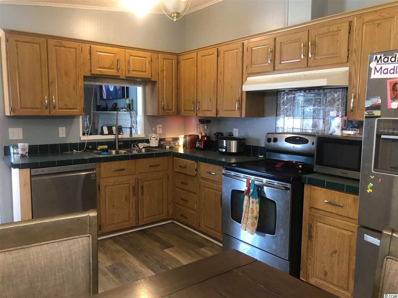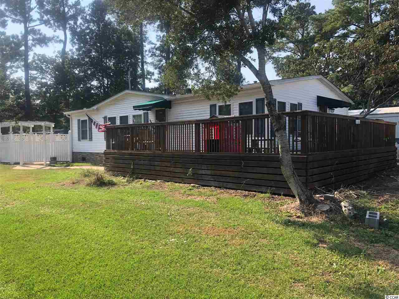 Move in ready!! 3 Bedroom, 2 Full Bath, 1998 Cavalier double wide mobile home located in the Secluded Crystal Lake Community. Enjoy fishing on Crystal Lake with your non-motorized boats. Drive your golf cart to Myrtle Beach State Park, beach, restaurants or shopping! Close to beach and Market Common. Large Eat In Kitchen and wood burning fireplace in Living Room. Nice corner lot with front and side deck, perfect for entertaining. Fenced in side yard with decorative pavers includes hot tub, fire pit, large storage shed and outdoor tiki hut including TV. Outdoor bathroom also has a toilet, sink and stand up shower. Dishwasher, refrigerator, range, microwave, hot tub, tiki hut/TV and outdoor shed all convey with the home. Lot fee includes cable, trash pickup and pond maintenance. All measurements and square footage are approximate and not guaranteed. Buyer is responsible for verification.