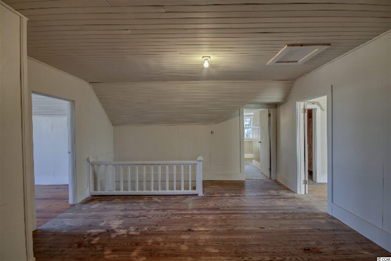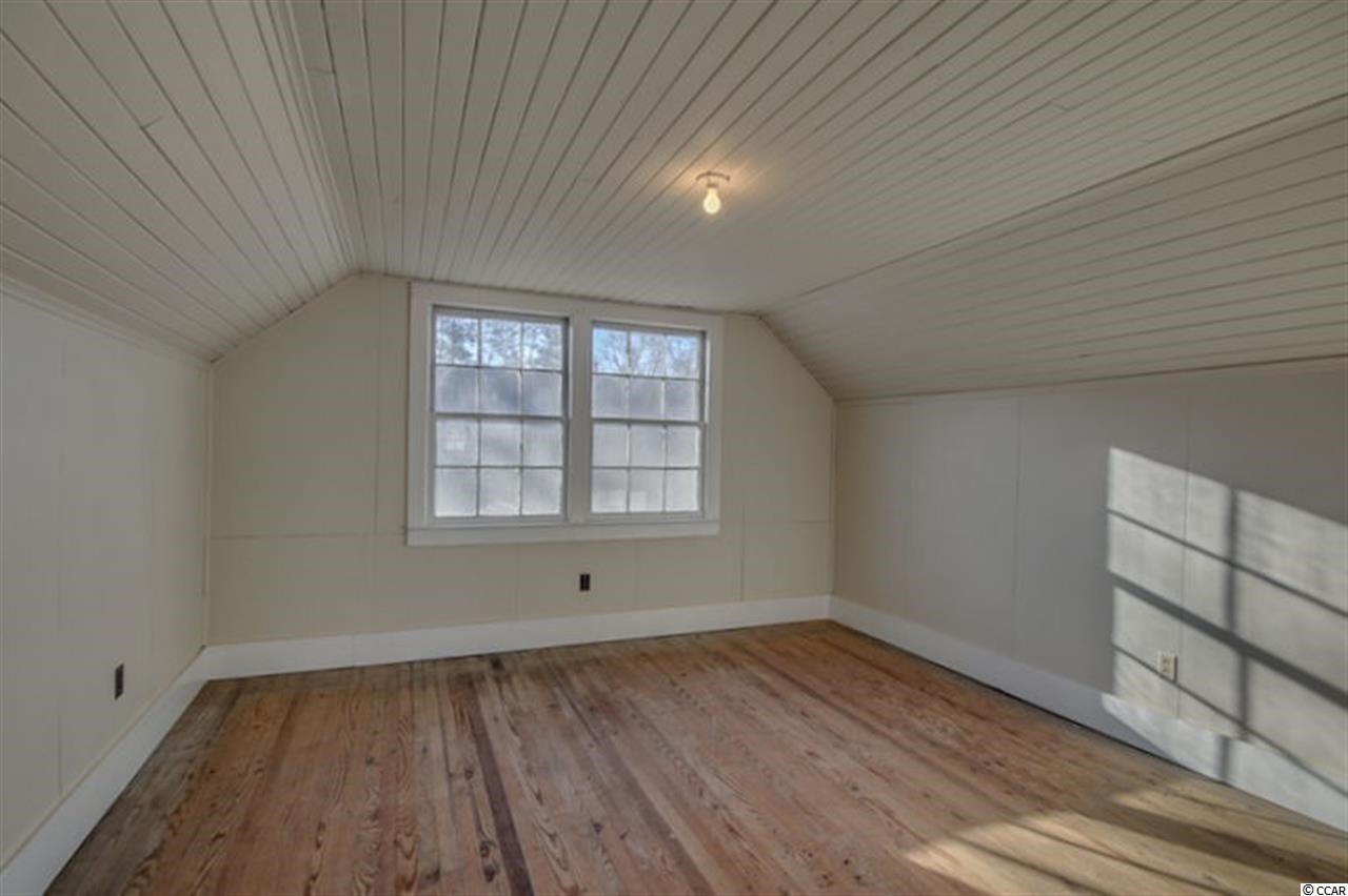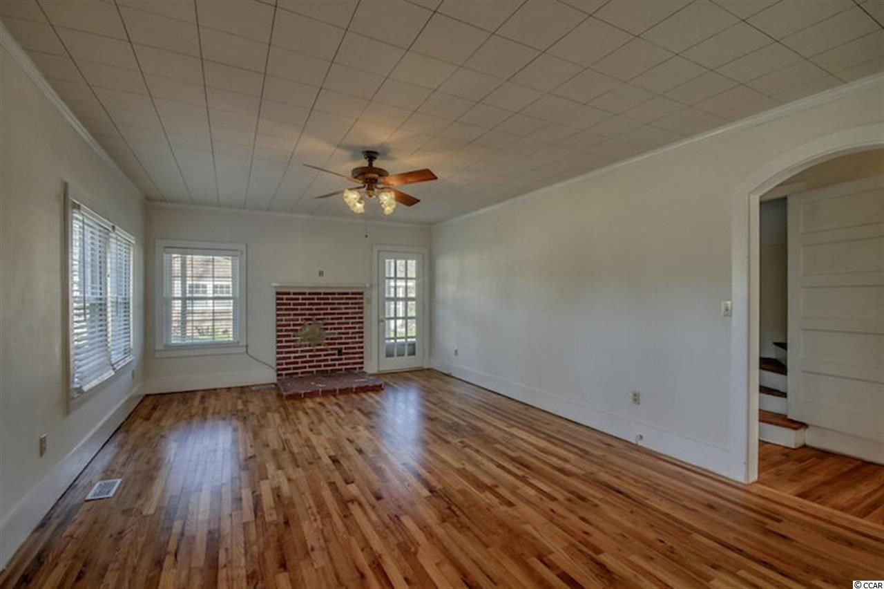 This charming home was built in 1947 and is located in the heart of historic Conway. The master bedroom with private bathroom is on the first level along with two other bedrooms and second full bathroom. The downstairs also features a formal dining room, sunroom, laundry area, side porch, oak flooring and arched doorways. There are two rooms upstairs that could be used for the 4th and 5th bedrooms as well as a large flex space and the third full bathroom. The staircase and second level have heart pine flooring. Large carport and paved driveway provide plenty of parking. Nice lot with mature trees and storage shed in the backyard. This is a spacious home in a nice location for a great price! Square footage is approximate and not guaranteed. Buyer is responsible for verification.