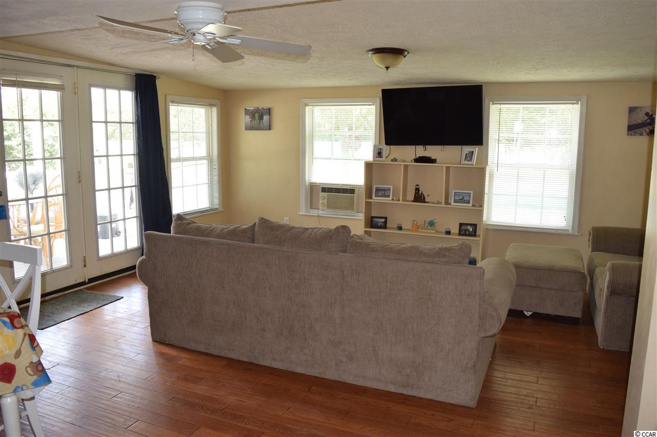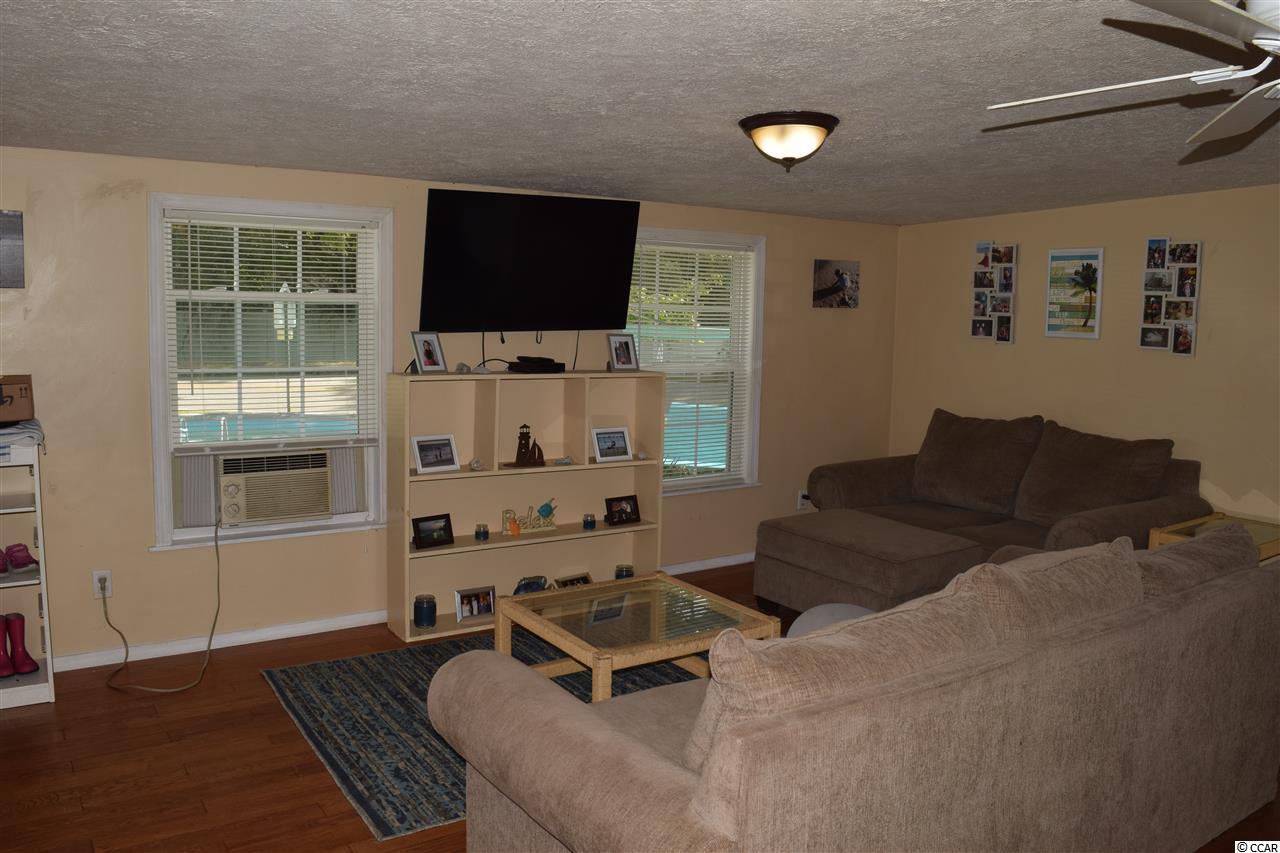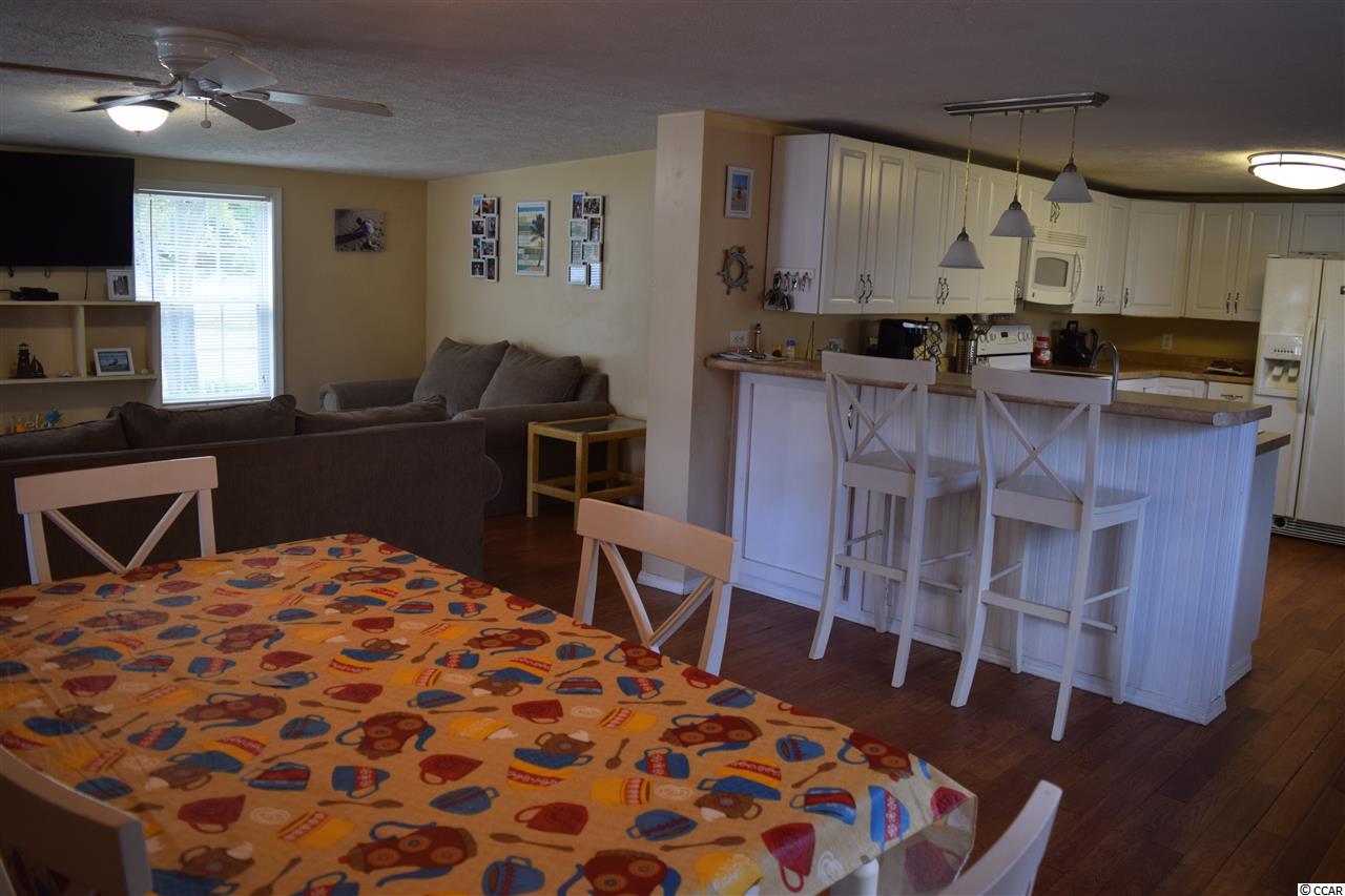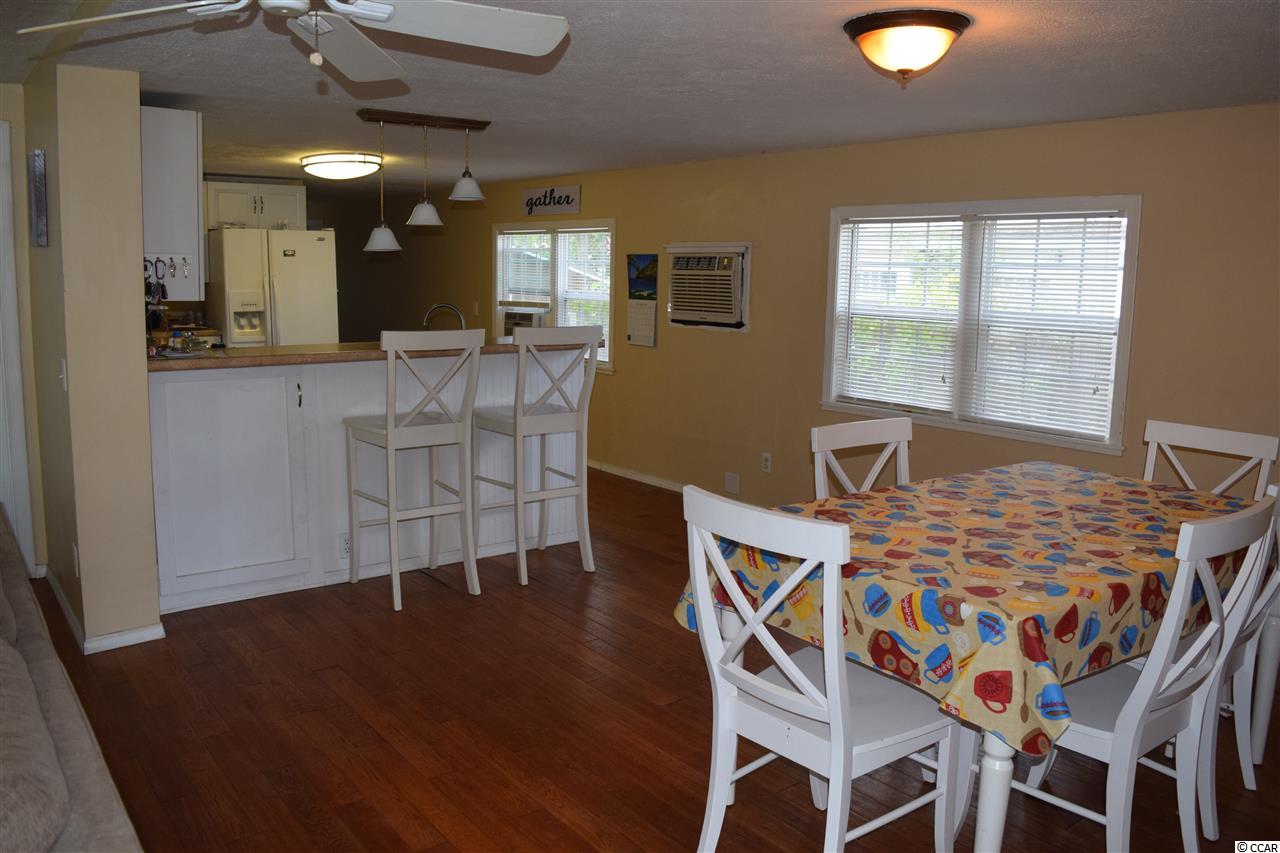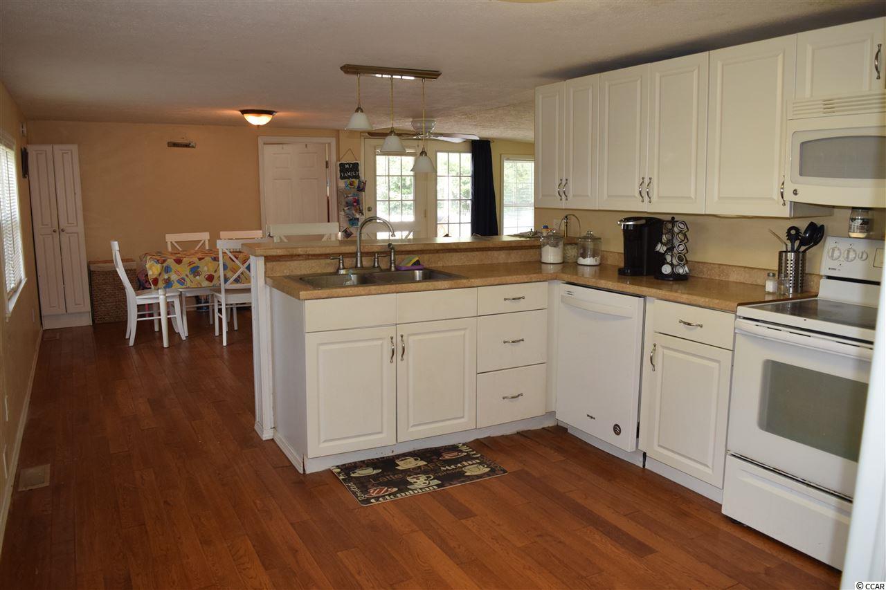 This home has lots of space and has an open floorplan that is very comfortable and easy to live in! PRICE REFLECTS repairs needed. There are some soft and sloping areas in the floors mainly the dining area and central HVAC can be put in by the new owner. The family room, dining room and kitchen are all very good sized. The master bedroom is nice and big with a full bath and large walk-in closet. There are two more bedrooms, a second full bath and a laundry room with good storage. The covered front porch is a great place to relax and entertain. There is a storage building and space to enjoy outdoors on this corner lot. The windows are newer and there is a metal roof. There is furnace heat and window units in all rooms for A/C. Priced to sell AS IS. Enjoy the natural beauty of Crystal Lake or take a short trip to Market Commons, Myrtle Beach State Park or all the fun of the Grand Strand!