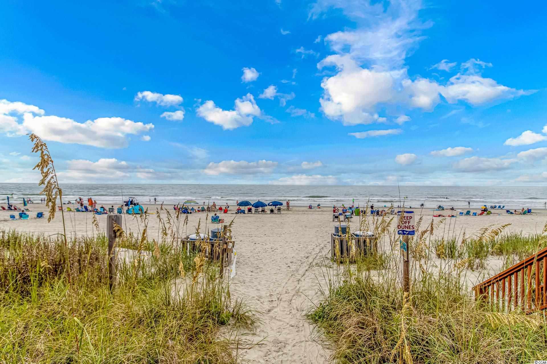 Enjoy views of the Atlantic Ocean and cool ocean breezes from the large covered porch! Tropical Sands unit 103 is a first floor walk up that has been completely renovated. Upon entry you will notice the coastal colors, luxury vinyl plank flooring, and the chair railing that give this condo a true coastal cottage feel. The kitchen includes a large granite island that allows for meal prep and dining, stainless steel appliances and a beautiful tile backsplash. The spacious living area has an electric fireplace for chilly nights and allows for access to the large covered porch. The spacious master has a newer slider door for access to the porch. A second bedroom completes this beautiful condo and could be used as an office. This well maintained second row complex has a public beach access across the street and is a short walk to all the restaurants and entertainment in Surfside and Garden City. Don't miss this opportunity to own your place at the beach! Square footage is approximate and should be confirmed by Buyer or Buyer's representative.