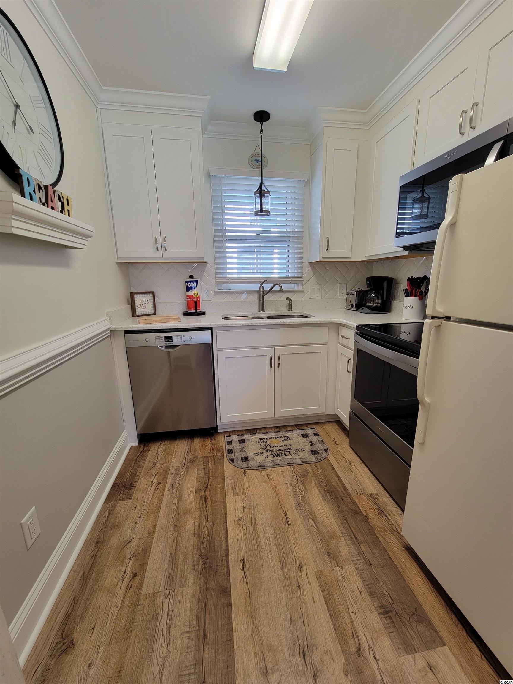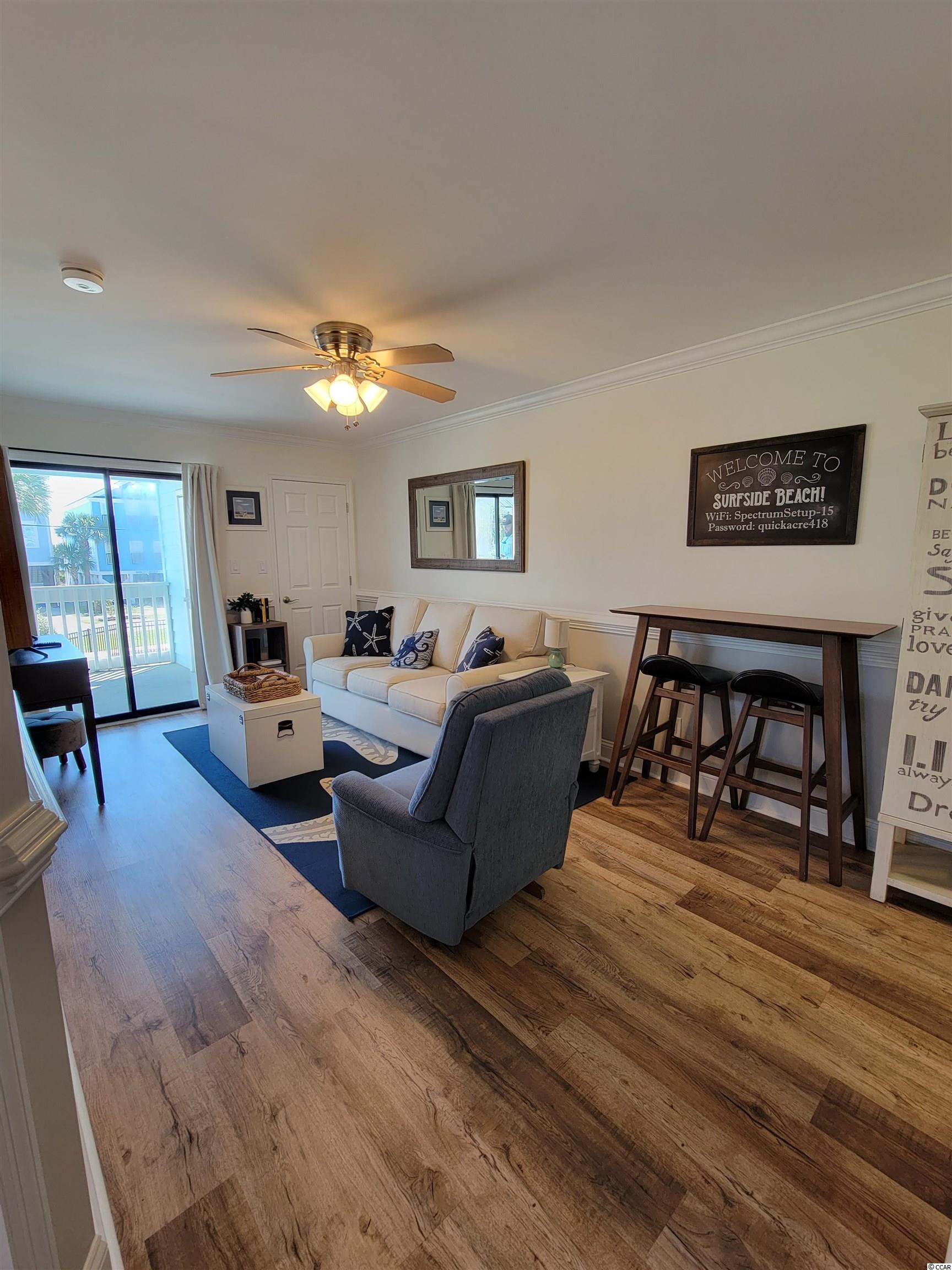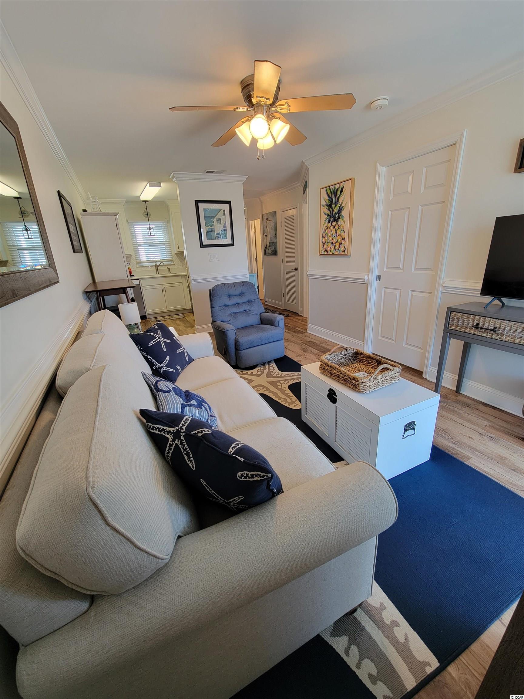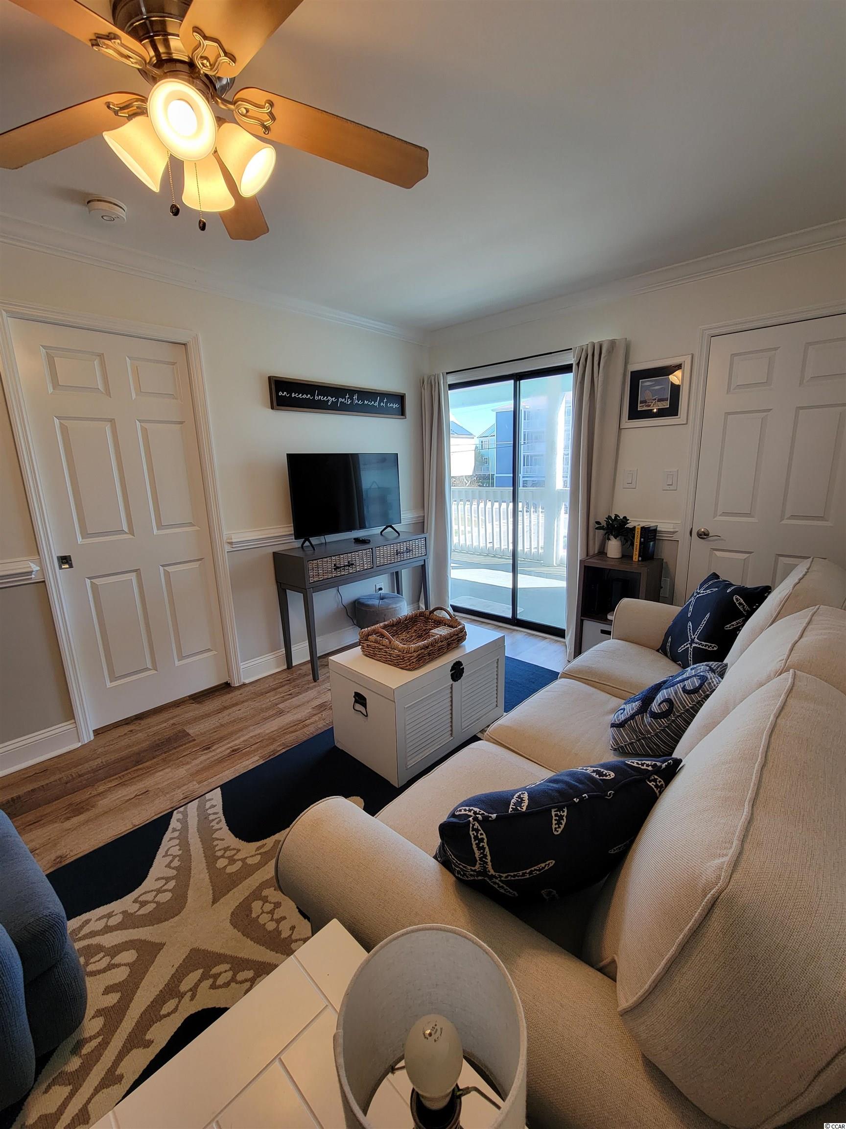 Come see this stunning, fully furnished ocean view condo located in the desirable area of Surfside Beach. The condo is an end unit on the first floor, single level with 2 bedrooms and 1 full bath. Upon entry you will find updates throughout and the open concept is great for entertaining. The oversized balcony is accessible through the living area and the primary bedroom as well. There are two closets for additional storage including one off the living area and one off the balcony, perfect for beach chairs. Tropical Sands has easy access to a community pool and beach access across the street. This would be amazing as either a primary, second home or rental property. Schedule your showing today!
