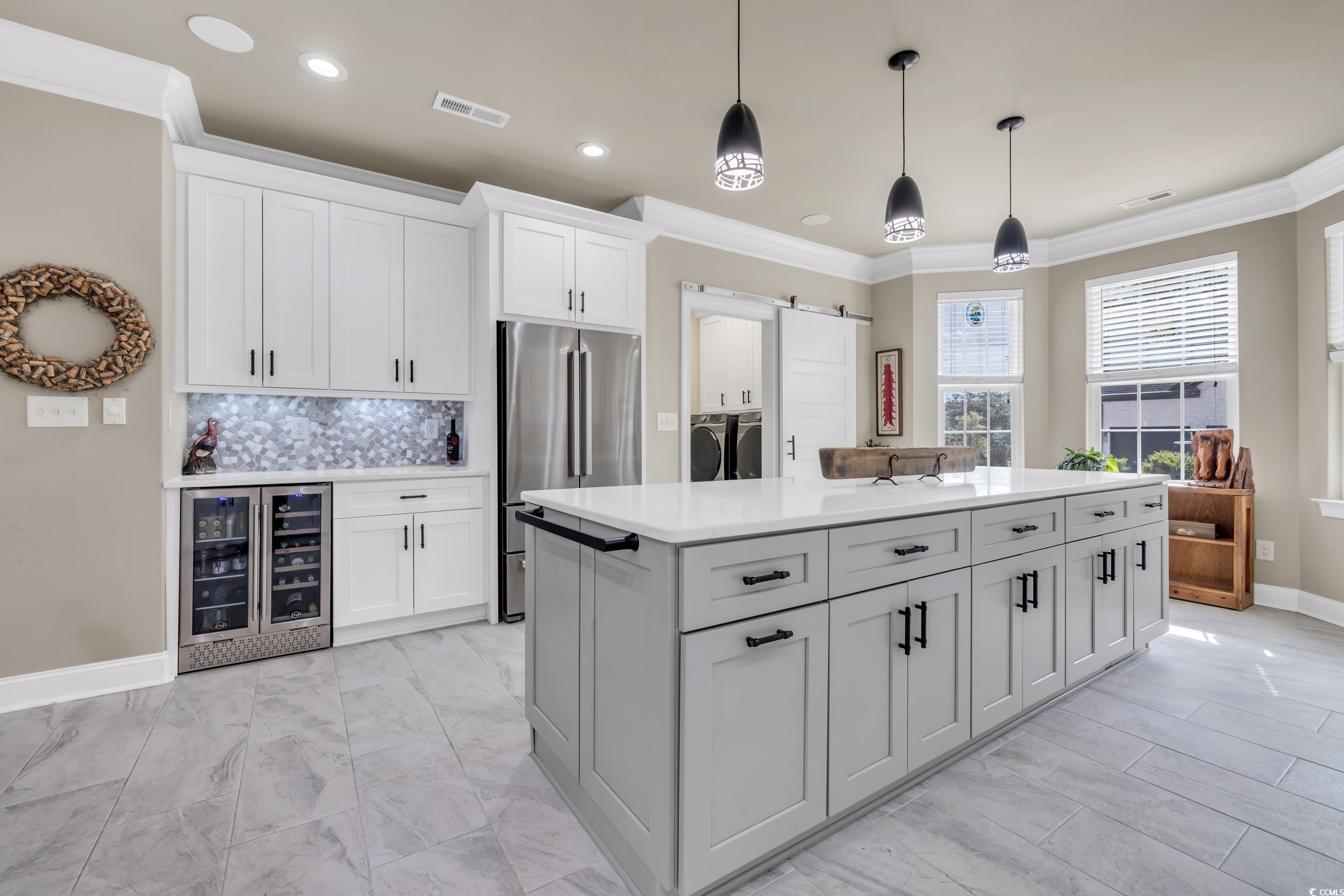 LEASE PURCHASE OPTION AVAILABLE. Welcome to 152 Creek Harbour Circle, Murrells Inlet, SC in the prestigious gated boating community of Creek Harbour. This sprawling custom home with 4 bedrooms, 3.5 baths, is designed for both comfort and entertaining. For ultimate convenience, the homeowner will consider a lease-to-purchase. This home offers one-level living, making everyday life easy and accessible. This home features one of the largest kitchens you'll find, a wall oven, an oversized island, peninsula and a beverage fridge. Along with an open, spacious floor plan, this home is perfect for modern living. Storage is abundant throughout, including a full set of stairs leading to a climate-controlled storage area. With two master bedrooms, you'll enjoy an abundance of privacy and luxury. The clubhouse and grand patio are ideal for outdoor gatherings, while the putting green adds a touch of fun for golf enthusiasts. The fenced-in yard is ready for your pool if you wish to create a personal oasis. This home truly caters to those who love to entertain and seek the best in comfortable, relaxed living. Creek Harbour offers even more with its amenity center and large zero-entry pool, perfect for leisure and relaxation. Included in the low HOA fee are dry storage for your boat and access to a day dock, allowing you to easily launch onto Collins Creek.