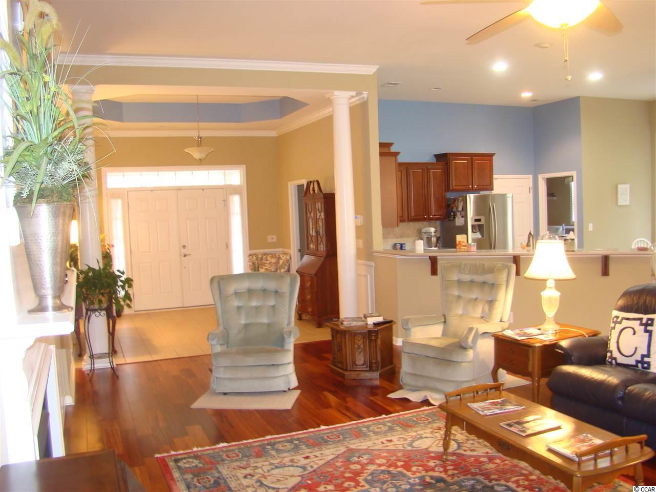 This lovely, meticulously maintained home is available to call your very own. Located in Myrtle Grande Trace a 55+ community with pool and clubhouse and close to the hospital, downtown Conway, and all the Grand Strand has to offer. From the moment you step through the front double doors you will fall in love with the tiled entry and spacious open floor plan. With its hardwood cherry flooring, custom trim work and crown molding this home is a must see. Living room offers built in cabinetry, floor outlets and a gas fireplace. Kitchen boasts solid surface counter tops, Stainless Steel Appliances, tiled backsplash, convection oven, pantry, island, breakfast nook, office space, and custom cabinets. Two bedrooms and a full bath are located at the front of the home along with a half bath off the foyer. The master bedroom and bathroom are located at the rear of the home. Walk in closet, tub and shower with double vanity and separate powder room in the master bathroom. Enjoy your morning coffee on the screened porch with lovely pond view. The oversized garage comes with a remote screen. Schedule your showing today! Square footage is approximate and not guaranteed. Buyers is responsible for verification.