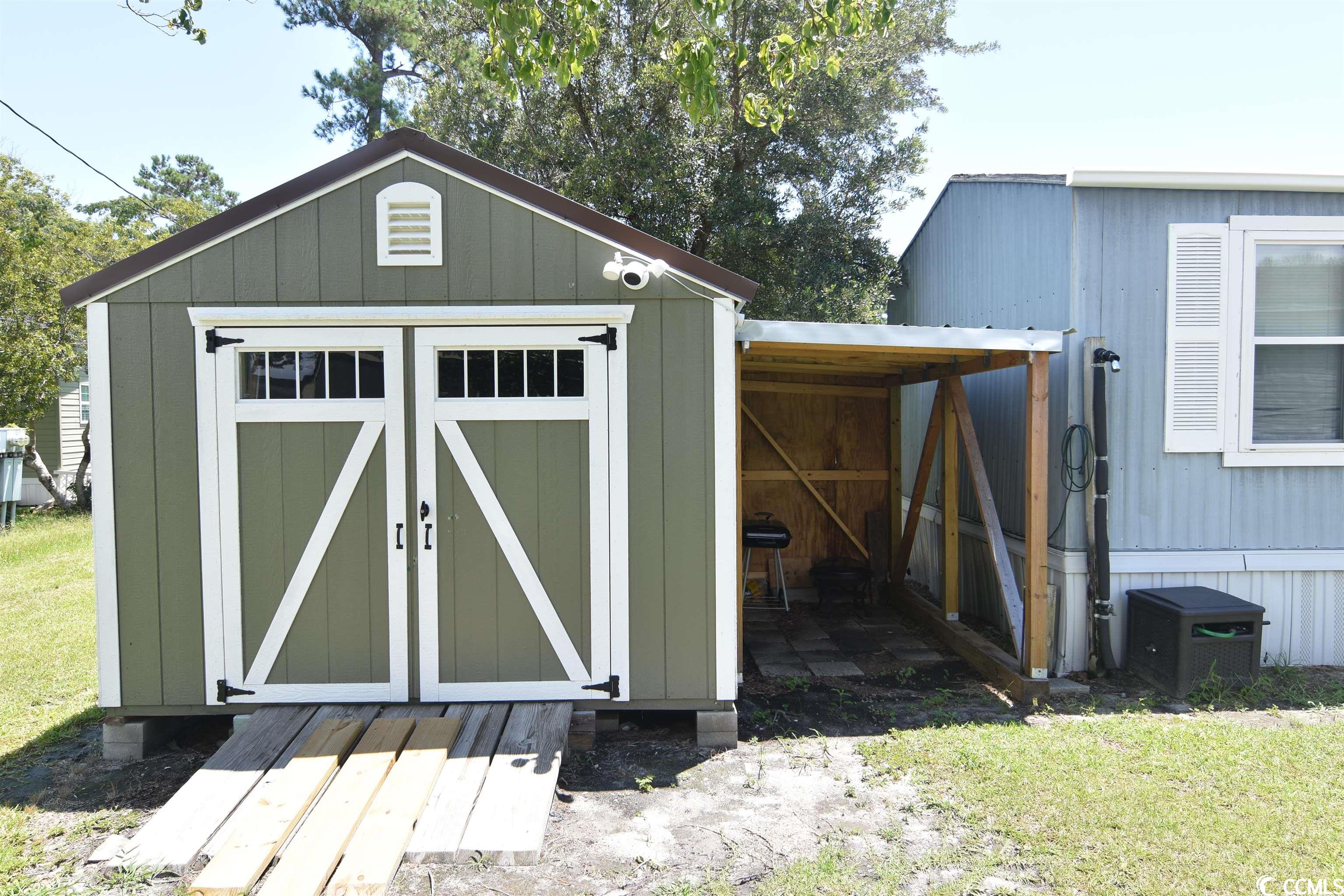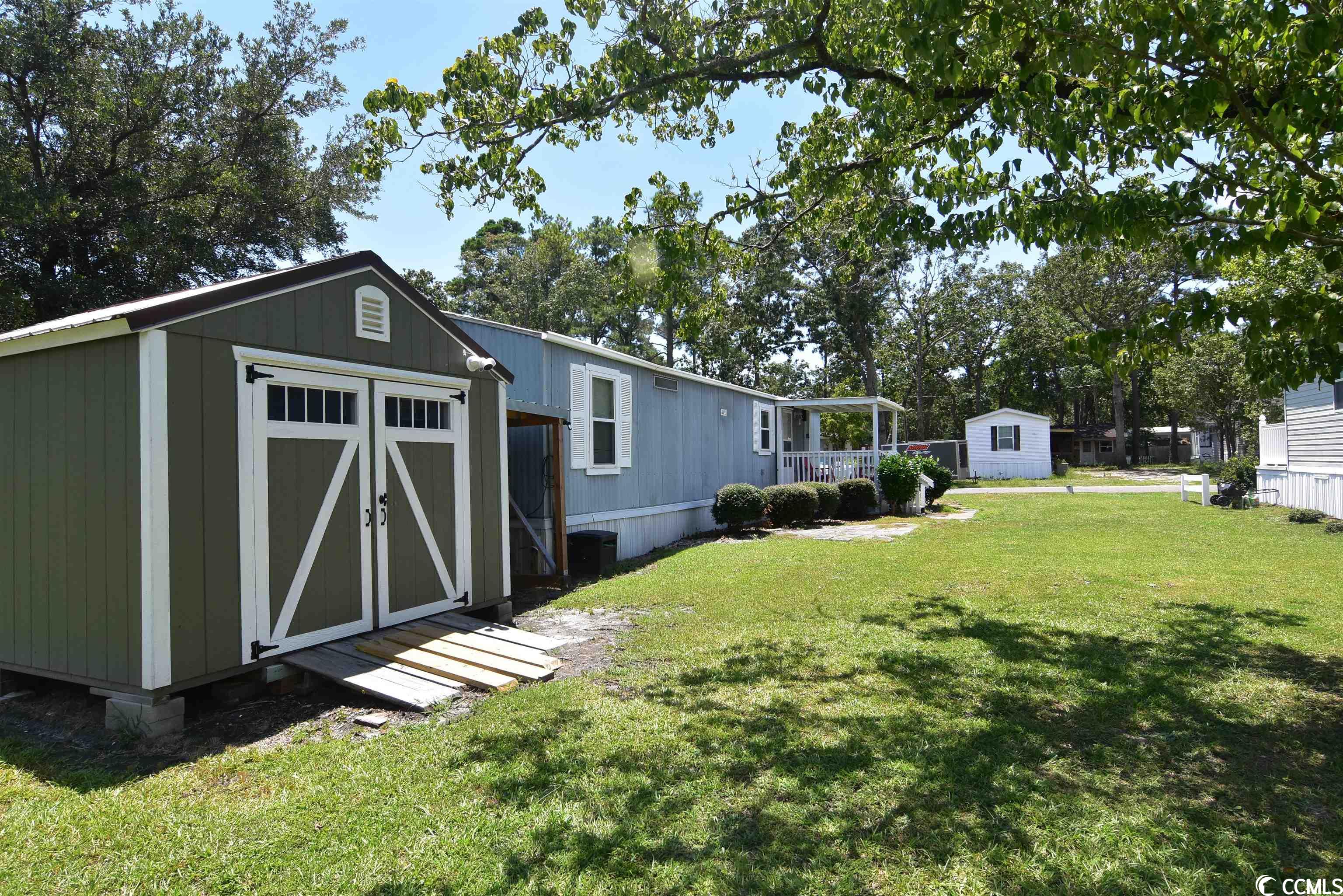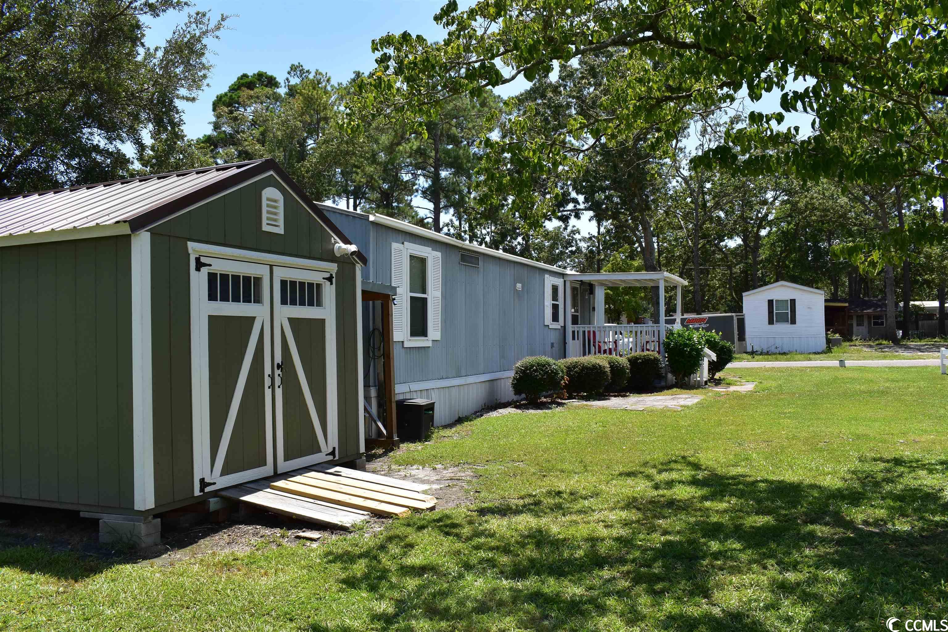 Check out this fully furnished, move-in ready, 2-bedroom, 1 full bath home, brimming with artsy character and located just a short golf cart ride away from the stunning beach at Myrtle Beach State Park. This home is in the Crystal Lake Community where everyone embraces the serene lakeside living with fishing and kayaking opportunities just a short walk away. No need to buy kayaksthis home is being sold with 2 kayaks! This quaint property boasts an outdoor shower, perfect for refreshing after a day of beach fun. Stay organized with the one-year old shed for all your storage needs. The shed floor is rubber coated and includes shelving. Protect your golf cart under the covered lean-to and plug it in at the trickle charger. There is also an outdoor plug that can be used for a generator. Whether you seek a relaxing retreat or an adventurous getaway, this delightful home offers it all. Experience the joys of coastal living with this property. Don't miss out on this opportunity!