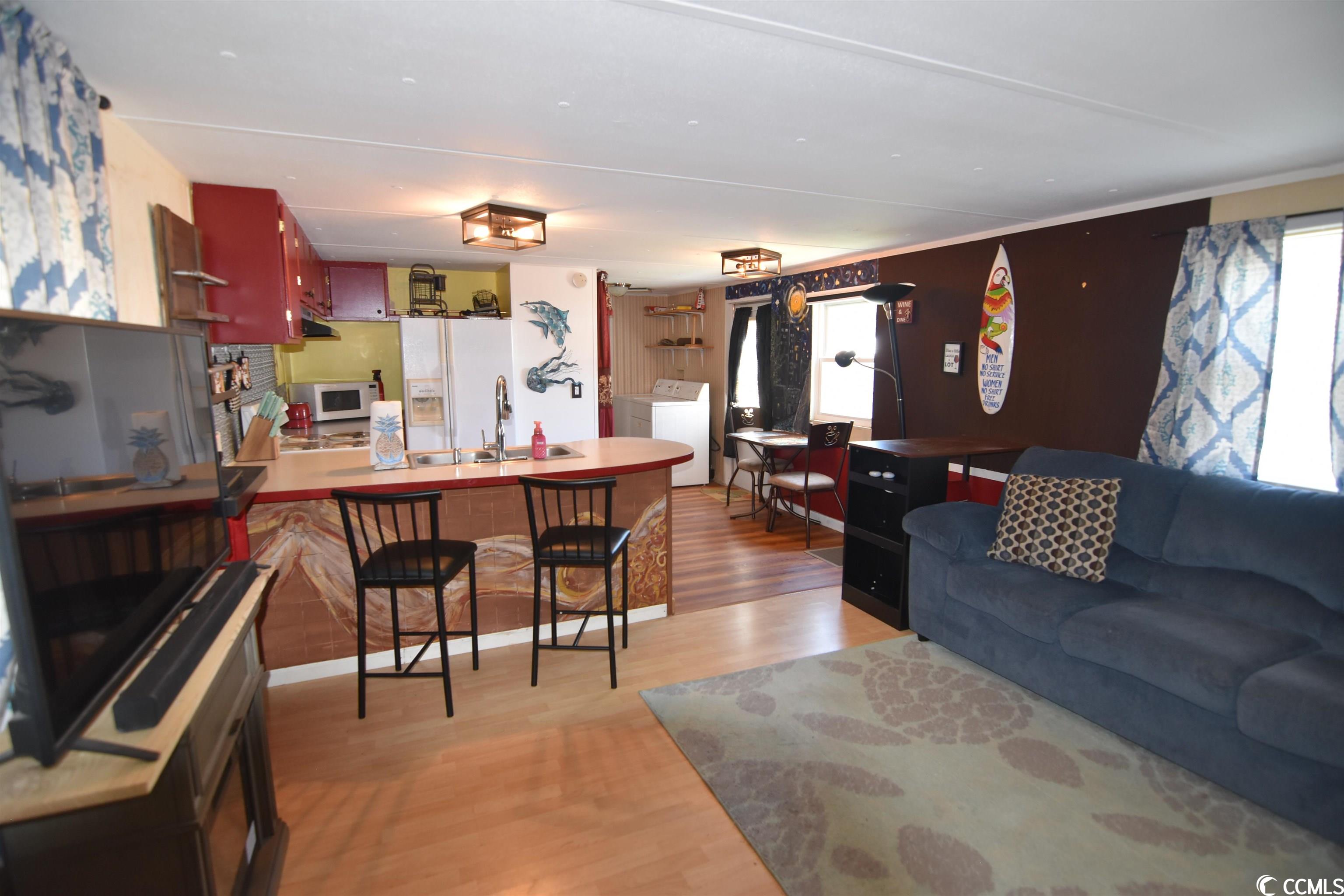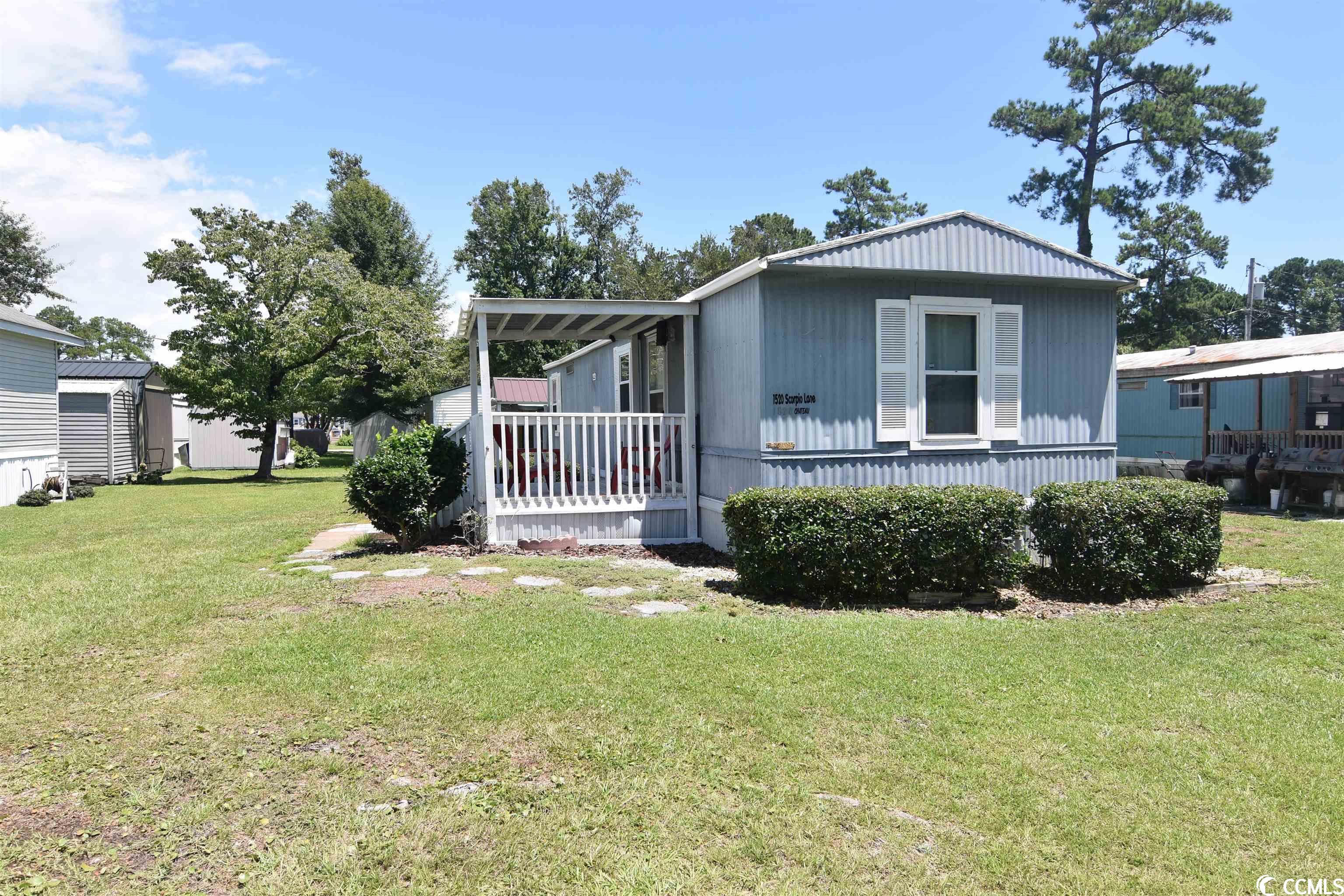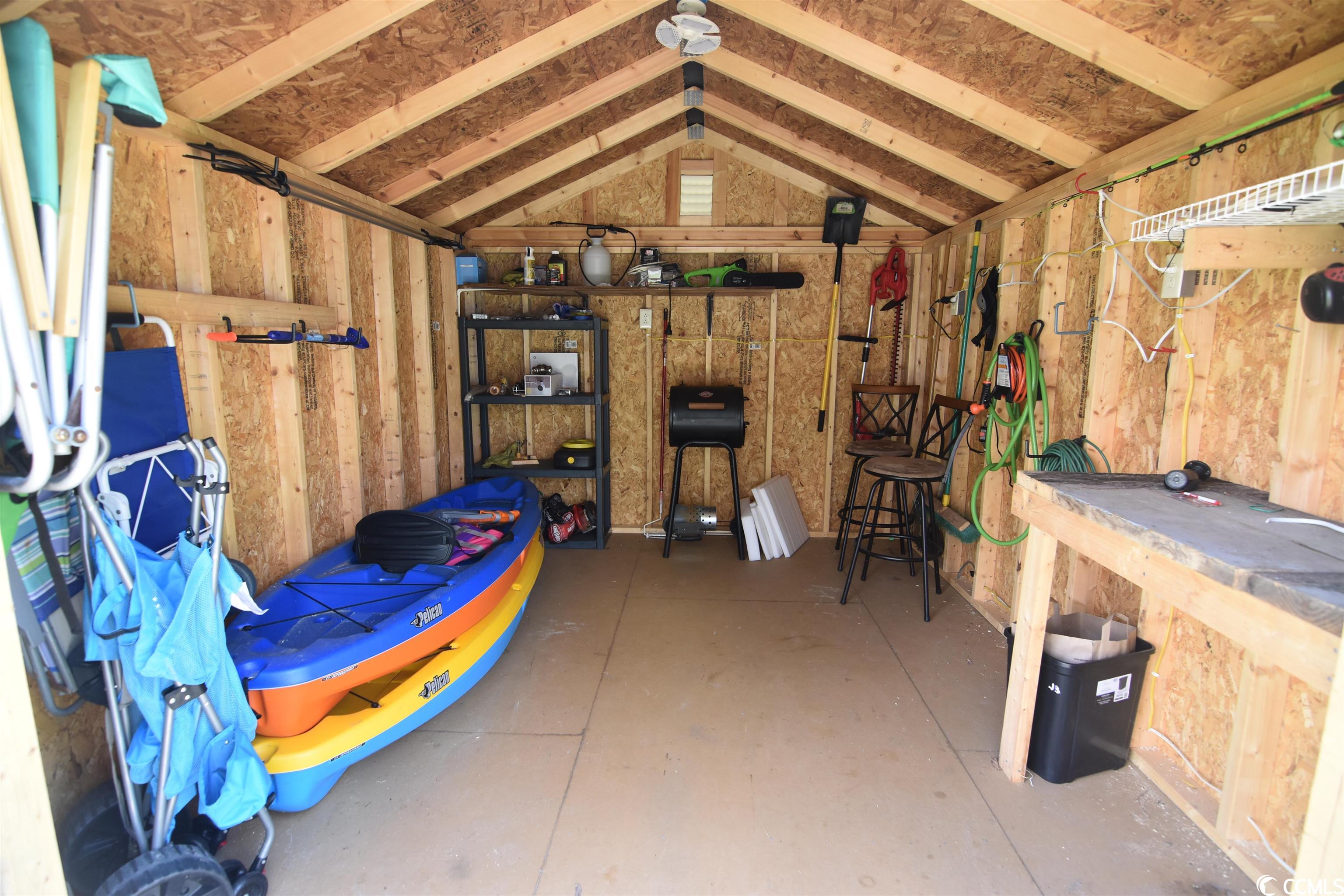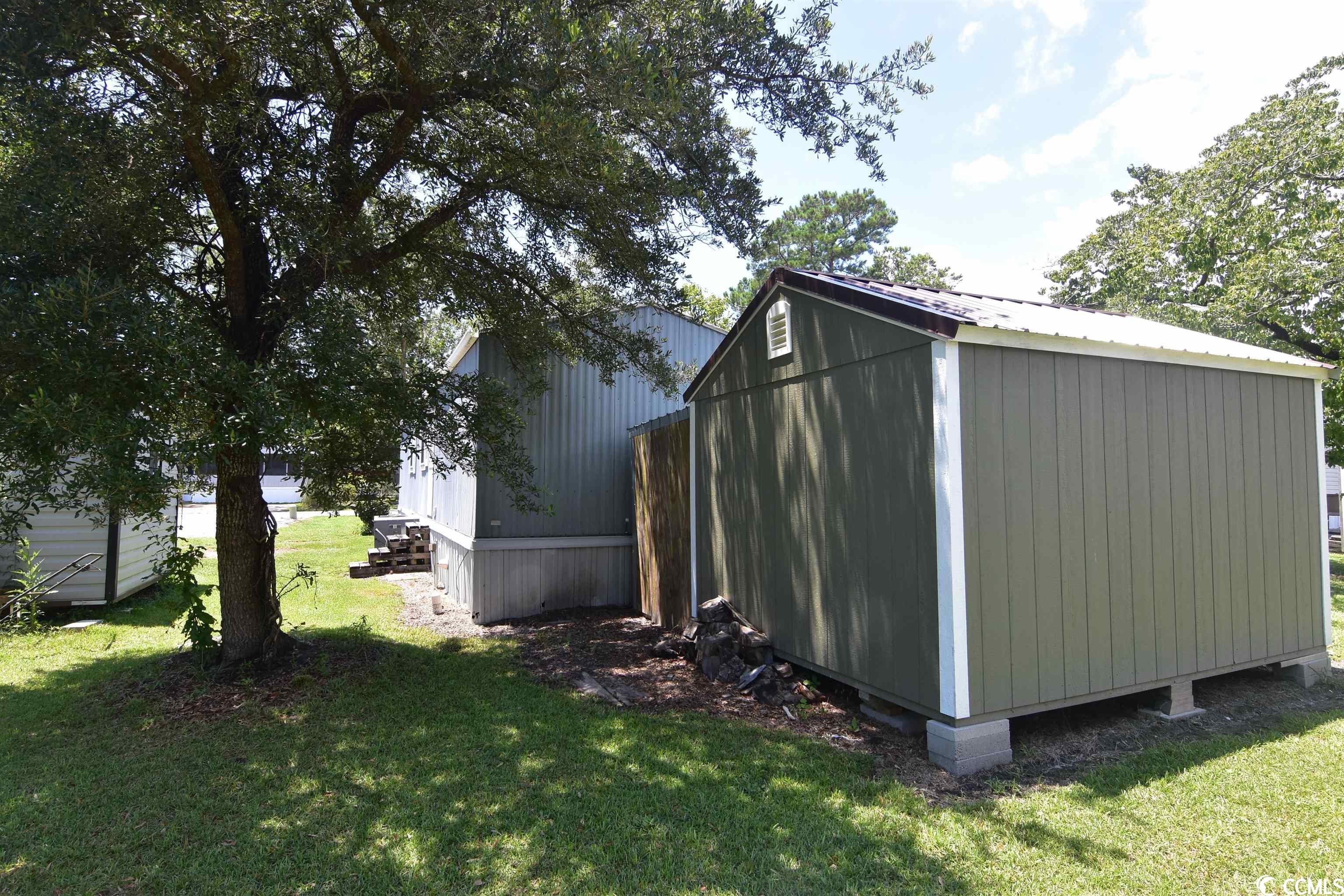 Check out this fully furnished, move-in ready, 2-bedroom, 1 full bath home, brimming with artsy character and located just a short golf cart ride away from the stunning beach at Myrtle Beach State Park. This home is in the Crystal Lake Community where everyone embraces the serene lakeside living with fishing and kayaking opportunities just a short walk away. No need to buy kayaksthis home is being sold with 2 kayaks! This quaint property boasts an outdoor shower, perfect for refreshing after a day of beach fun. Stay organized with the one-year old shed for all your storage needs. The shed floor is rubber coated and includes shelving. Protect your golf cart under the covered lean-to and plug it in at the trickle charger. There is also an outdoor plug that can be used for a generator. Whether you seek a relaxing retreat or an adventurous getaway, this delightful home offers it all. Experience the joys of coastal living with this property. Don't miss out on this opportunity!