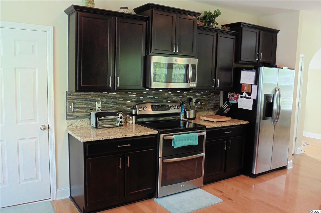 1521 Claremont Court is a lovely 4 bedroom, 2.5 bath home situated on a cul-de-sac in the quiet community of Jessica Lakes. This beautiful home has a large open area downstairs that is great for entertaining. For those who love to cook, the large, custom kitchen with stainless steel appliances, double oven, double sinks, and extended granite countertops create a very pleasing work area. There is also a walk-in pantry for extra food storage. The hardwood floors, and tiled backsplash give the home a rustic charm. All four bedrooms are located upstairs along with the laundry area. The location of this home is ideal for those who need to get on Hwy 90 or Hwy 501 quickly. This charming home is located near, abundant shopping, entertainment and within a short drive to the beach.