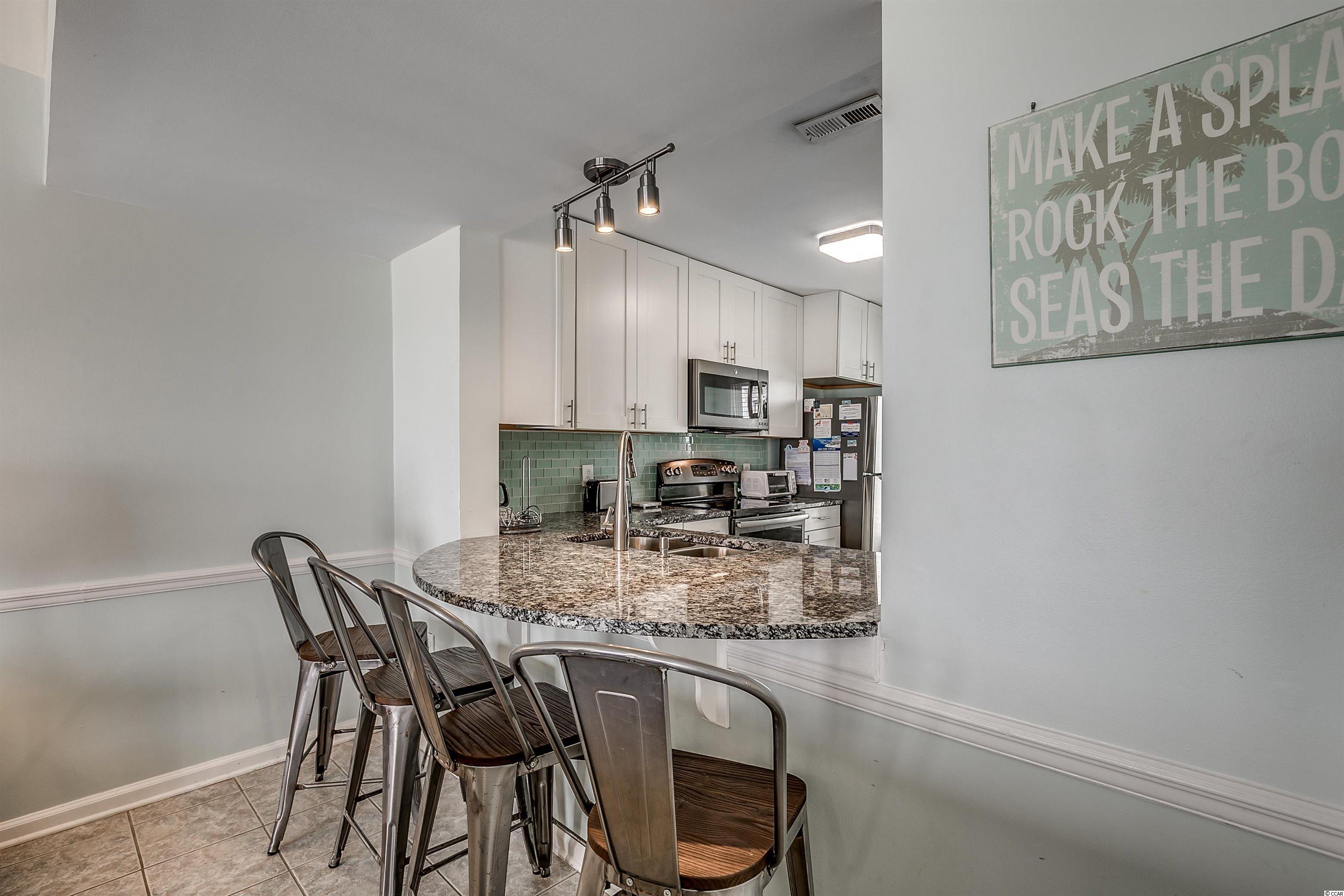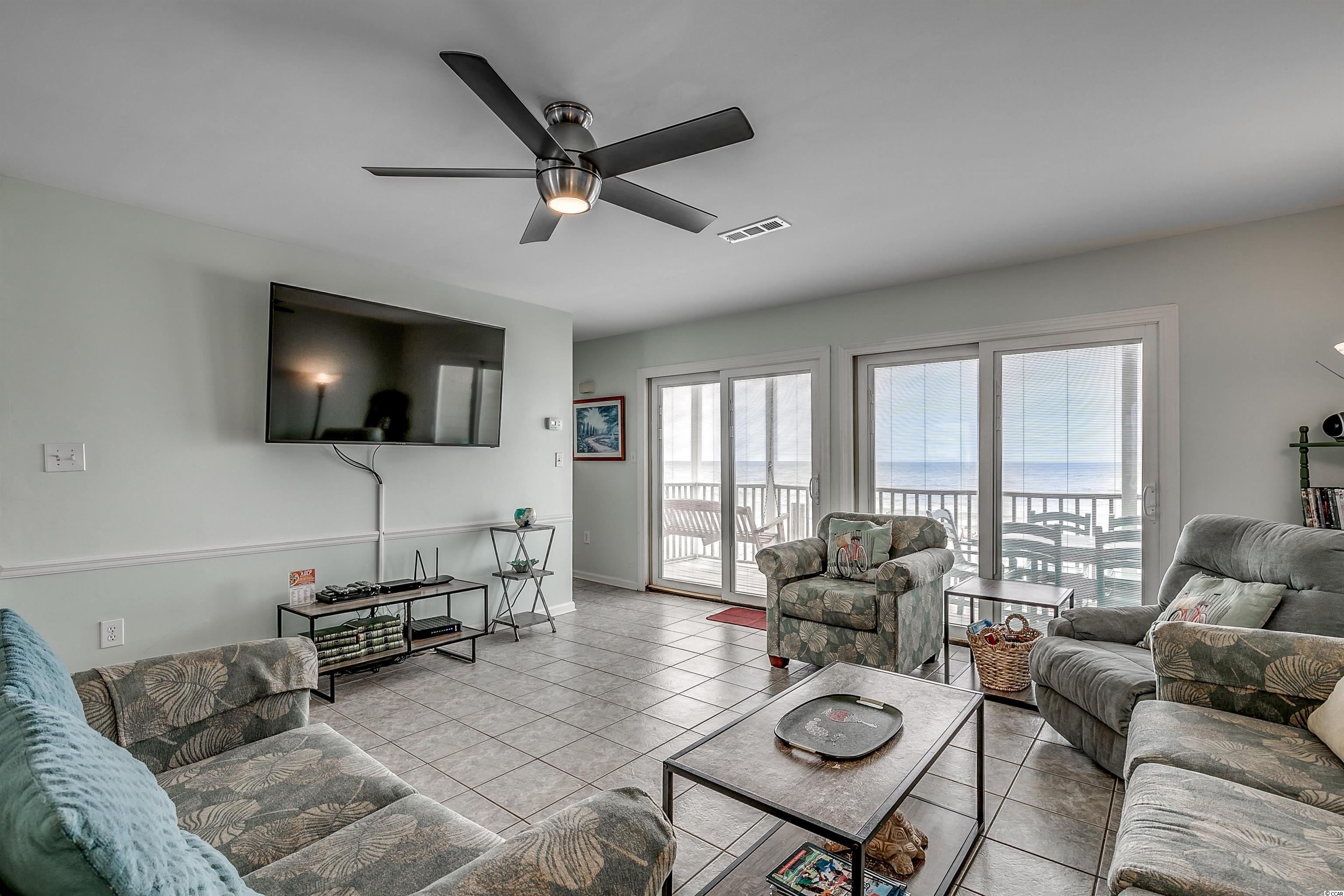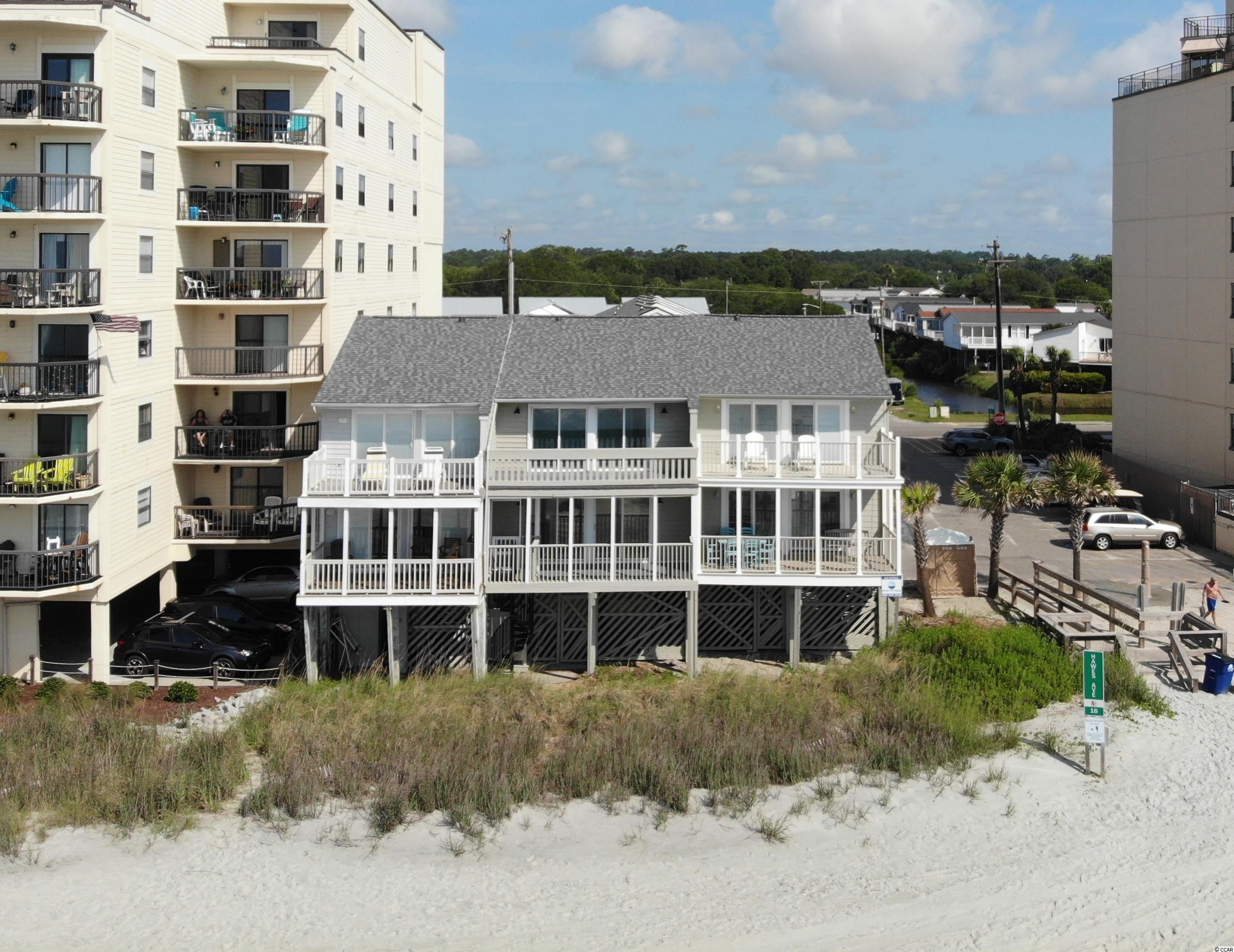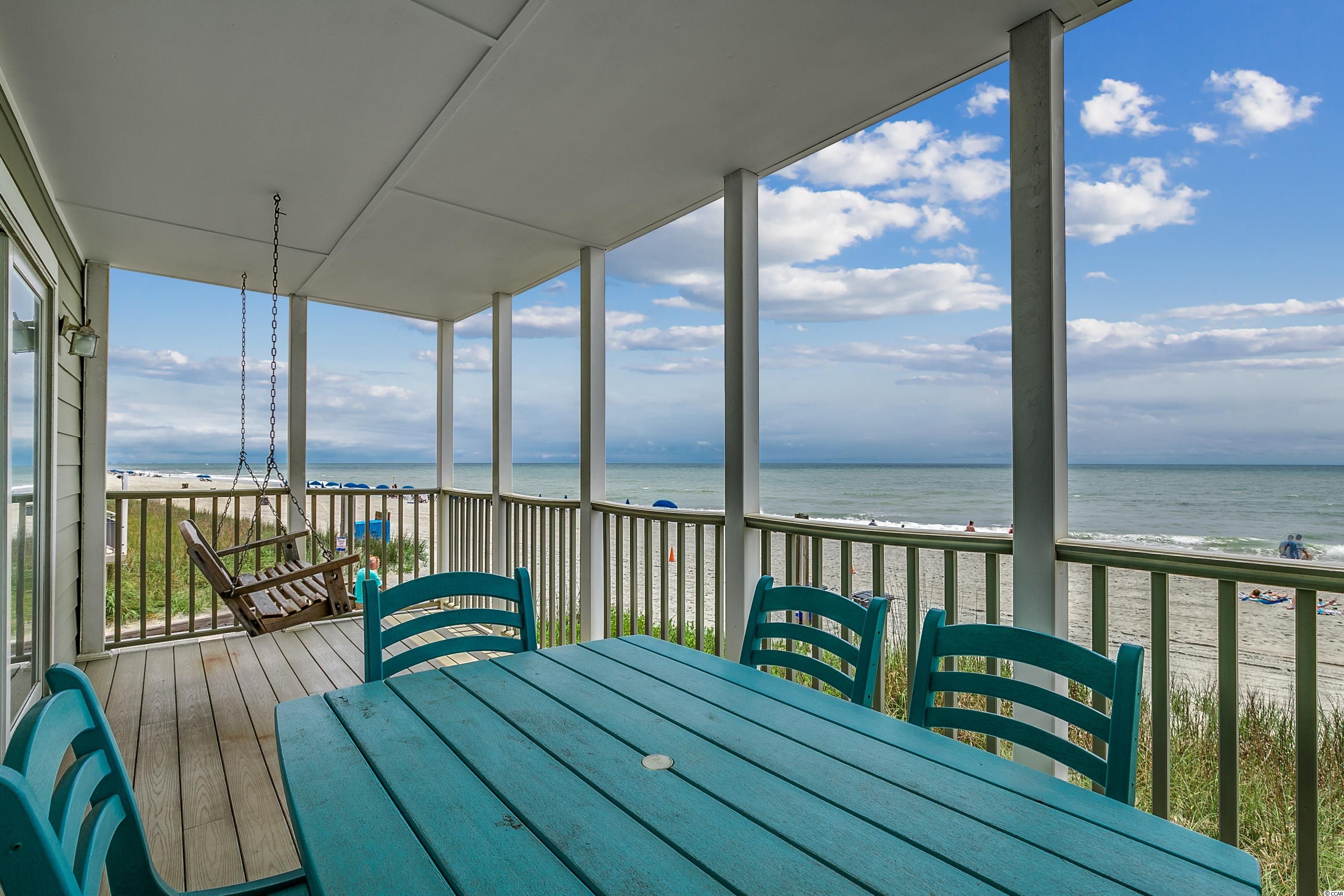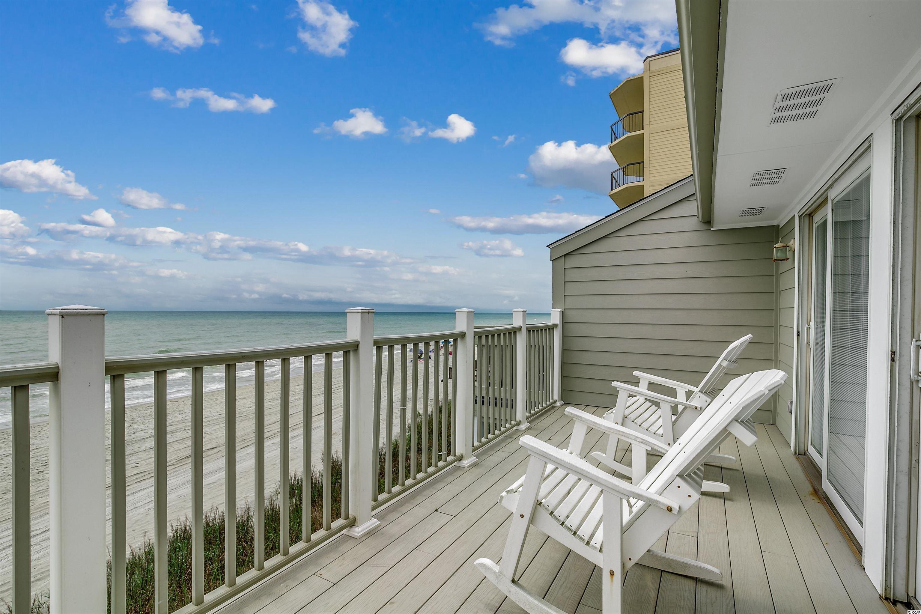 1 Ocean Townes is a direct oceanfront, raised beach, end unit townhouse in Garden City Beach with three bedrooms, 2.5 bathrooms, and no HOA. There are two oversized oceanfront porches, one covered off the living room and one open sundeck off the master bedroom, with panoramic ocean and beach views. There is covered parking and an attached exterior storage room for all your beach gear. The interior has been refurbished and updated, from the well-appointed kitchen to the bathrooms. There is a formal dining room separating the kitchen and living room and a half bathroom. The modern kitchen has granite countertops, stainless steel appliances, tile backsplash, and shaker-style white cabinets. The vast living room provides direct ocean views from every seat, the sliding glass doors have built-in blinds, and low maintenance tile flooring throughout. There are three bedrooms upstairs serviced by two full bathrooms. Both upstairs bathrooms have counter height vanities, subway tile walls, and custom tile showers. The oceanfront master bedroom boasts cathedral ceilings, a sundeck, and an ensuite bathroom. The property is being sold fully furnished. Currently, on a weekly rental program, the income can help defray the owner's carrying costs. One mile north of the Garden City Pier and iconic downtown, you're convenient to restaurants and beach shops. In the car, you're only minutes away from everything Myrtle Beach offers. So why continue to rent when you can own your piece of the Grand Strand? Just bring your swimsuit, and you're ready to go. Available to be shown this week. The seller will consider cash, unconventional, and portfolio financing offers. Make sure to check out the Matterport 3D Virtual Tour. It's like you're walking through the condo. Link to the virtual tour: www.bit.ly/1OceanTownes