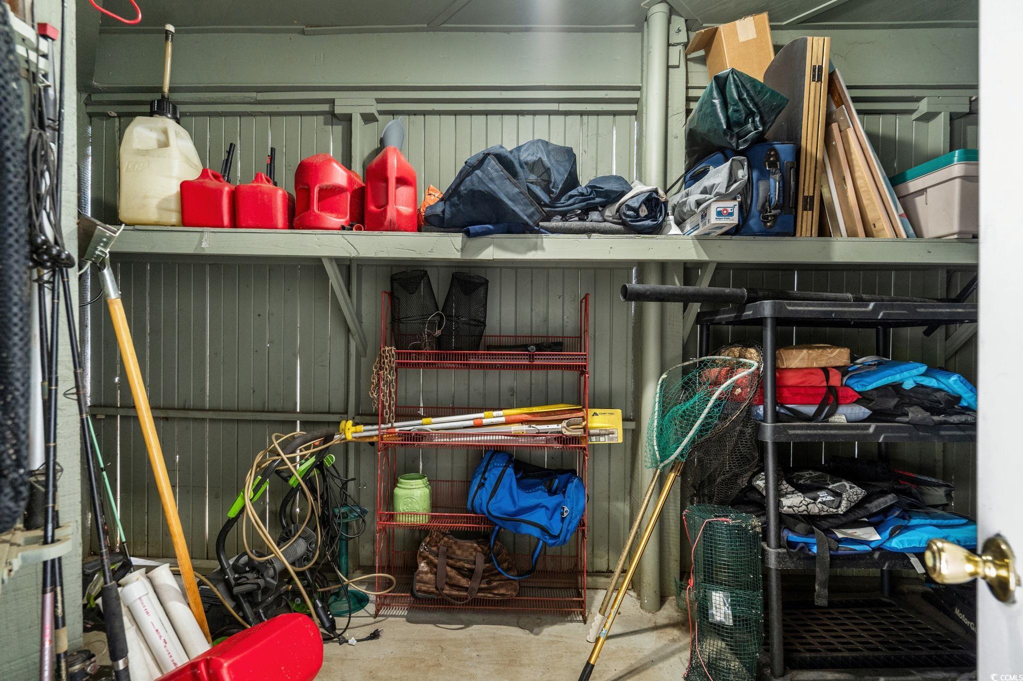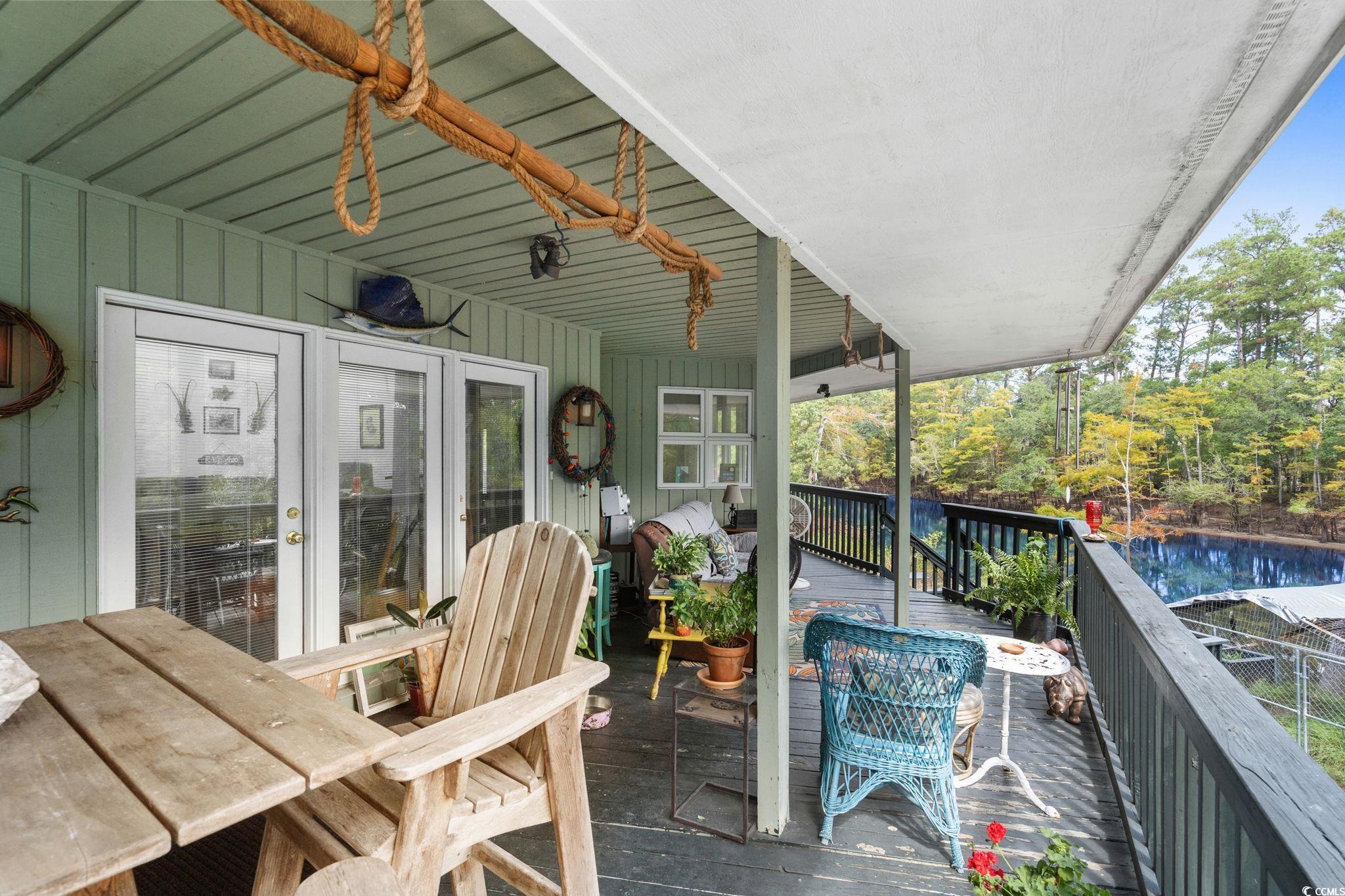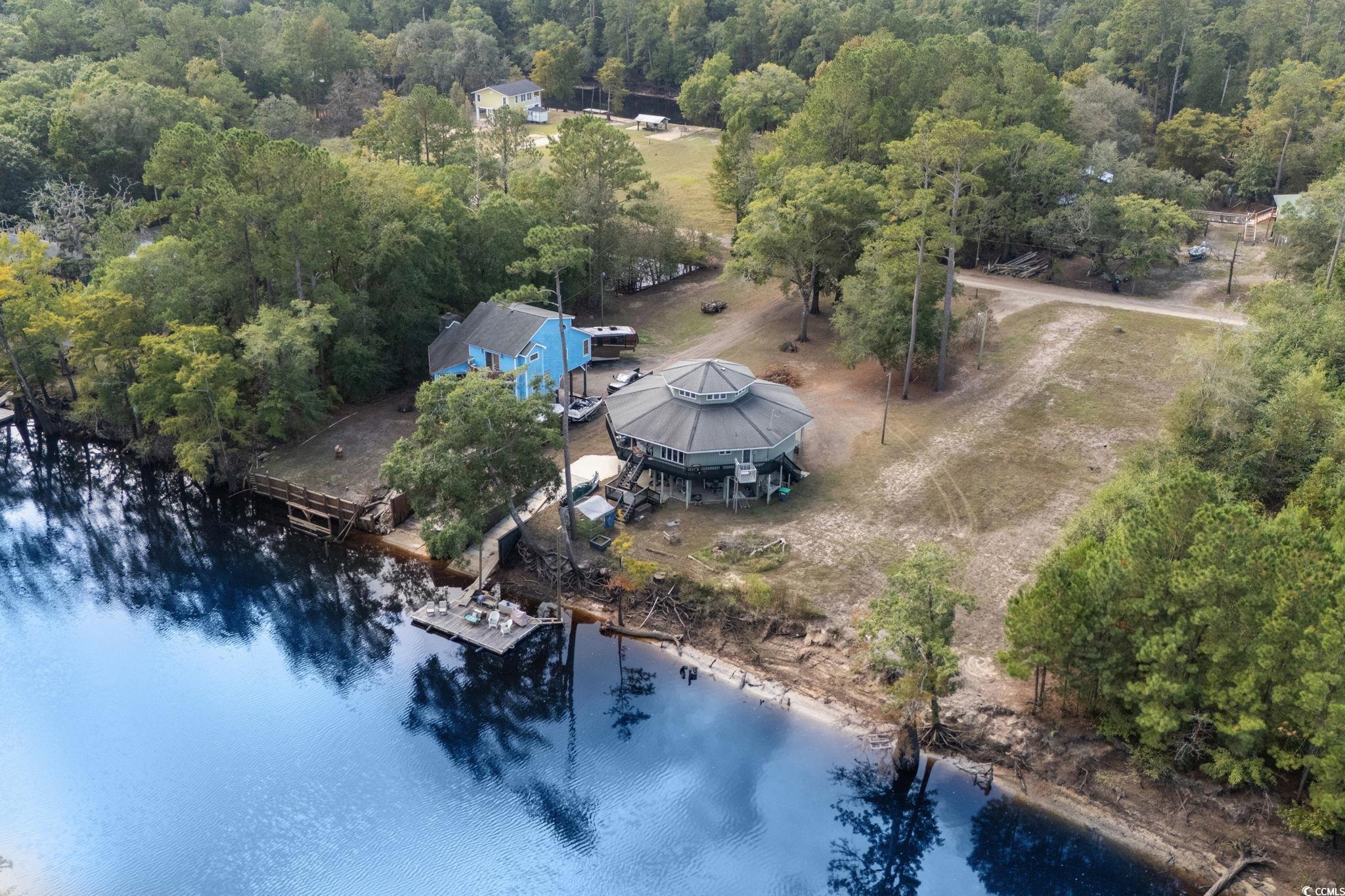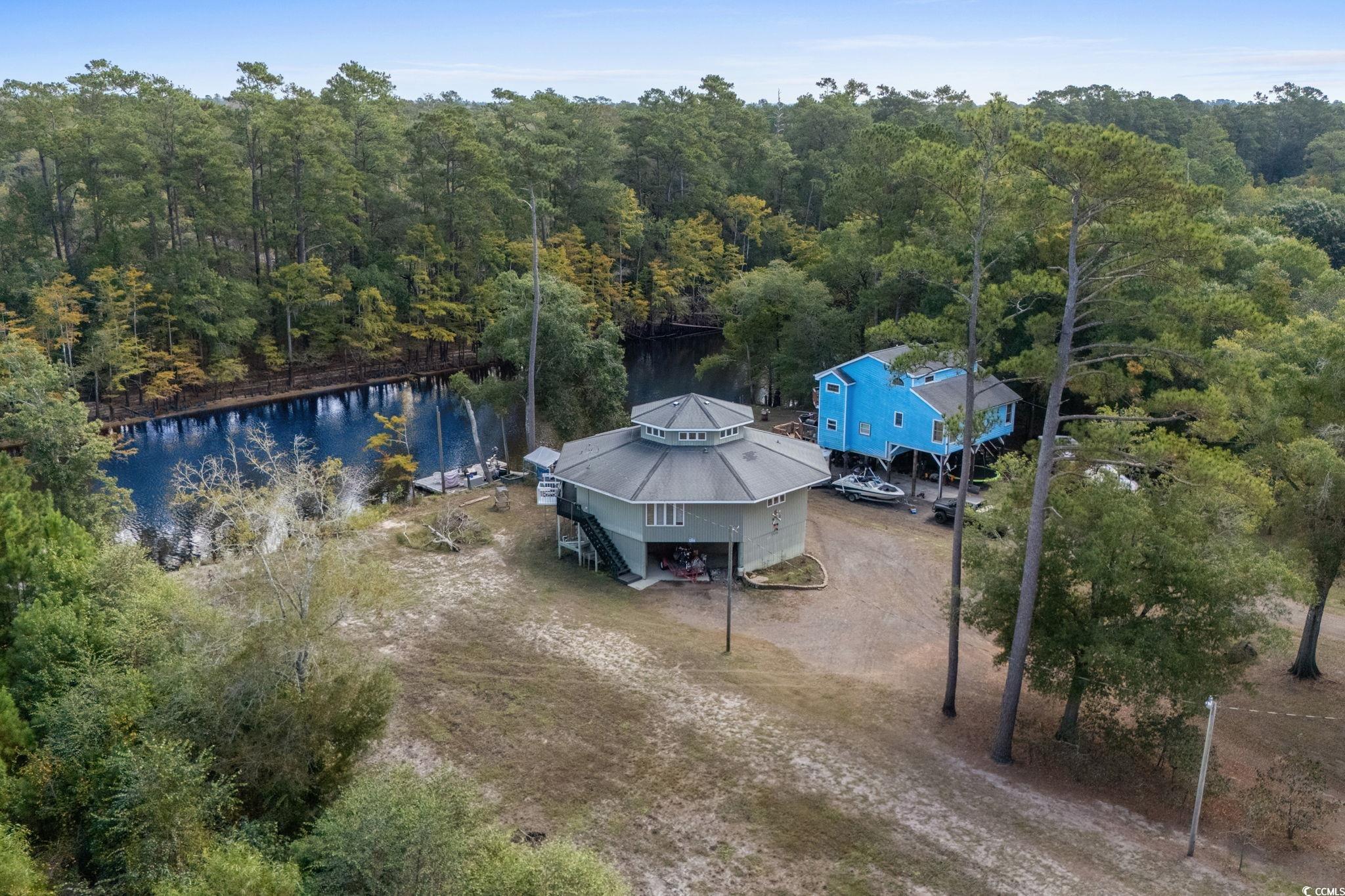 Experience the ultimate in waterfront living with this unique 3 bed, 2 bath raised beach home located directly on the Waccamaw River, perfect for outdoor enthusiasts, golfers, boaters, and fishermen. Built with flood-resistant materials on the ground level and never flooded on the main floor, this home includes an exterior lift that functions as an elevator, three floating docks built for ocean conditions, and a private boat ramp. Inside, enjoy an open-concept layout filled with natural light from Pella windows, a modern kitchen with stainless steel appliances, and a spacious primary suite featuring custom cabinets, a hidden storage locker, a floor safe, and a luxurious sauna/shower/tub combo. The large wrap-around porch with extended overhang offers stunning water views rain or shine. Additional features include 4 secure storage rooms, ample parking for boats, trailers, motorcycles, and RVs, plus a private sandy beach for the kids. Golfers can drive straight to Shaftesbury Glen Golf Club by golf cart. Best of all, NO HOA! This property offers a rare combination of rugged construction, thoughtful upgrades, and natural beauty, all in a serene, unrestricted setting.