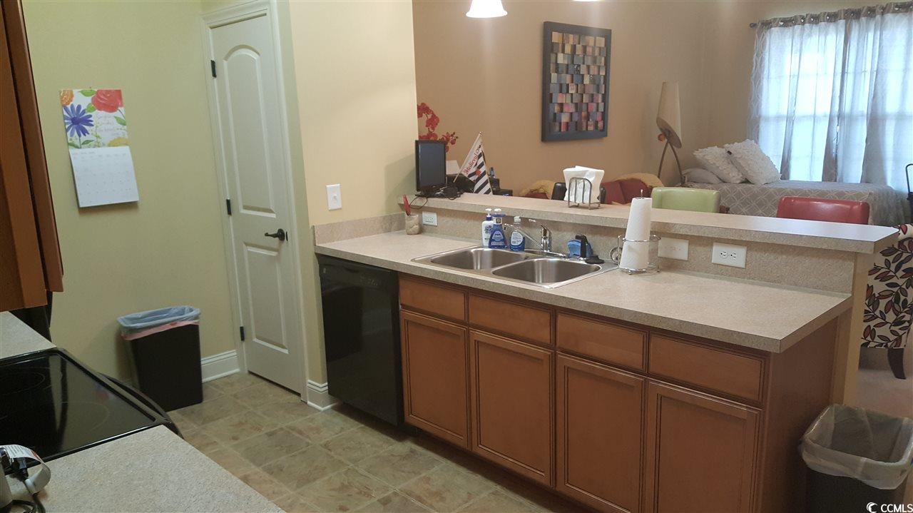 Located in one of the most successful condo developments in the Myrtle Beach area, this most desirable fourth-floor unit is a 1 bedroom 1 bathroom condo in the very popular Queens Harbour Development. This unit has 11' smooth ceilings, an outside storage closet and plenty of space in all the rooms including the kitchen which boasts a breakfast bar and pantry. The location is superb with shopping, dining and recreation steps away. The amenity package includes a resort style swimming pool and clubhouse, conveniently located picnic areas with grills and an elevator in every building. Please note that the photos are of previously sold one bedroom unit.
