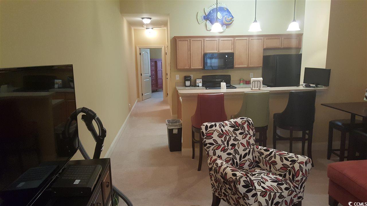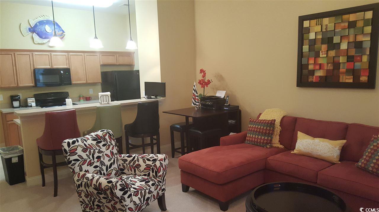 Located in one of the most successful condo developments in the Myrtle Beach area, this most desirable fourth-floor unit is a 1 bedroom 1 bathroom condo in the very popular Queens Harbour Development. This unit has 11' smooth ceilings, an outside storage closet and plenty of space in all the rooms including the kitchen which boasts a breakfast bar and pantry. The location is superb with shopping, dining and recreation steps away. The amenity package includes a resort style swimming pool and clubhouse, conveniently located picnic areas with grills and an elevator in every building. Please note that the photos are of previously sold one bedroom unit.