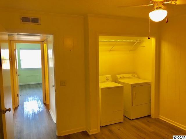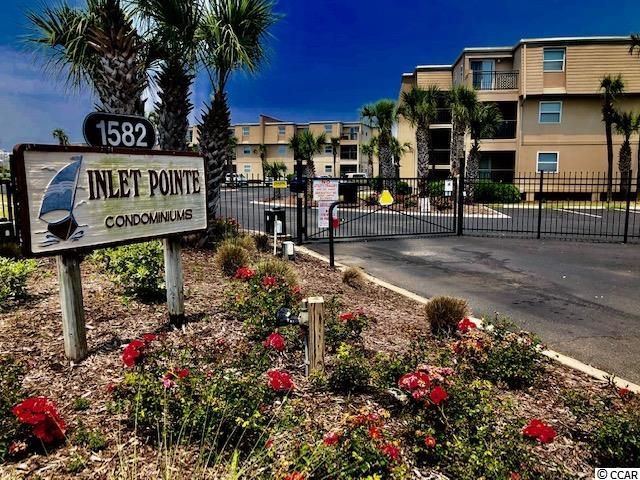 Quiet southern end of Garden City Beach, Inlet Pointe Condos enjoy pure sunshine and South Carolina Trade-Winds, with across the street, deep dunes and a wide beach with your very own private (Community) beach access (Please see the dune walkover photo). And on Inlet Pointe property, a main channel-front pool (see photo), along with a beautiful dock and day-mooring floating dock at the end all for your enjoyment. Where to put that boat when not in use? These Condos have a dry storage area just for you (see photo). Meticulously landscaped, and with ample private parking once you've passed through the private gate, head up to this second-floor, end unit with living room views out toward the Marlin Quay Marina and yes, the ""spaceship"" house (see photos)! The second floor is ideal as it puts you up just enough for all the grand views from this sought-after end unit. And as most units must use the community washers and dryers, not you, because this is one of few Units having it's very own washer and dryer inside the Unit. This one is vacant, with absolutely no furniture, so get it (only one has sold in two years) and make it into your ""Coastal Living Get-a-way"", without spending a fortune. NOW!