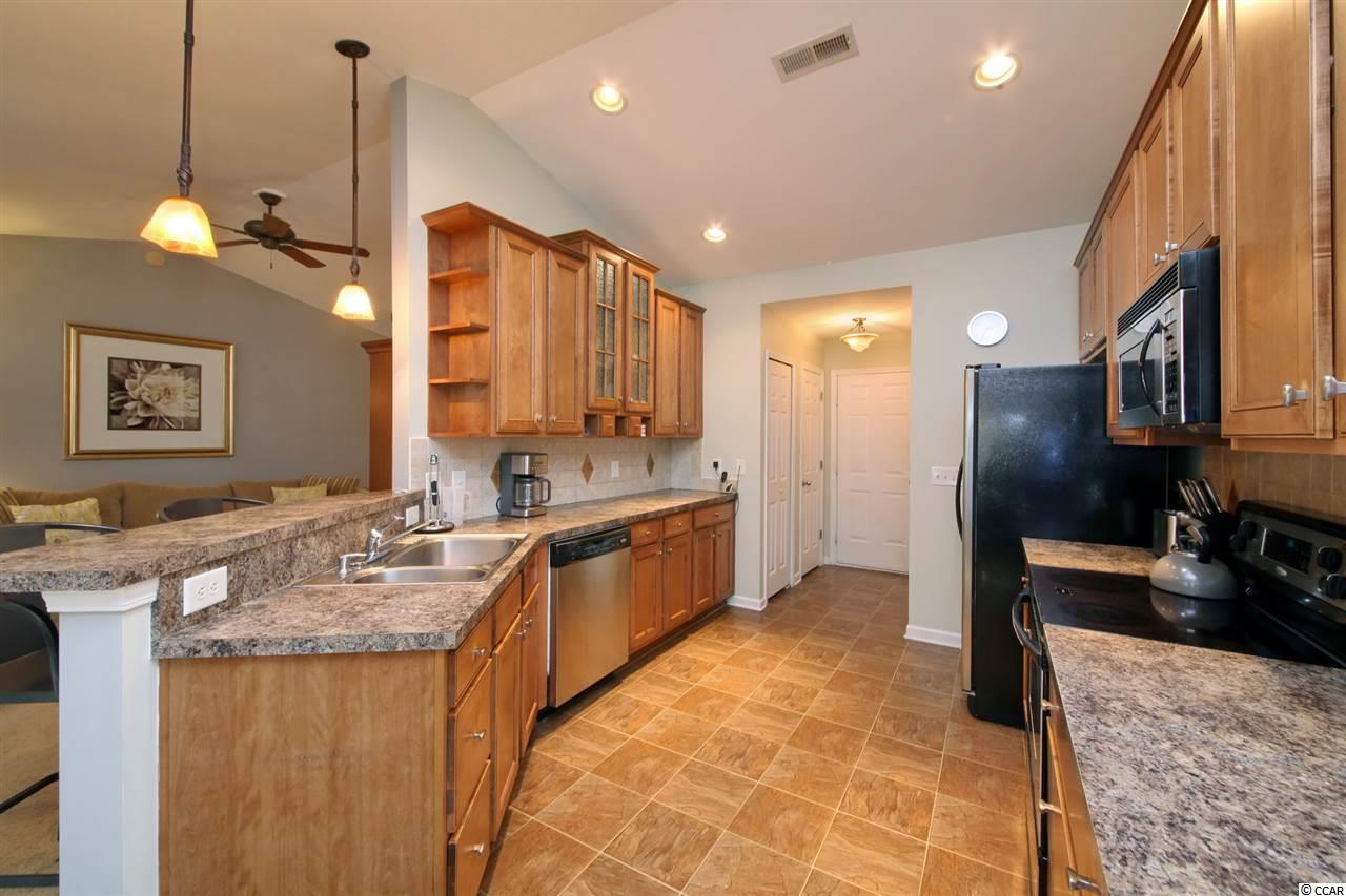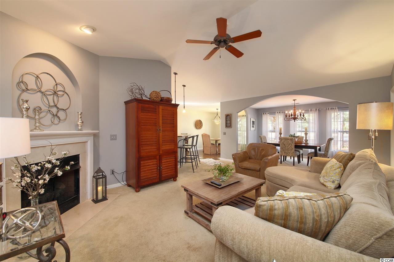 Located on the 11th fairway of the ever popular River Club, this brick home awaits its newest owner. This 3 bedroom, 2 full bath home was built in 2004 and still occupied by it's original owner. Freshly repainted, the interior is highlighted by the vaulted ceilings throughout the main living area & arched doorways. The family room offers a gas fireplace. The spacious kitchen boasts stainless steel appliances, breakfast bar & custom tile back-splash. Enjoy family meals at the breakfast nook located just off the kitchen or in the formal dining area. Additional square footage awaits in the bonus room that could serve as an office or room for overflow guests. The exterior features an attached 2 car garage, mature landscaping & a sprinkler system. This gated community has lots of amenities including a pool and access to Litchfield by the Sea which offers one beach access, tennis courts, walking/biking paths & fishing areas.