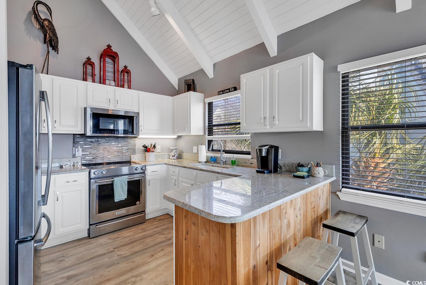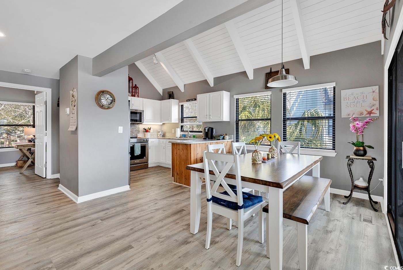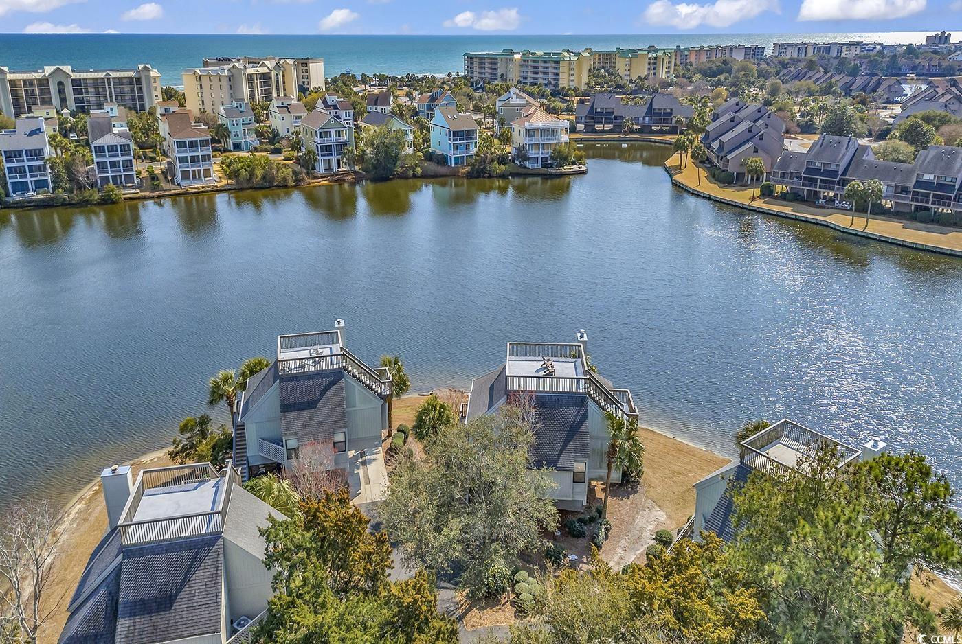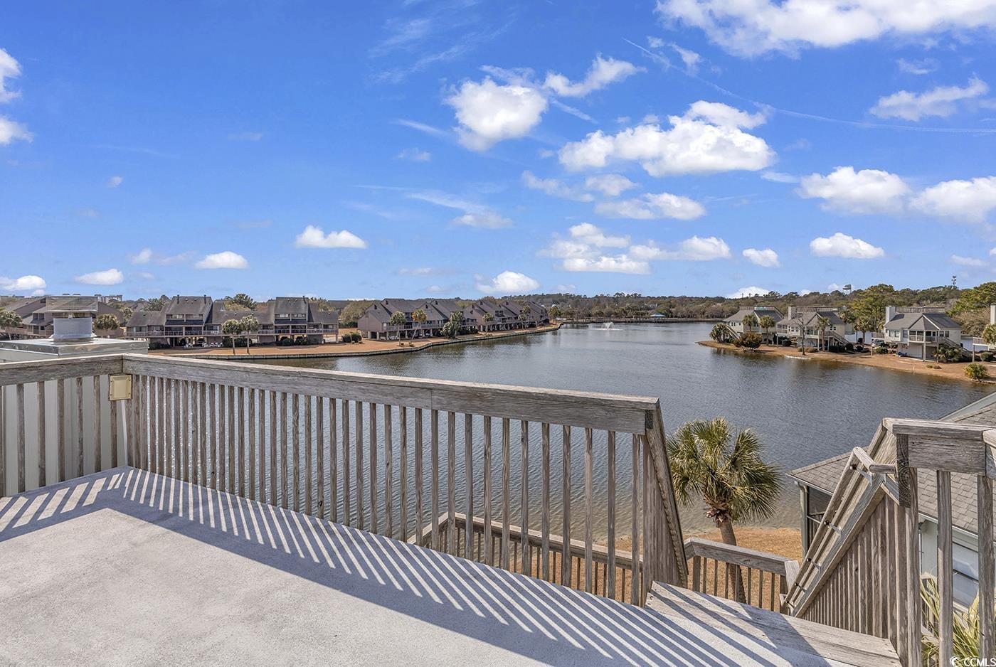 Welcome home! This splendid private villa is perfectly located on a large lake in the heart of the ocean front Litchfield By the Sea resort, and offers spectacular and expansive water views. With an inviting blend of contemporary architecture and classic coastal design, this delightful Oystercatcher island home offers 3 bedrooms, 3 baths, and a convivial open floor plan with glorious water views from the living room, dining area, kitchen, 2 porches, and all bedrooms. There are 2 bedrooms on the main floor, both of which have a private full bathroom. The spacious primary suite on the upper level features an oversized whirlpool tub, tile shower, double sink vanity and access to its private deck overlooking the lake. Make your way to the large roof top deck where you can relax and enjoy stunning panoramic views of the ocean, lakes, and marsh. The sparkling blue Atlantic Ocean is a short walk or golf cart ride away, and a roomy enclosed ground floor workshop/storage area is ideal for your bikes, beach toys and golf cart. For your enjoyment, Litchfield-by-the-Sea offers private boardwalk access to the beach, tennis and pickle ball courts, oceanfront clubhouse with sundeck, cabana and wheelchair ramp, fishing lake, marsh overlook with floating dock for crabbing, miles of walking/jogging/bike paths, dining, and 24 hour gated entrance.