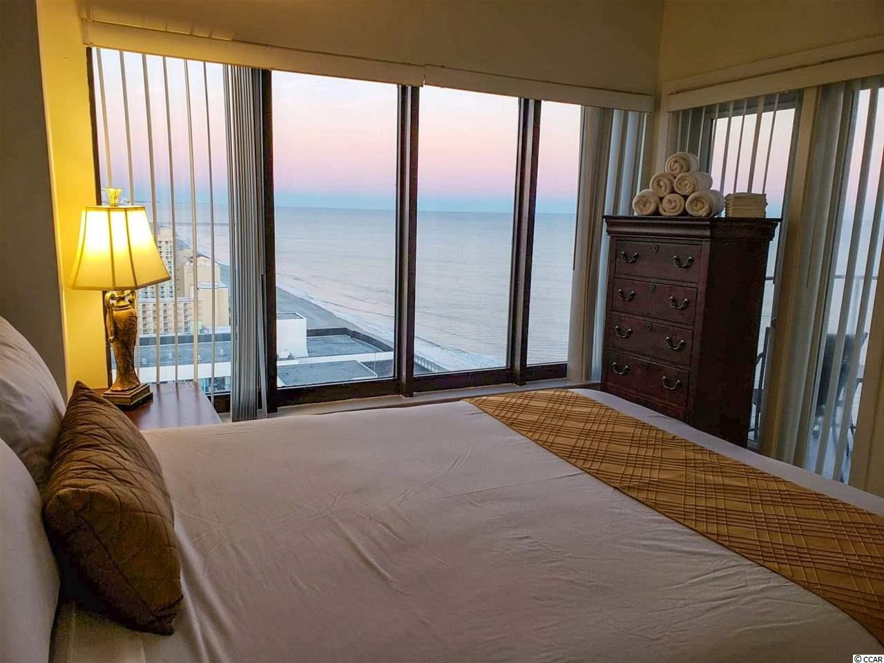 Come enjoy this angle oceanfront 2 bedroom, 2 bath unit with 2 private balconies!! Located on the 22nd floor with a completely unobstructed view! It's located on the North side of the building, meaning you get the PERFECT sunrise over the ocean. The master bedroom features a queen bed, with private bathroom. The master bathroom has been recently remodeled with beautiful tile work and a shower/tub combo. The second bedroom features a queen bed with a private balcony overlooking the city. Not an early bird? This means you can also enjoy a sunset over the city with incredible views from the rear balcony. The guest bathroom has been remodeled and has a stand-up shower. Indoor hot tubs are located on the 22nd floor as well! This is a great unit that has proven to be a solid investment with great rental history.