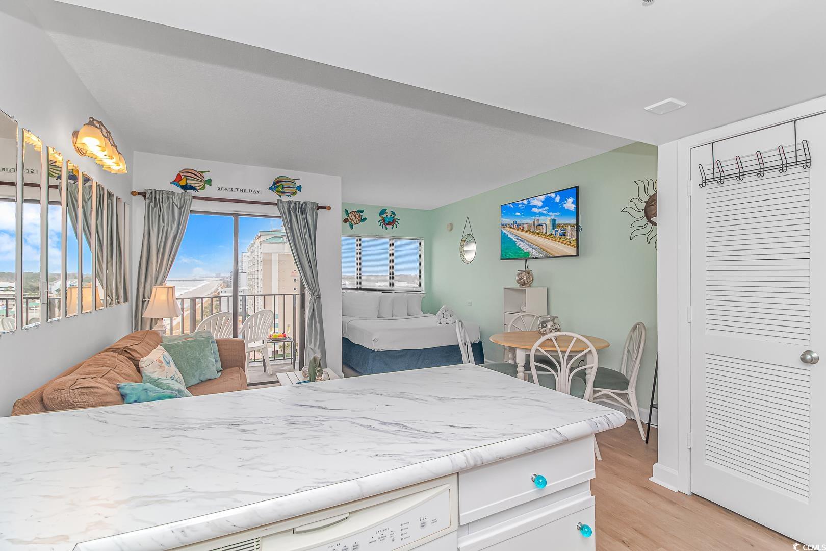 Experience breathtaking ocean views from this beautifully renovated 8th-floor studio at the Palace Resort in Myrtle Beach. Updated in February 2024, this fully furnished unit accommodates 2-4 guests and features new vinyl plank flooring, fresh paint, and stylish coastal dcor. The open floor plan includes a queen bed, sleeper sofa, large flatscreen TV, and a private balcony with stunning Atlantic Ocean views. The modern kitchen boasts new white cabinetry, tile backsplash, updated countertops, and full-size appliances. This studio is an excellent investment property, but could also be utilized as a second home or even a primary residence! Enjoy resort amenities, free parking, beach access, and a prime location near top attractions, dining, shopping, and entertainment. Dont miss this opportunity to own a slice of paradise! Call the listing agent for more information!