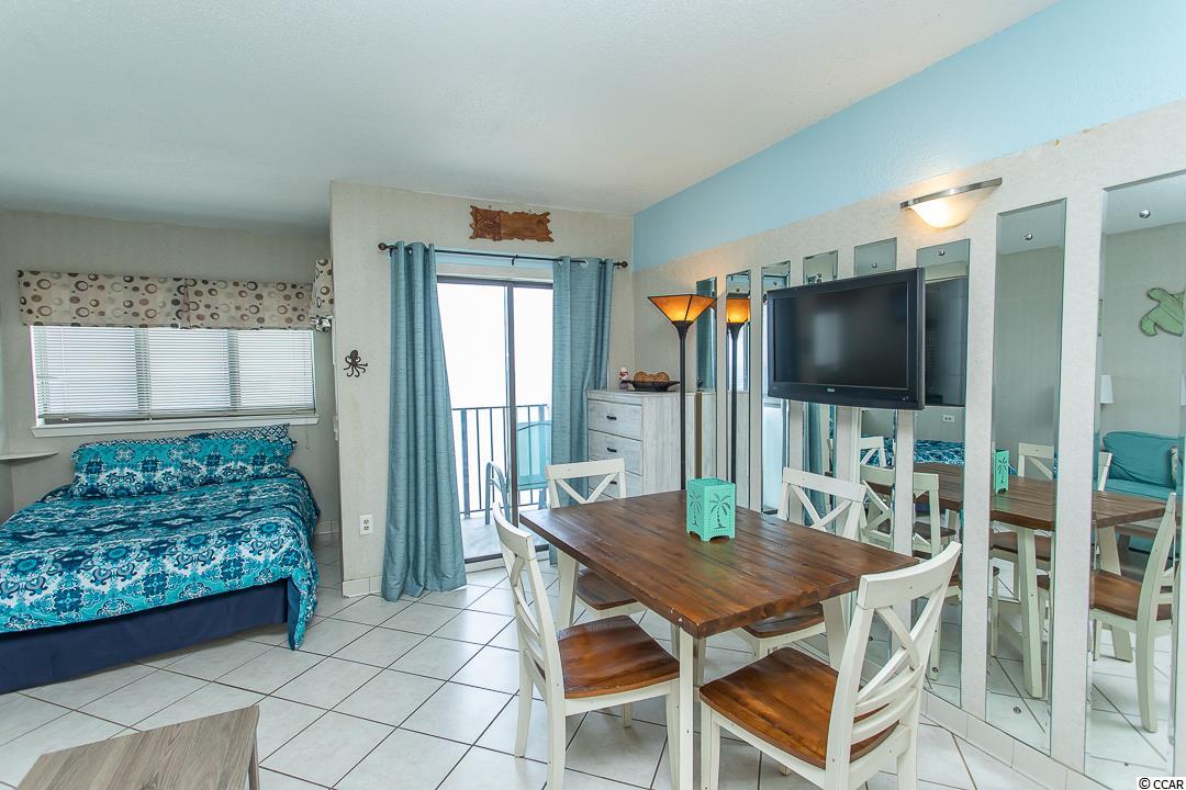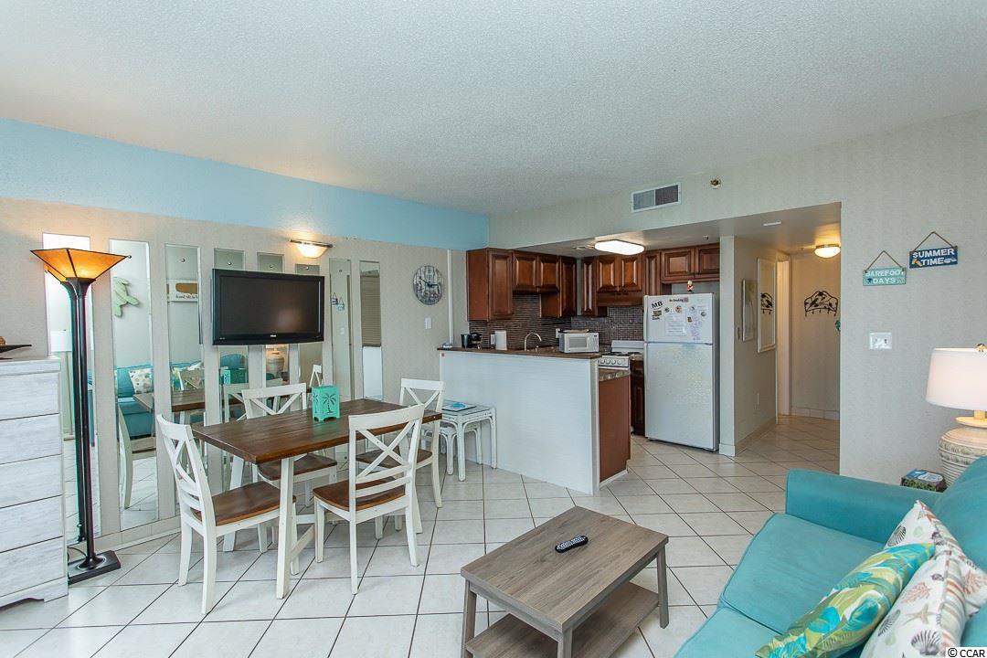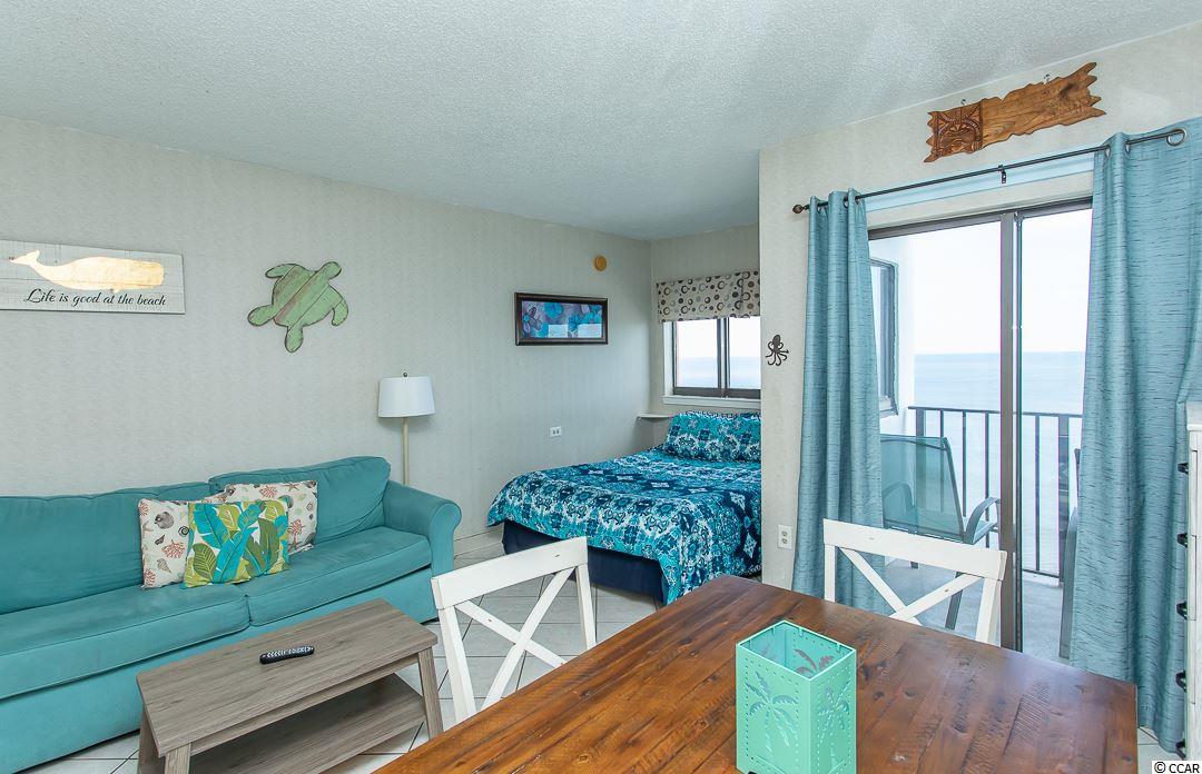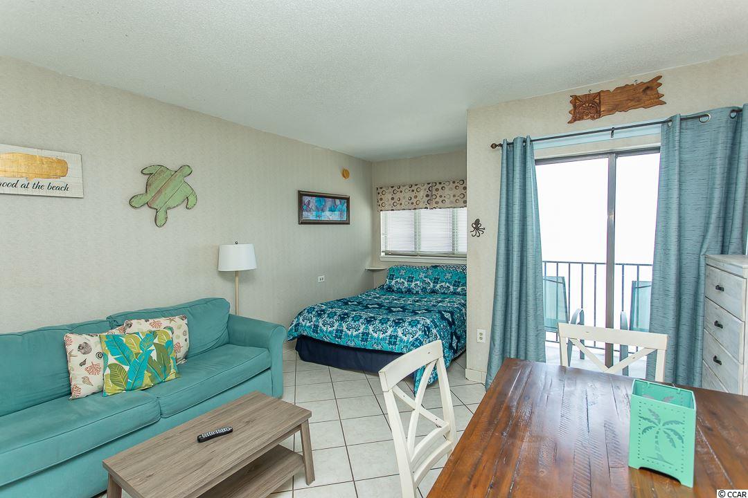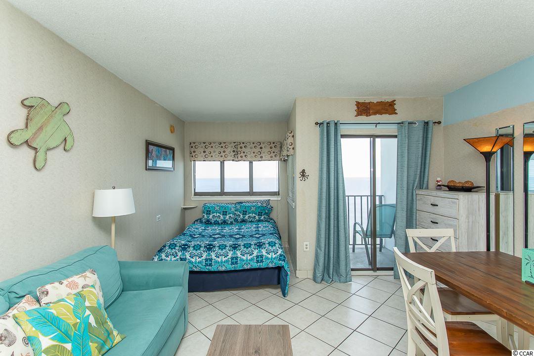 Have you ever dreamed of owing an oceanfront condo in Myrtle Beach? You can wake up to the sights and sounds of the ocean waves and enjoy morning coffee in your own place. This 10th floor studio condo has direct oceanfront views from the balcony and a well thought out floor plan. The unit has a complete kitchen with everything needed for meals at home. Perfect for those that want to be able to rent weekly or monthly and have a place of your own for vacations. Move in ready with features that include tile floors, updated cabinets and newer furnishings. Sleeps up to 4 people with pull out sofa. The building has recently been painted and has everything you could want including jacuzzi tubs, exercise room, laundry facility, putting green, steam room, sauna, indoor and outdoor pools! On the south end of Myrtle Beach and close to the airport, shopping at Market Common or Coastal Grande Mall and, of course, the BEACH! Square footage is approximate and not guaranteed. Buyer is responsible for verification.