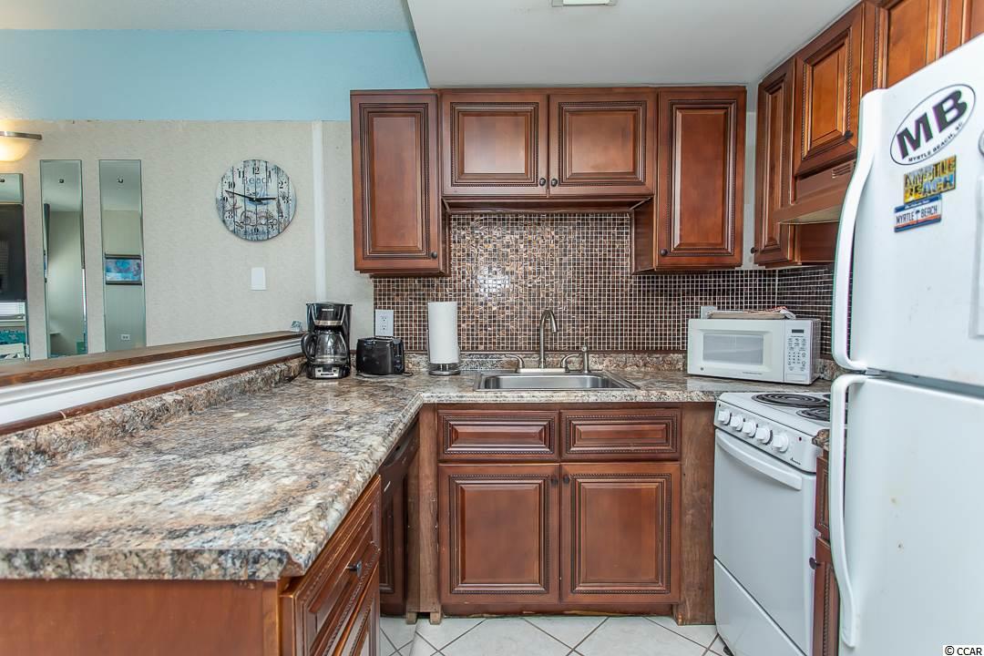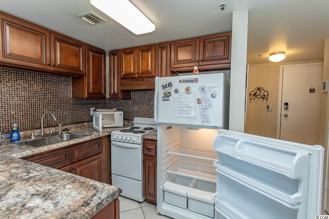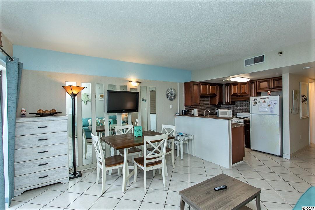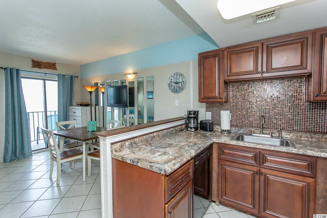 Have you ever dreamed of owing an oceanfront condo in Myrtle Beach? You can wake up to the sights and sounds of the ocean waves and enjoy morning coffee in your own place. This 10th floor studio condo has direct oceanfront views from the balcony and a well thought out floor plan. The unit has a complete kitchen with everything needed for meals at home. Perfect for those that want to be able to rent weekly or monthly and have a place of your own for vacations. Move in ready with features that include tile floors, updated cabinets and newer furnishings. Sleeps up to 4 people with pull out sofa. The building has recently been painted and has everything you could want including jacuzzi tubs, exercise room, laundry facility, putting green, steam room, sauna, indoor and outdoor pools! On the south end of Myrtle Beach and close to the airport, shopping at Market Common or Coastal Grande Mall and, of course, the BEACH! Square footage is approximate and not guaranteed. Buyer is responsible for verification.