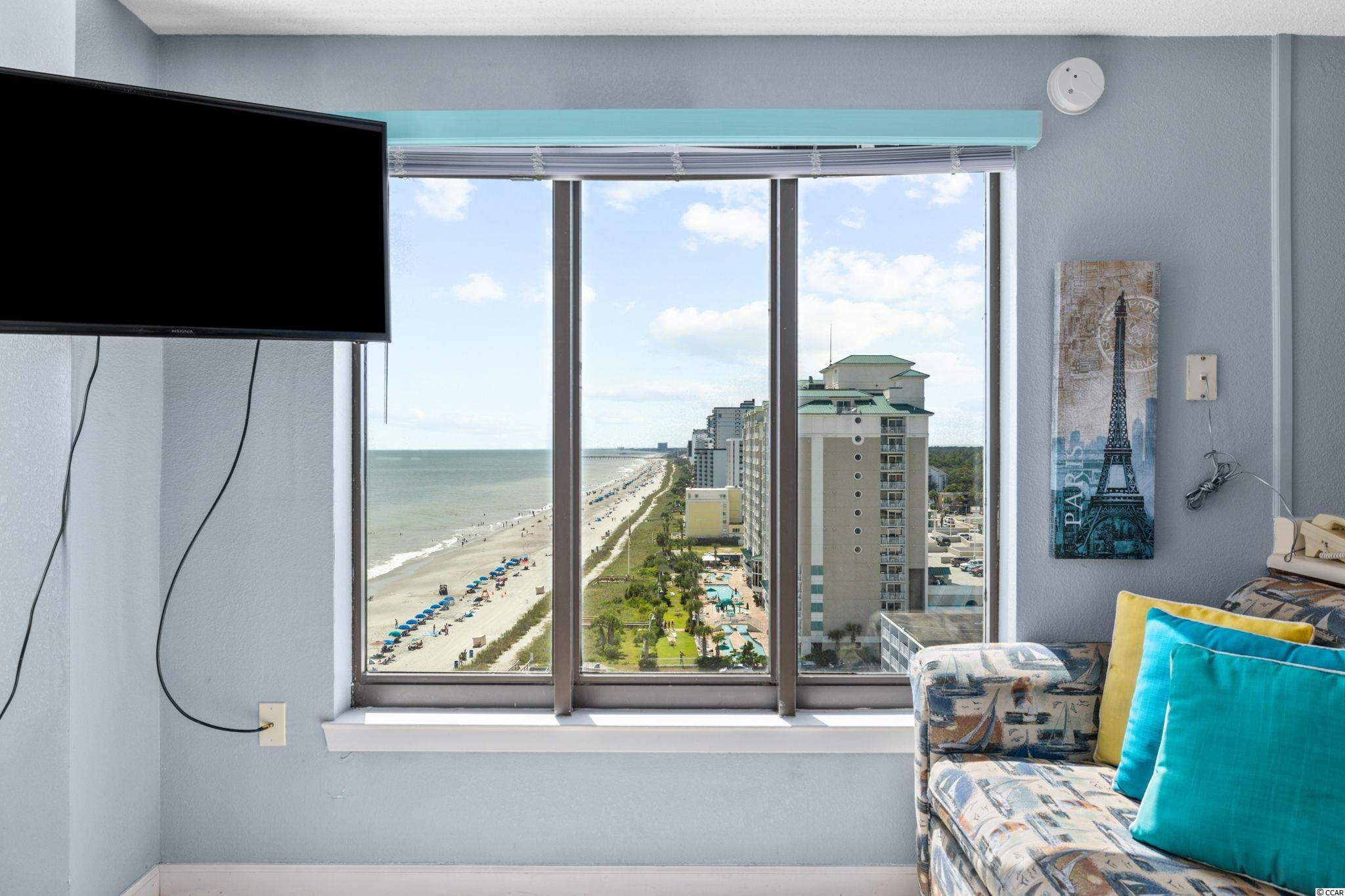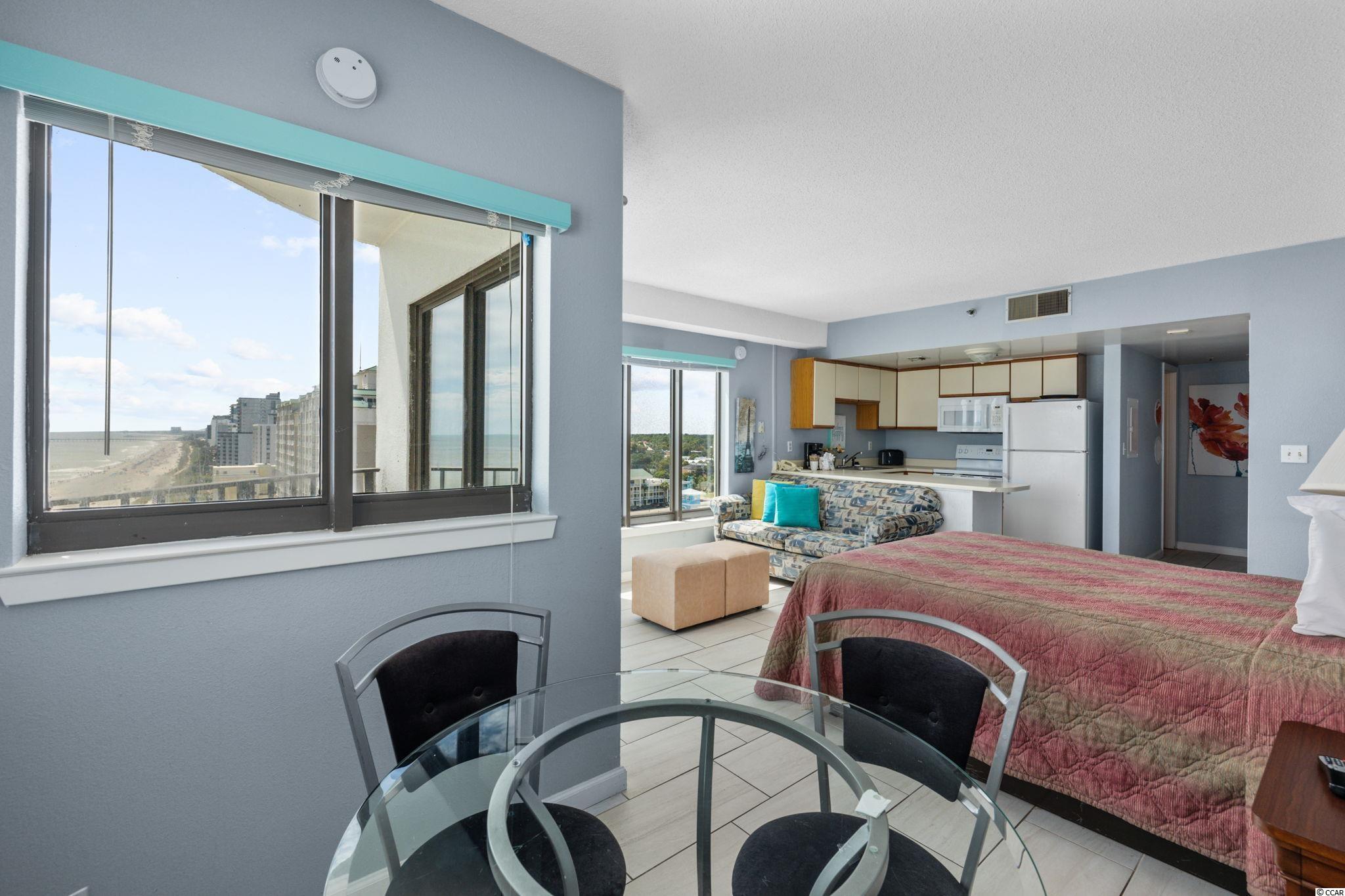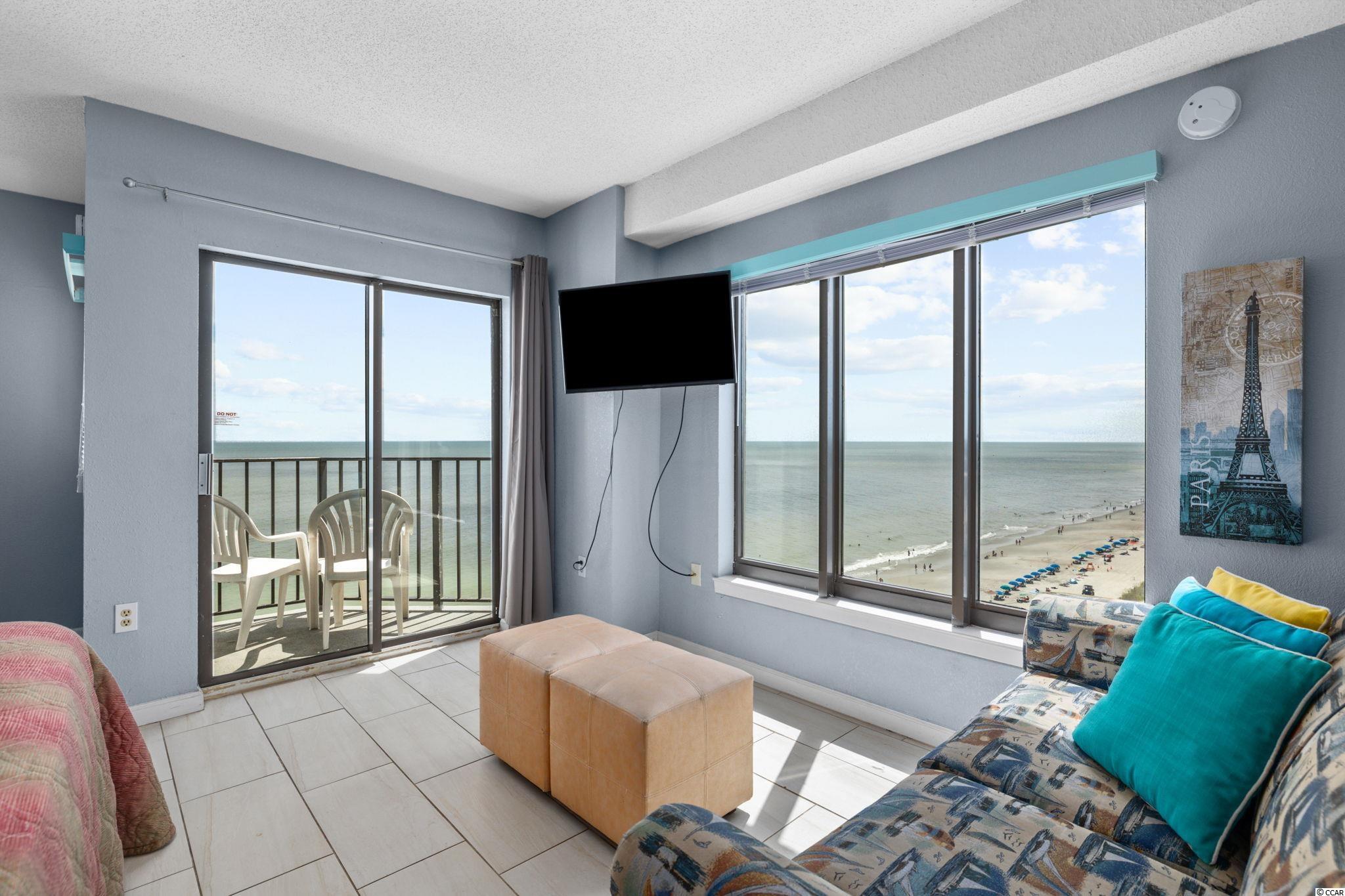 Oceanfront Corner Efficiency with Remarkable Views from the 10th Floor at The Palace Resort! Ocean vistas from both the living area and balcony. This condo is an excellent beach get away and/or investment property. HVAC, appliances, furniture, windows replaced 2016. Modern tile flooring throughout. The Palace features a host of amenities: Large oceanfront outdoor pool, indoor pool, whirlpools, putting green, exercise room, sauna, restaurant/lounge, free wireless internet, guest laundry facilities, attached parking garage. The Palace is minutes from Market Common, the Boardwalk, Broadway at the Beach and the Myrtle Beach Airport. NO Owner financing.
