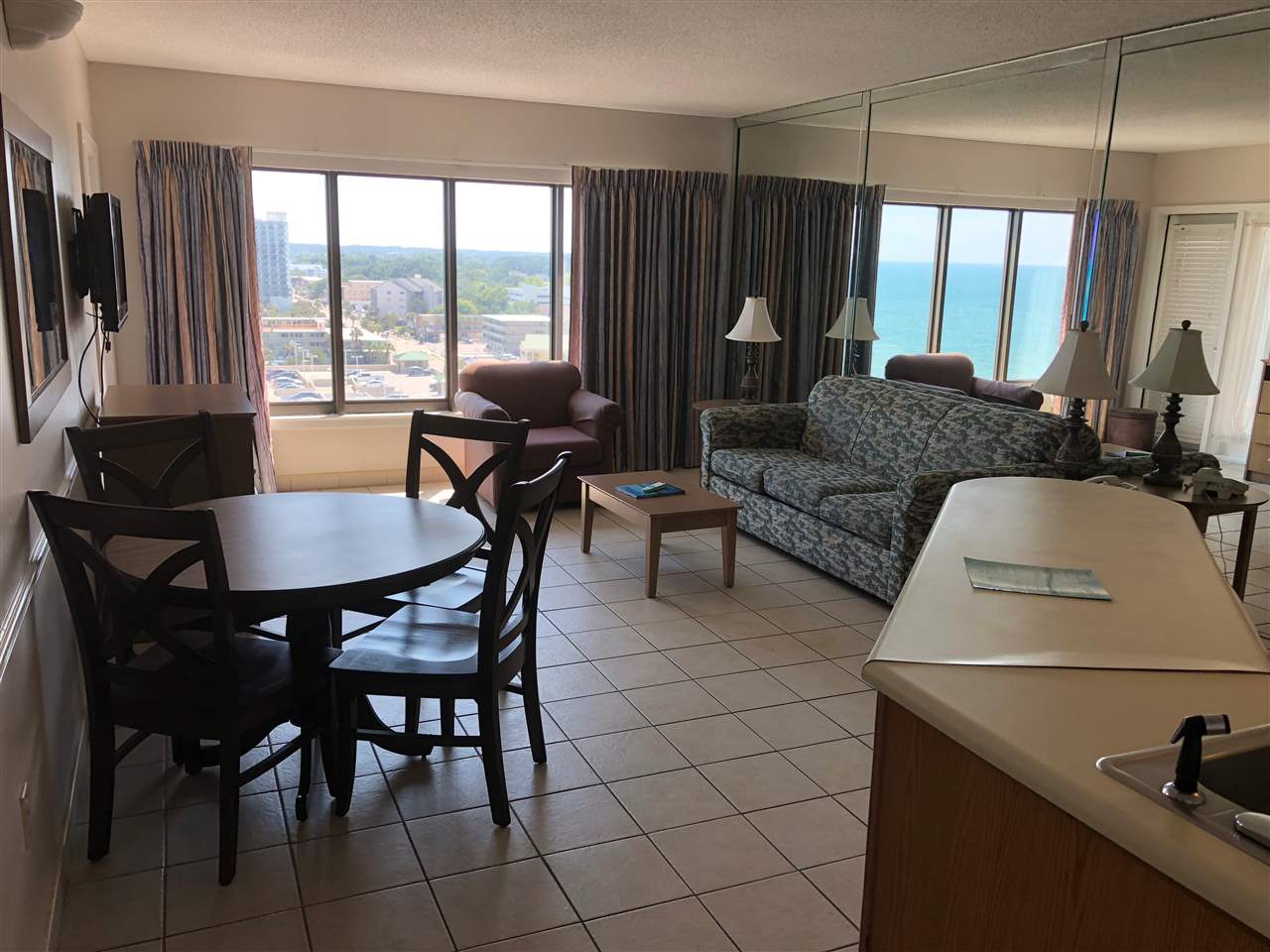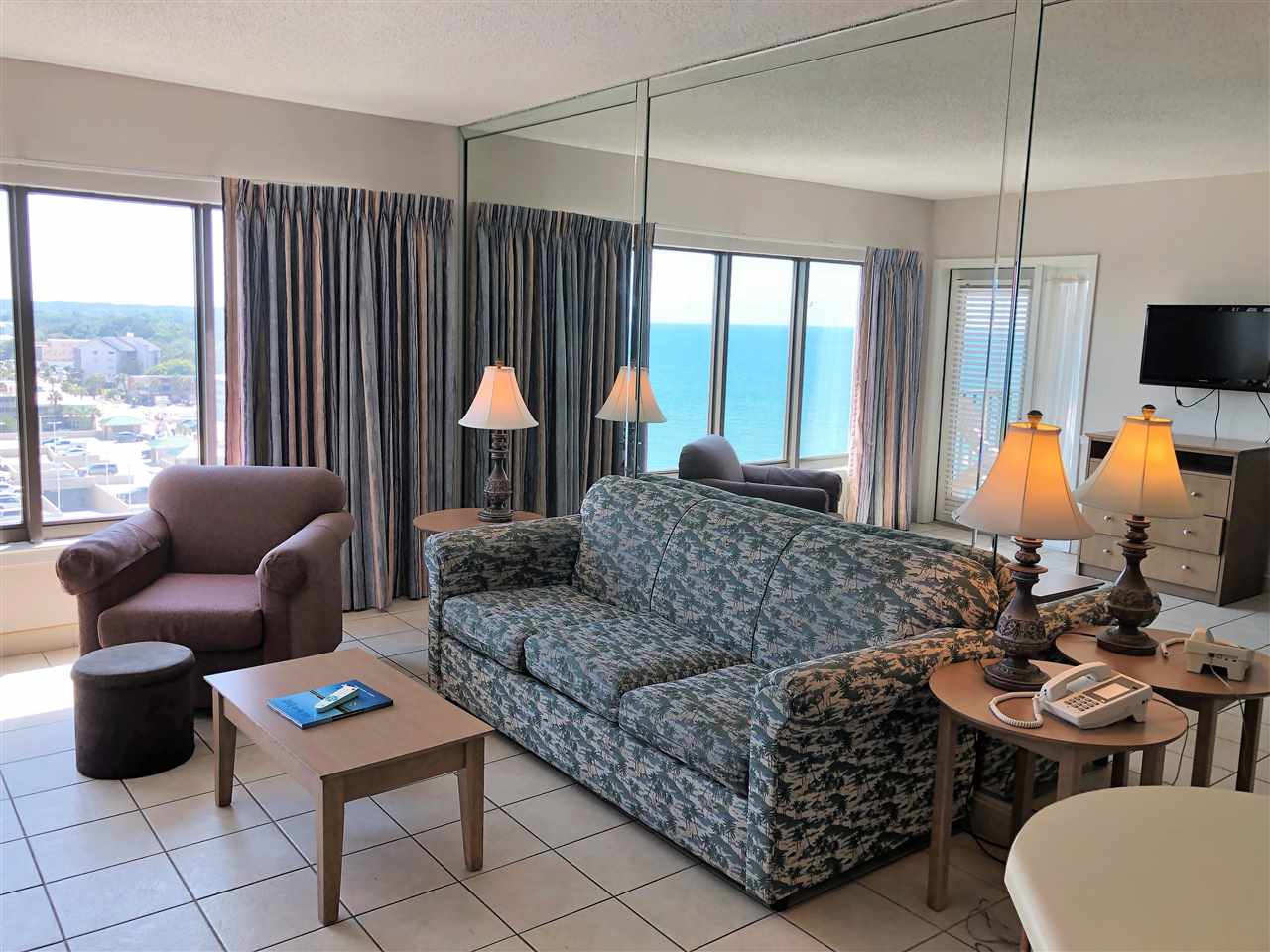 Great Beach Get-Away and/or Investment Property! 1BR-1BA condo, fully furnished and well maintained with a beautiful ocean view from both the bedroom and living room. Tile flooring throughout. The Palace Resort features a host of amenities: Large oceanfront outdoor pool, indoor pools, whirlpools, putting green, exercise room, sauna, restaurant/lounge, free wireless internet, guest laundry facilities, attached parking garage. The Palace is minutes from Market Commons, the Boardwalk, Broadway at the Beach and the Myrtle Beach Airport.