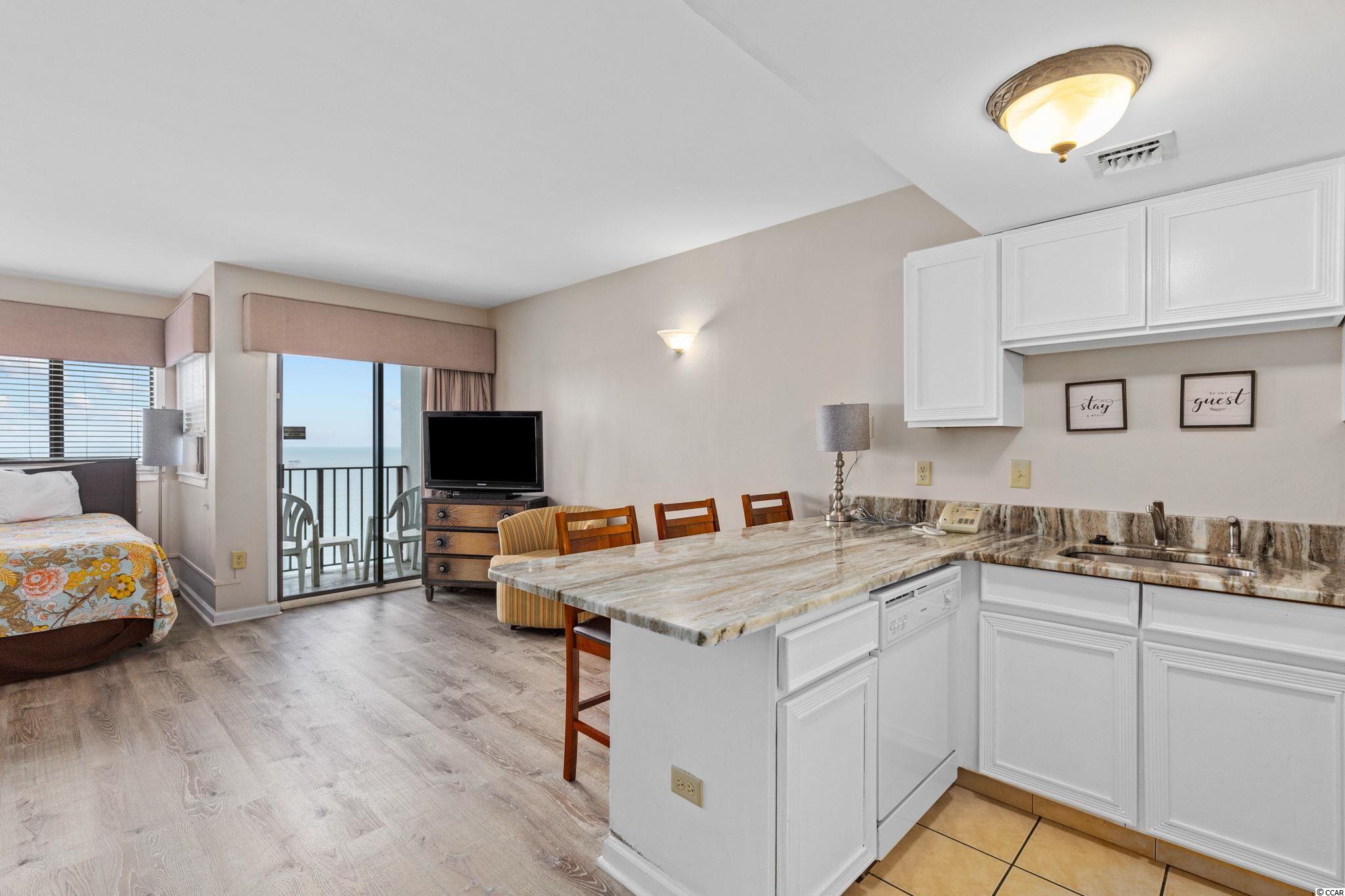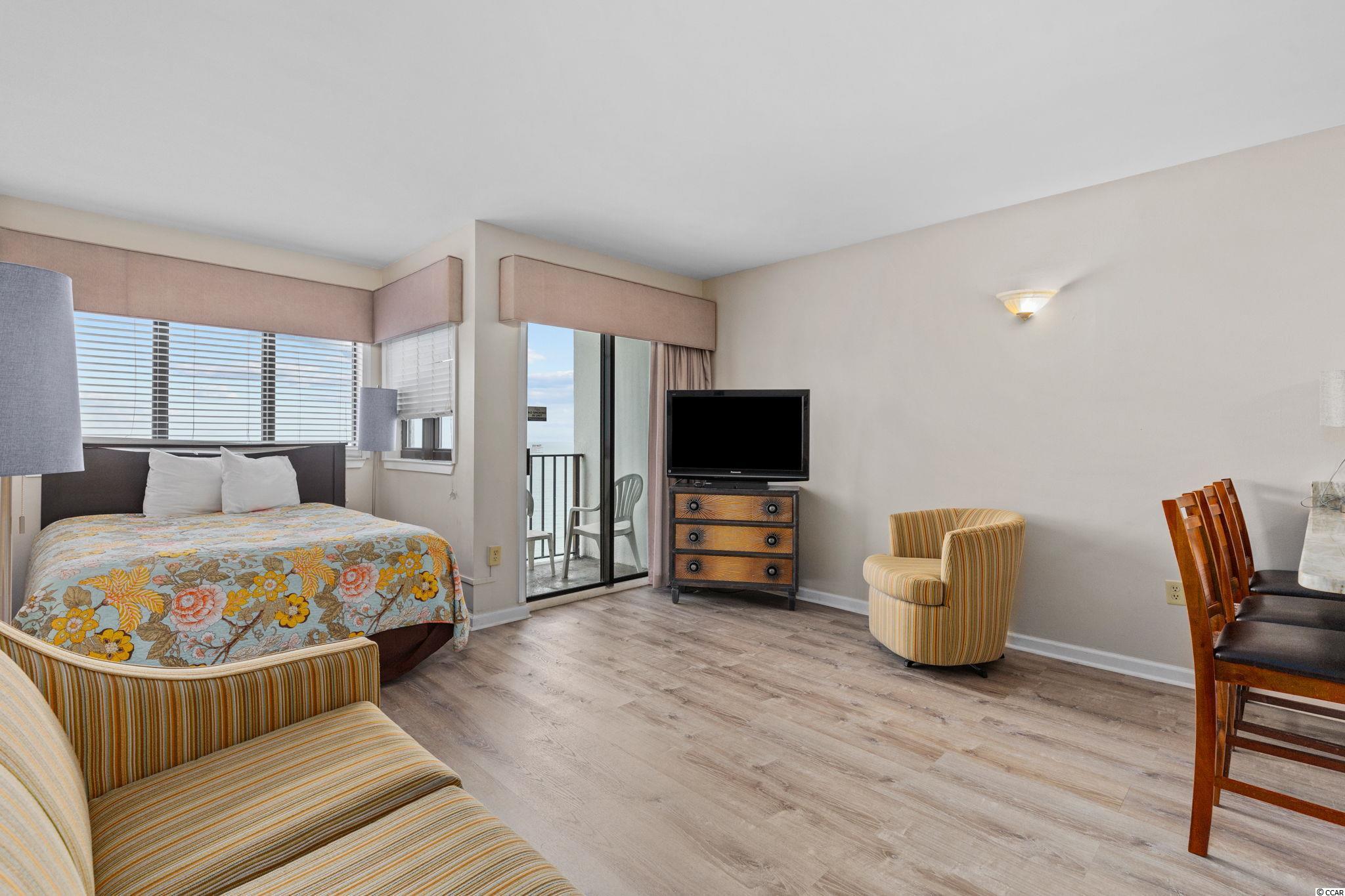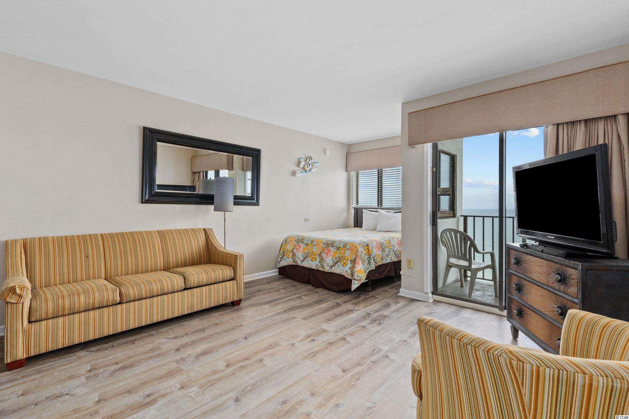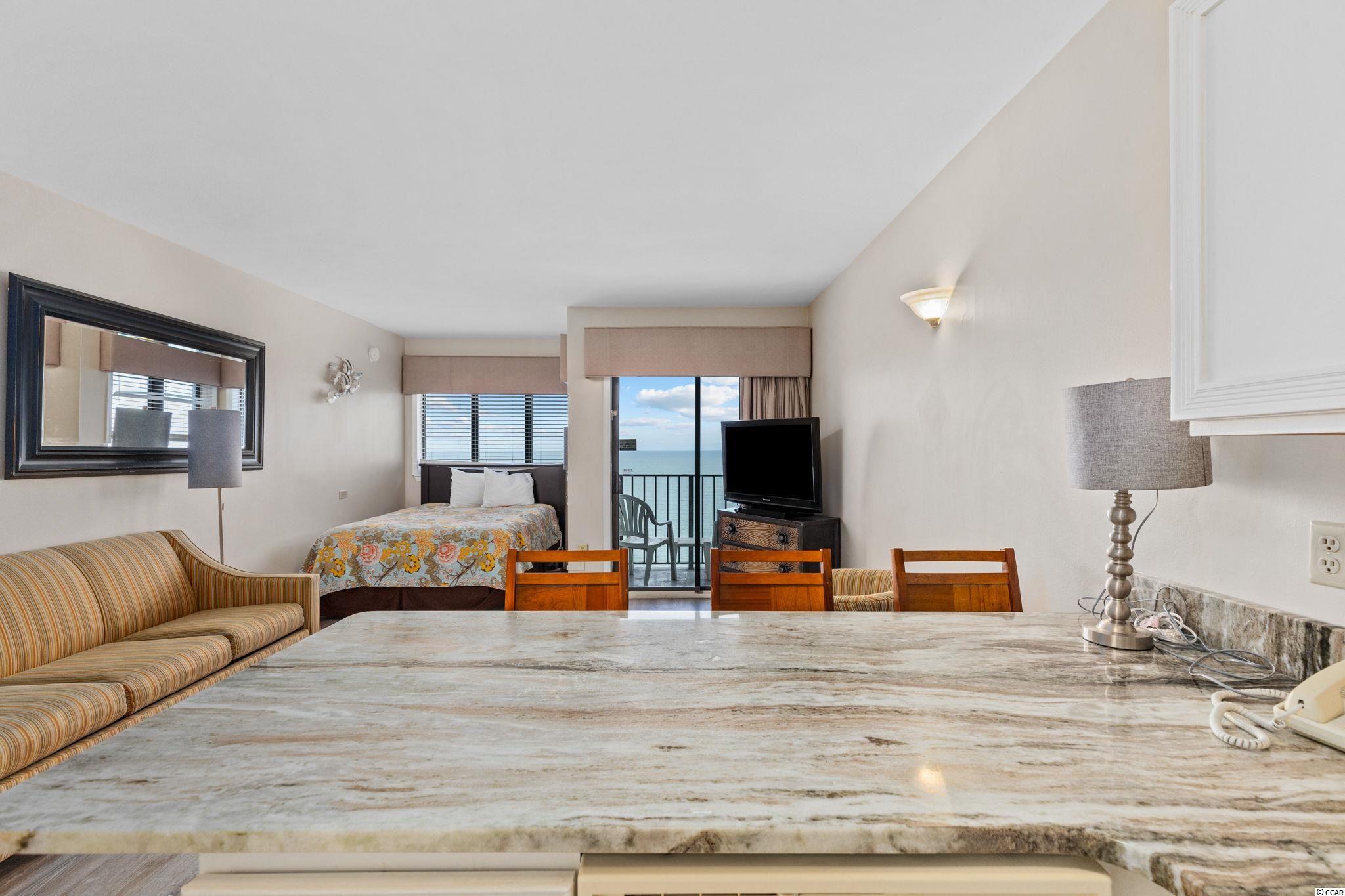 This is a great updated vacation or rental unit located at The Palace Resort in Myrtle Beach. This spacious efficiency condo has an open floor plan conjoining the bedroom, spacious living room, and large kitchen overlooking a beautiful oceanfront view. Condo comes fully furnished featuring new paint, new vinyl, and new granite counter tops in the full kitchen. All owners and guests of the resort get to enjoy all amenities including the indoor/outdoor pool, multiple hot tubs, an indoor exercise area, and a lounge room. In addition to the plethora of amenities guest and owners can indulge in the onsite bar and grill. Conveniently located just steps away from the beach, as well as nearby restaurants, shopping, golf, and many other attractions. You won't want to miss out on this opportunity to live your dream beach lifestyle.