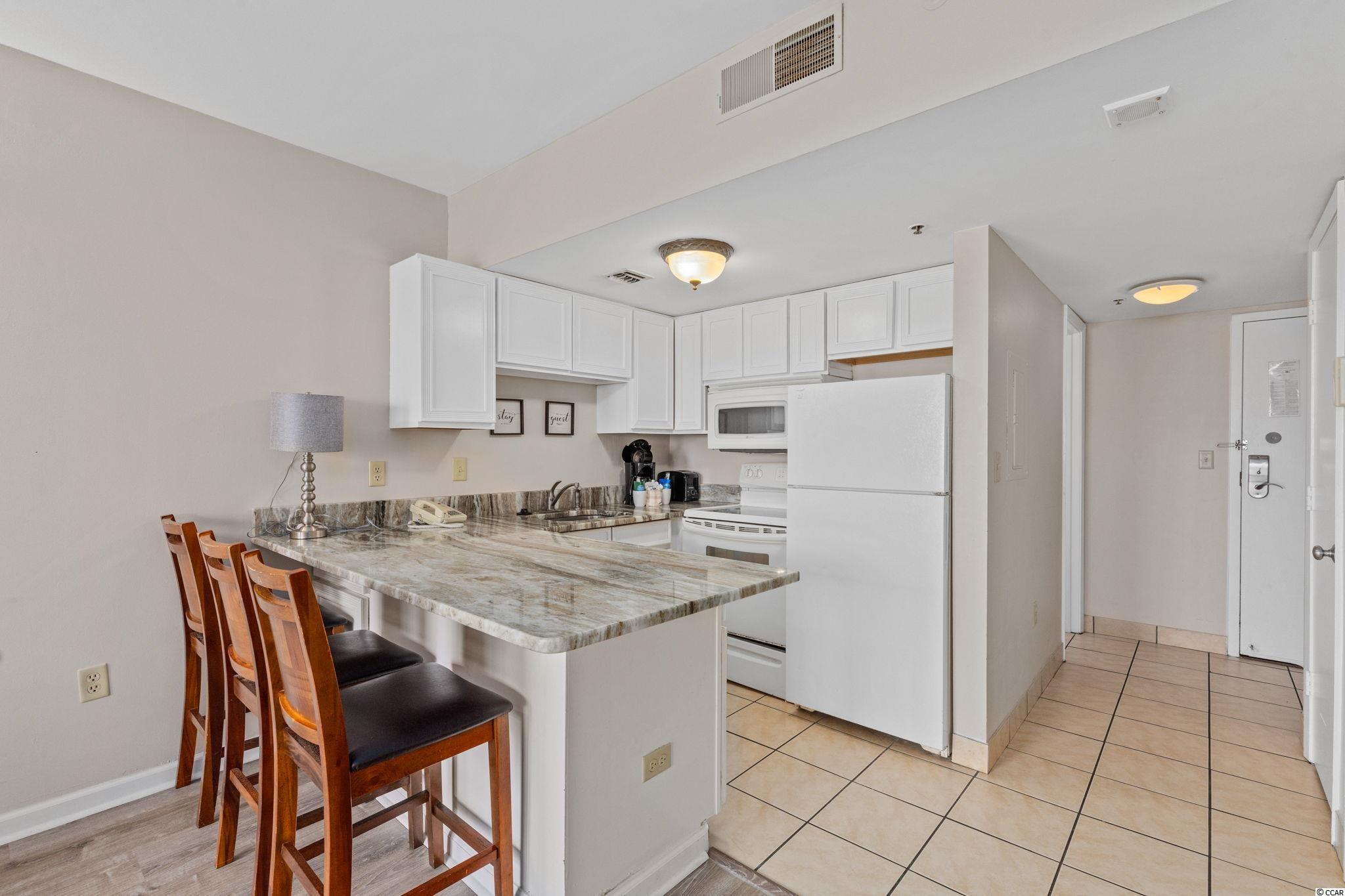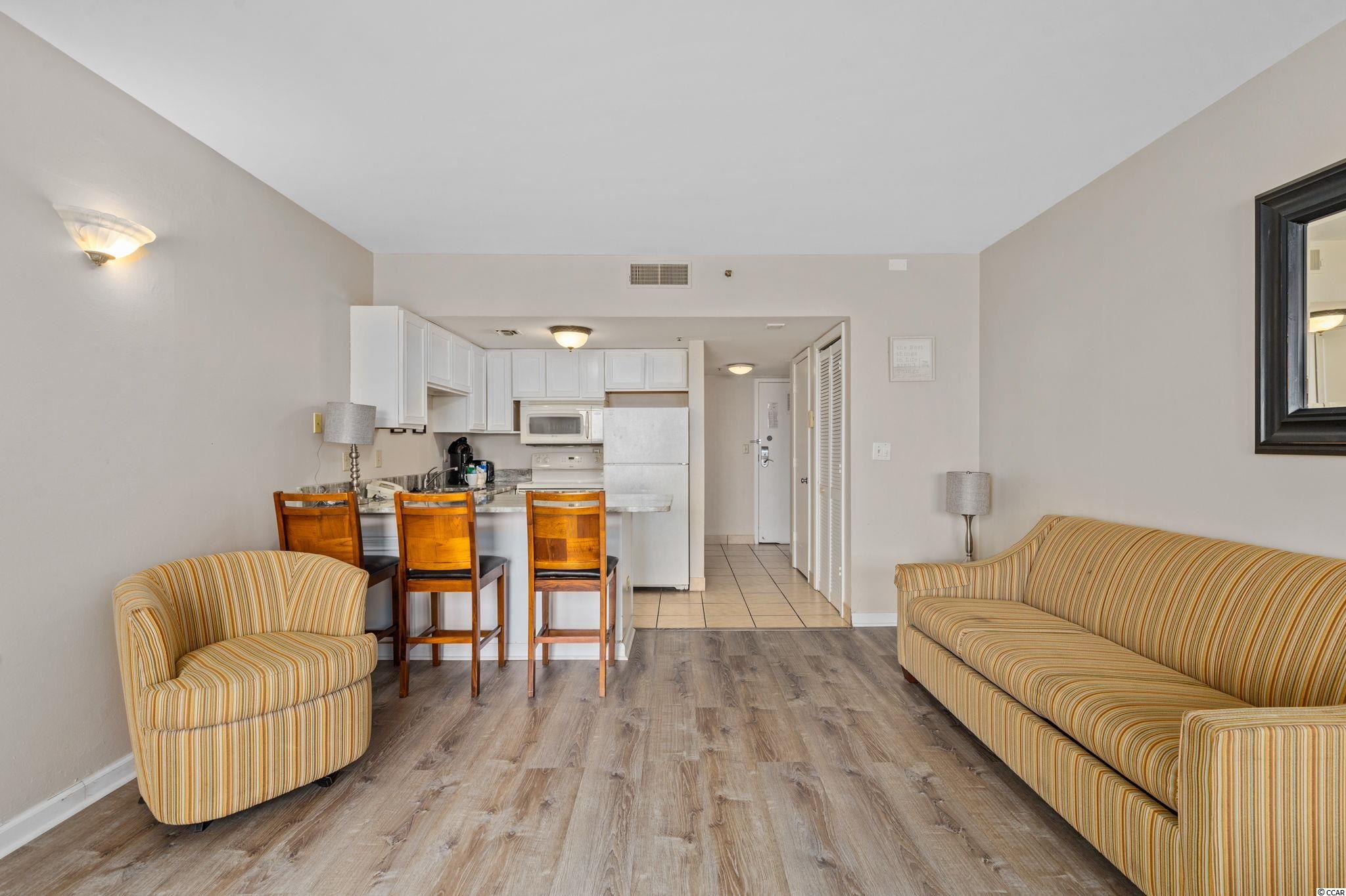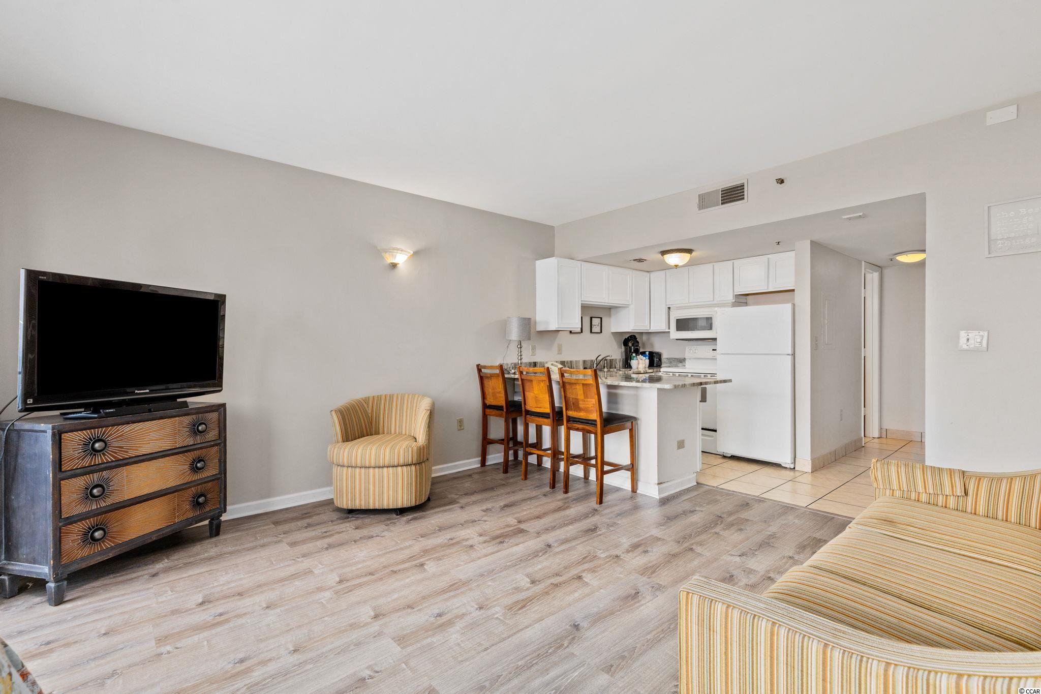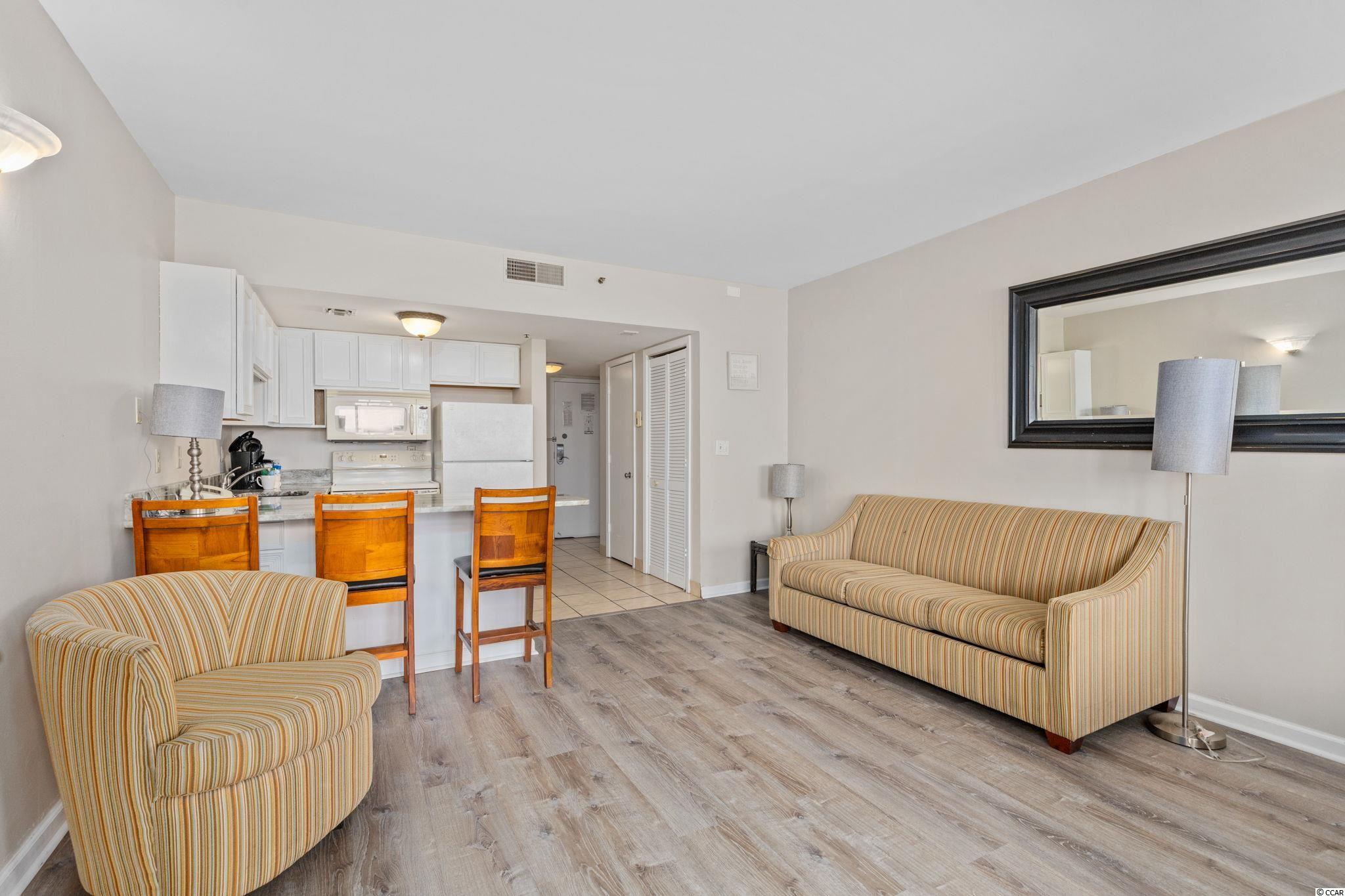 This is a great updated vacation or rental unit located at The Palace Resort in Myrtle Beach. This spacious efficiency condo has an open floor plan conjoining the bedroom, spacious living room, and large kitchen overlooking a beautiful oceanfront view. Condo comes fully furnished featuring new paint, new vinyl, and new granite counter tops in the full kitchen. All owners and guests of the resort get to enjoy all amenities including the indoor/outdoor pool, multiple hot tubs, an indoor exercise area, and a lounge room. In addition to the plethora of amenities guest and owners can indulge in the onsite bar and grill. Conveniently located just steps away from the beach, as well as nearby restaurants, shopping, golf, and many other attractions. You won't want to miss out on this opportunity to live your dream beach lifestyle.
