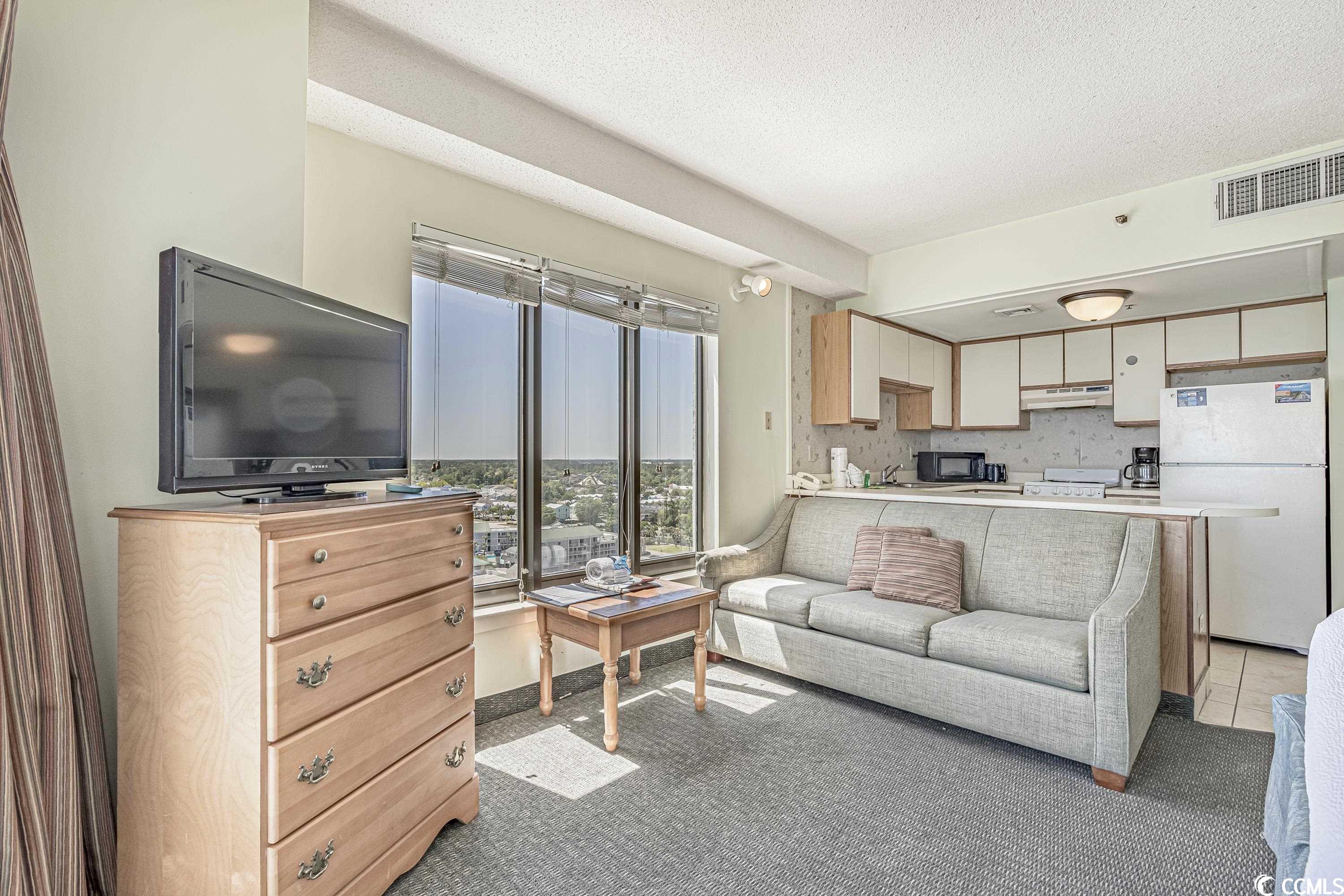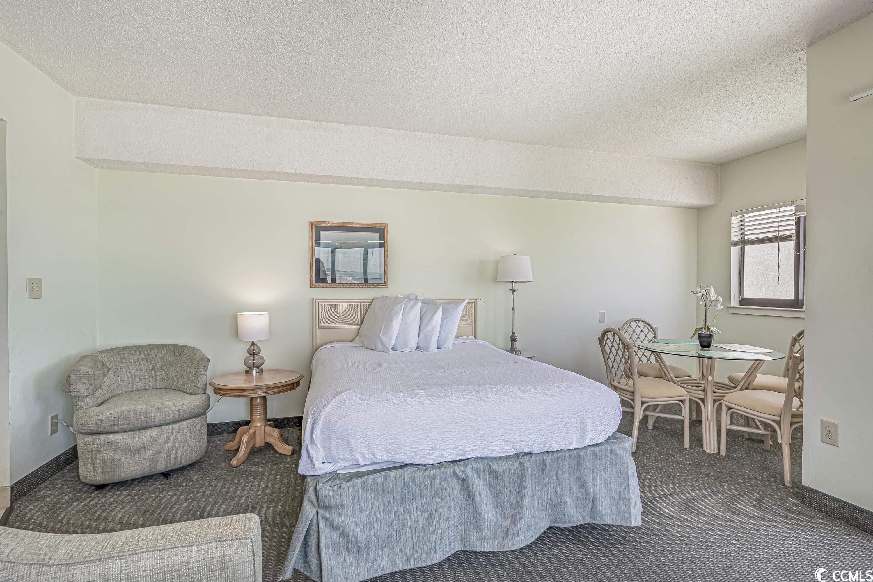 Looking for a beachfront escape or investment property? Look no further than this cozy efficiency oceanfront condo! Located in a prime location, this charming condo boasts stunning ocean views and all the amenities you need for a comfortable and relaxing stay. This unit is a renting machine! Step inside and be greeted by a bright and airy living space, with large windows that offer panoramic views of the ocean. The efficient layout maximizes the use of space, with a comfortable living area, a fully equipped kitchen, and a dining table for four. This unit is an end unit providing more space and extra windows! The sleeping area features a comfortable queen-sized bed, a large closet, and a flat-screen TV for your entertainment. The ensuite bathroom features a shower, and all the essentials you need to feel at home. Step outside onto the private balcony, and take in the breathtaking ocean views, with plenty of space to sit and relax. With access to all the amenities of the resort, including a swimming pool, fitness center, and 24-hour security, sauna, putting green, attached parking garage, this efficiency oceanfront condo is the perfect retreat for couples or solo travelers looking for a peaceful and relaxing getaway. Book your stay today and experience the ultimate in beachfront living or your next investment property!