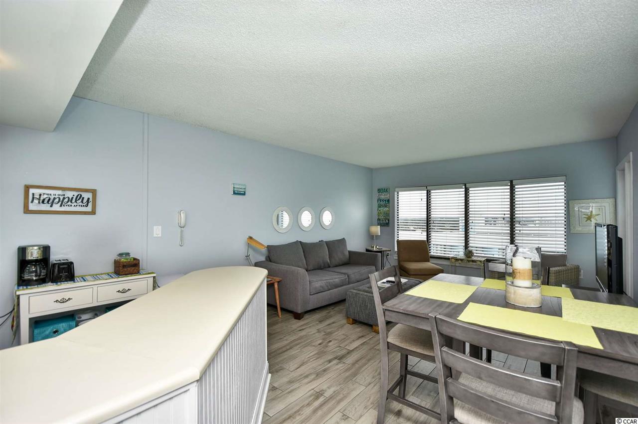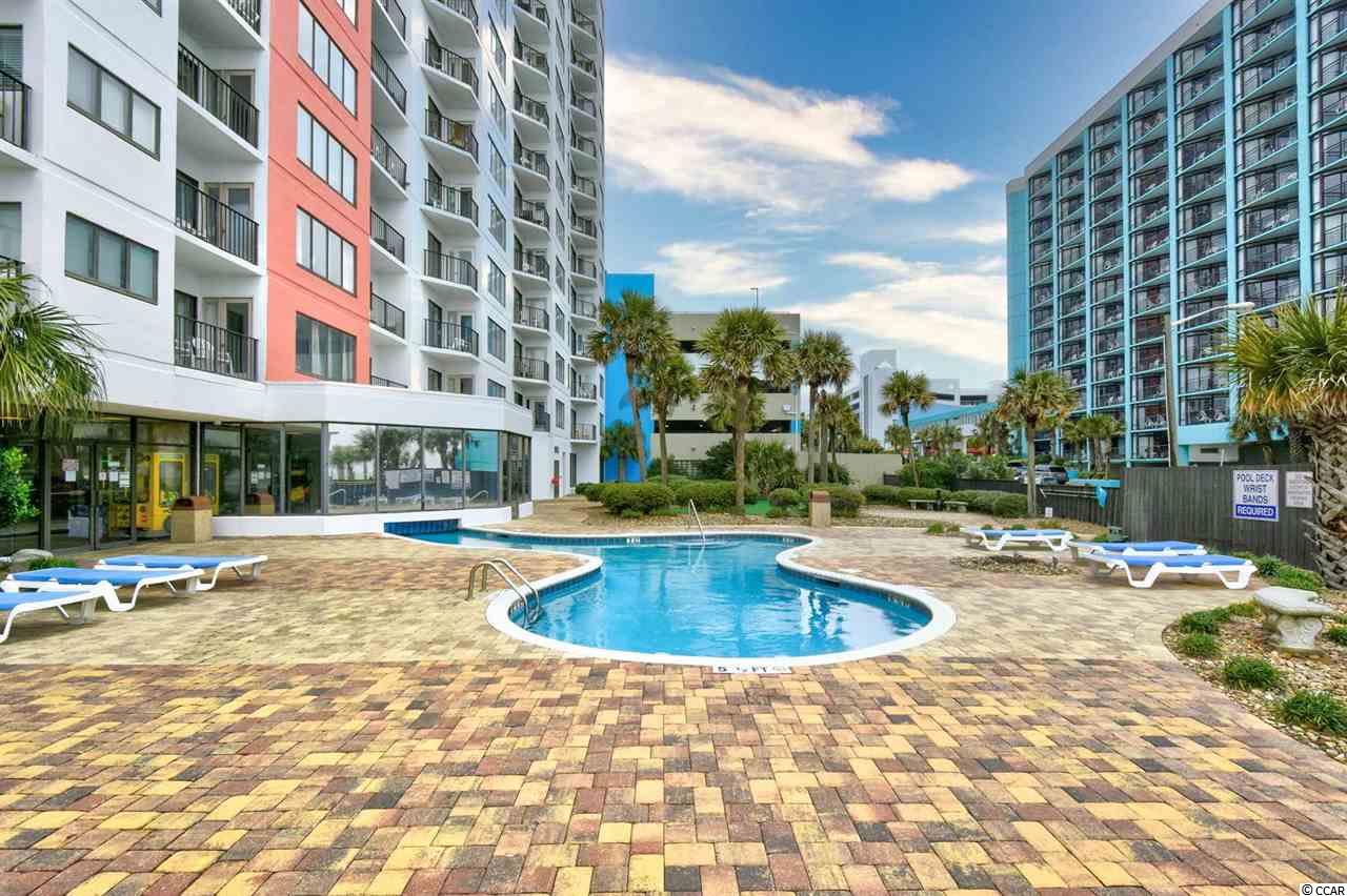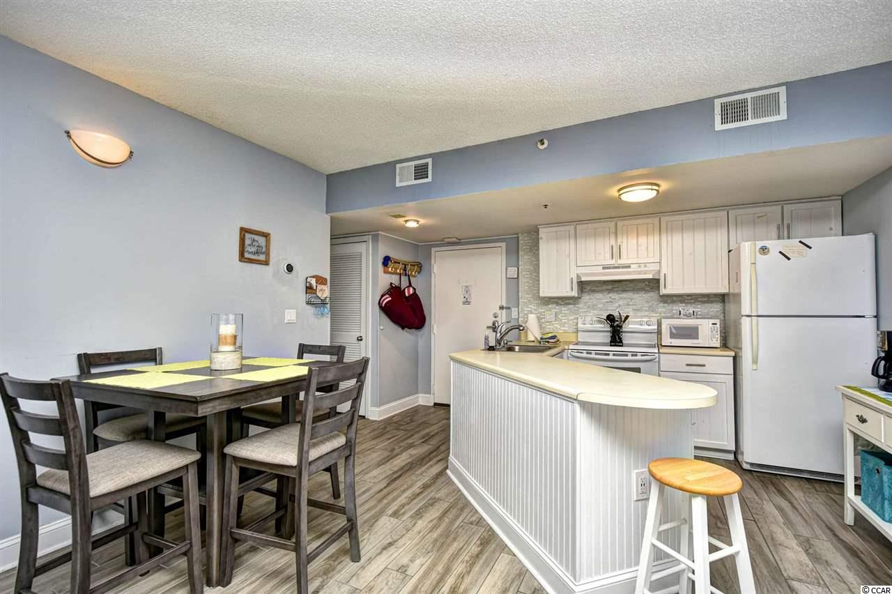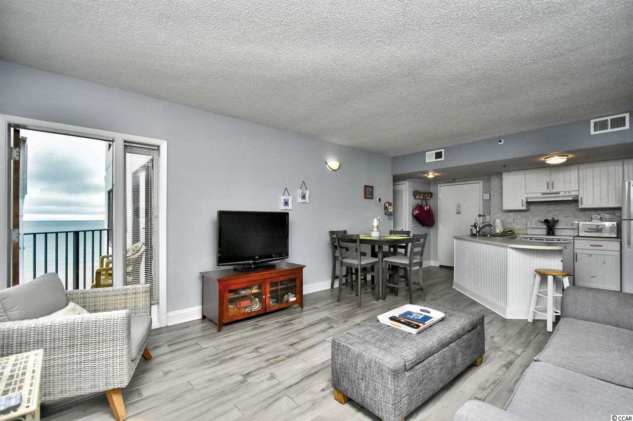 Welcome to this fully furnished, 1 bedroom, 1 bathroom unit in the highly sought after resort, The Palace. This unit features a spacious open floor plan of the main living areas with upgraded tile flooring and beautifully coordinated furnishings throughout. The kitchen is equipped with all appliances, an abundance of cabinet and counter space, a small bar with room for one bar stool, and full size dining area that seats 4. The bedroom includes plenty of closet space and access to the bathroom, featuring upgraded floor to ceiling sleek grey tile. Enjoy the ocean views from your 15th floor balcony, accessible from the living room and the bedroom, and spend your afternoons at the many amenities in the building. The Palace offers indoor and outdoor pools, hot tubs, onsite laundry and exercise facilities, onsite bar and dining, game room, oceanfront sun deck, and more. Perfectly situated in the heart of Myrtle Beach, close to all of the Grand Strand's finest dining, shopping, golf, and entertainment attractions. Whether you are looking for a second home on the beach or your next investment opportunity, you won't want to miss this. Schedule your showing today!