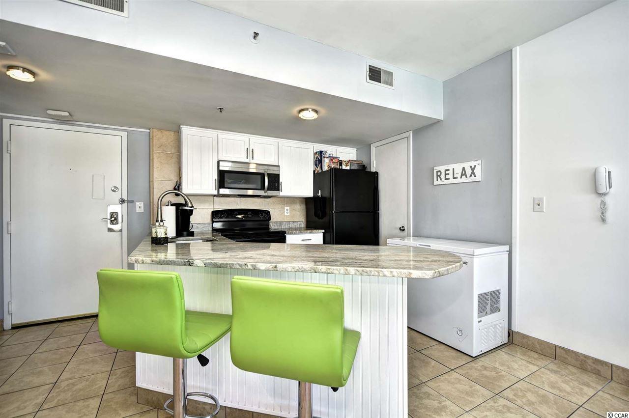 Welcome home to your new 1 bedroom, 1 bath unit! Located on the 16th floor at The Palace, you have a beautiful ocean view directly from your balcony. Just look down and you will see some of the wonderful amenities that this property has to offer. This unit has the unique feature where the bedroom faces the ocean! New walls, windows, and title flooring have been installed, and this condo has no popcorn ceilings! The Palace has two oceanfront pools, an indoor pool, multiple hot tubs, a putting green, a gym, a sauna, steam room, guest laundry facilities, Castle Meeting Room, and an arcade/game room. Not feeling a drive to the grocery store? You will be able to fill those craving needs at The Palace Lounge and The Palace Restaurant. Inside your furnished unit, you will have gray flooring within the unit, and matching white kitchen appliances. The Palace is located within a short drive to Walmart, Food Lion, CVS, Coastal Grand Mall, and Market Commons. This unit will make a perfect second home, or rental property. Schedule that showing now, this won't last long!