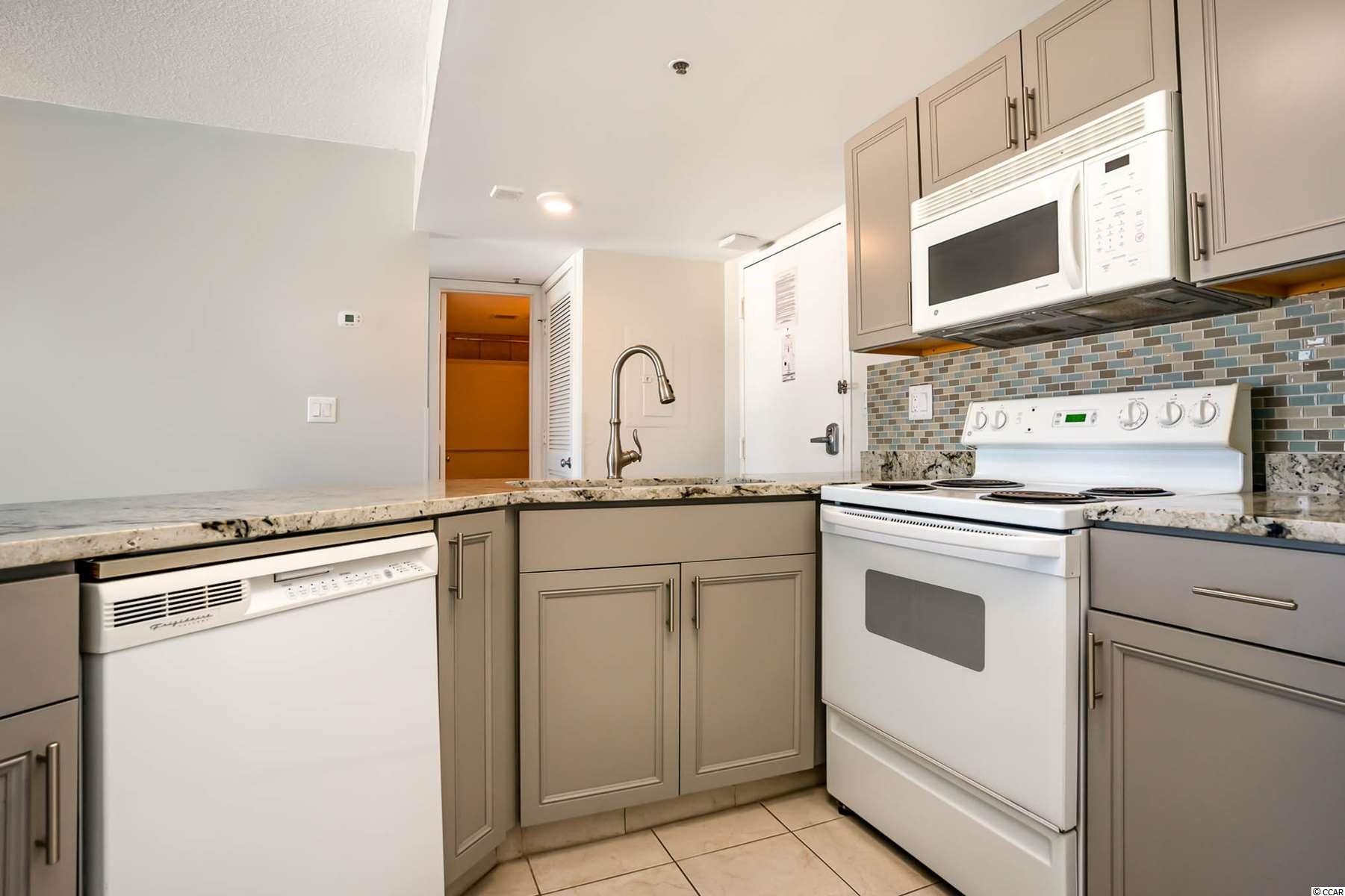 Fully renovated, move-in ready, oceanview, 1 bedroom, 1 bathroom condo in The Palace! This true one-bedroom unit offers breathtaking views of the Atlantic Ocean from this 17th-floor! During the day you are overlooking the beach and at night the city skyline of Myrtle Beach with the Sky Wheel as a backdrop. The unit is full of windows and presents an incredibly open feel and has a crisp clean dcor. When you enter the condo, the views are spectacular. The fully equipped kitchen features beautiful granite countertops, new cabinets, a tile backsplash and a breakfast bar. The bedroom has a closet and private access to the oceanview balcony. The bathroom has a large vanity with a vessel sink, high-grade Italian tile and a shower/tub combination. Enjoy your morning coffee or evening cocktail on the oceanview balcony! Additional fine features of this unit are new vinyl plank flooring throughout the main living area & bedroom, tile in the wet areas, new furniture, new cabinets, new lighting, mirrors and drapes. On top of this fantastic unit, The Palace offers plenty of amenities for everyone. Including an indoor pool, ocean-front outdoor pools, hot tub/spa, fitness room, sauna, putting green, restaurant/lounge, laundry facility and an enclosed attached parking garage that offers immediate indoor access to the unit. Located on the Grand Strand close to all of the shopping, dining, entertainment, golf, area attractions and all the beach has to offer! An excellent choice for a vacation home or a potential rental. Don't miss out! Schedule your showing today!
