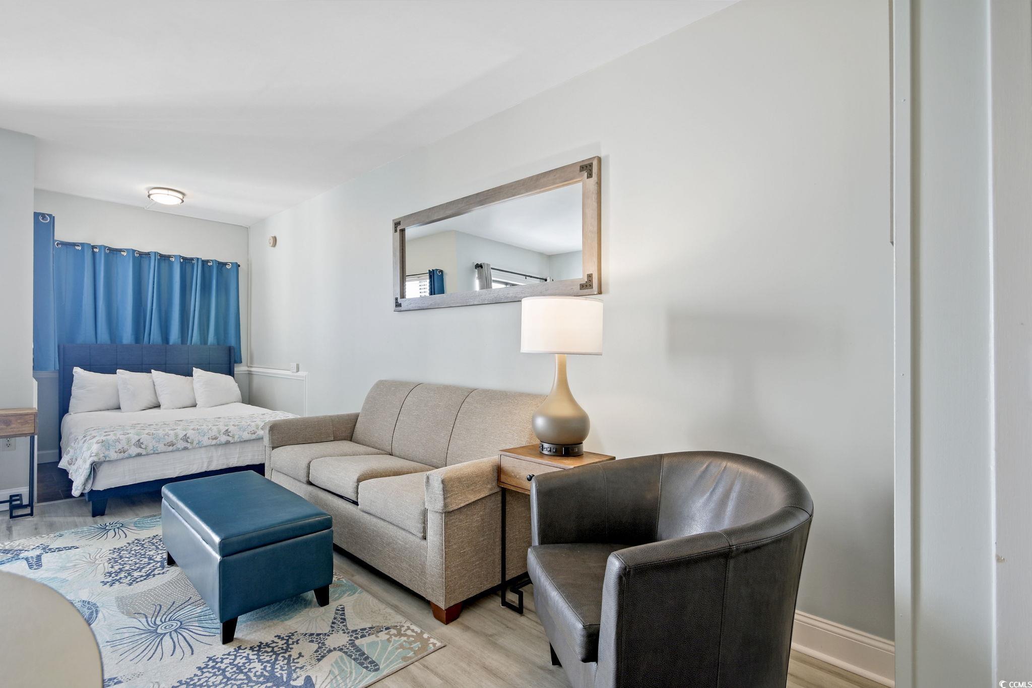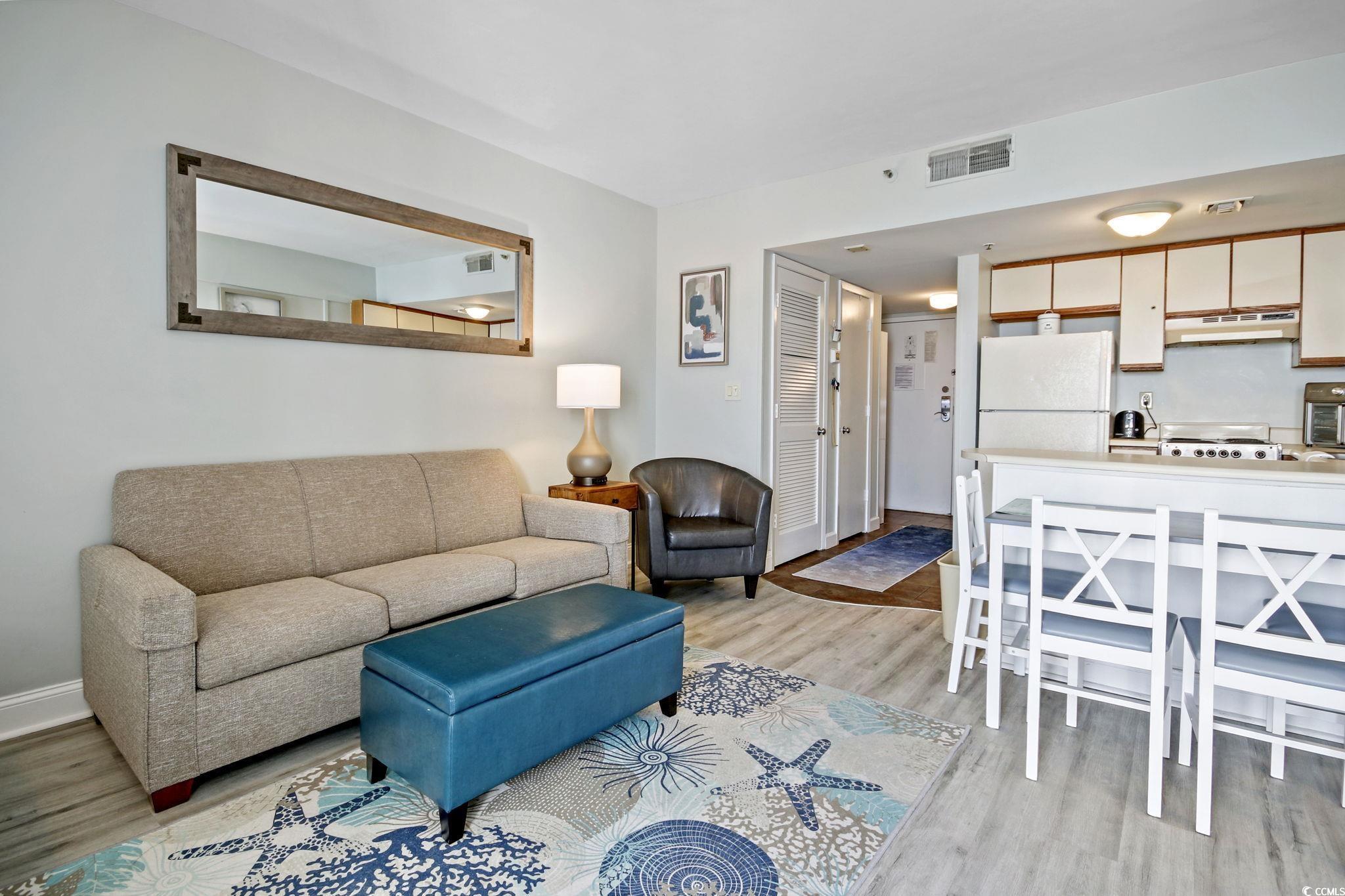 The perfect OCEANFRONT efficiency condo in the heart of Myrtle Beach! Beautifully updated in 2023 with beachy furniture & decor, light & bright wall paint, plank flooring, modern light fixtures, new bathroom vanity, new window treatments & linens, new wall art and the finishing touches to make Unit 1902 @ The Palace an IMPRESSIVE OCEANFRONT CONDO! Enjoy spectacular sunrise views from every angle! A PRIVATE BALCONY offers long distance views of the coast, and windows above the bed overlook the ocean and provide tons of natural light and views for miles! A small, but well equipped kitchen has plenty of cabinet and countertop space, full size refrigerator, range, microwave and a peninsula. LOW HOA DUES make owning an oceanfront condo comfortable without sacrificing best in class amenities.The fun doesnt stop on the beach or with low HOA dues either - The Palace boasts indoor and outdoor pools, hot tubs, mini pools, a mini putting green, a fitness center with newer exercise equipment and so much more! Load, unload and park easily with the ATTACHED PARKING GARAGE! Unit 1902 @ The Palace is an excellent choice for owning a short term rental and is the perfect getaway for owners and guests!