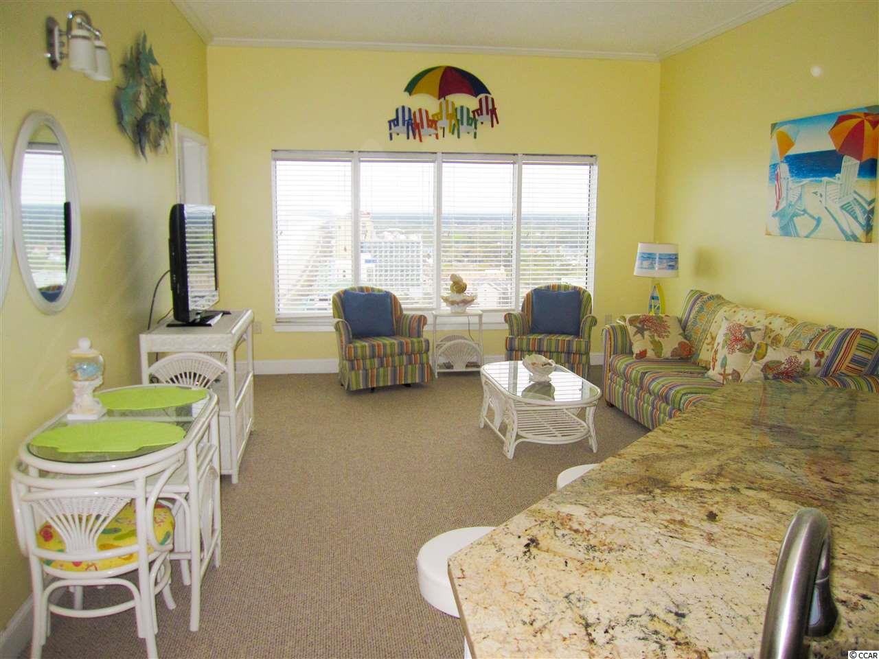 Stunning view from the 23rd floor of this awesome 1 bed, 1 bath penthouse unit in the highly desirable Palace oceanfront building. Enjoy gorgeous Carolina sunrises or sunset with a cup of coffee or a cocktail right from your balcony from this top floor unit which has higher ceilings. Step right out onto the sand to enjoy all the Atlantic Ocean has to offer. This slice of paradise offers amazing amenities, including two oceanfront outdoor pools, indoor and outdoor whirlpools, an onsite putting green, exercise room, sauna and steam room, free wifi, and an arcade for some fun with the kids. Whether you are looking for a vacation getaway or an investment property, this gem won't last long. Come see for yourself.