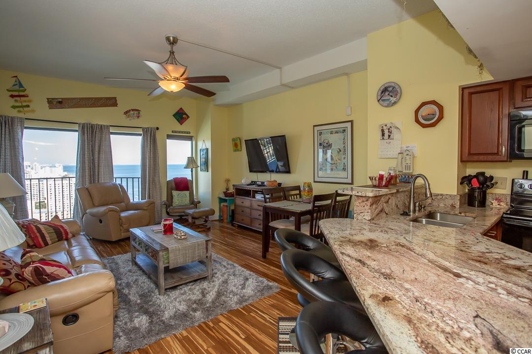 Magnificent 2BR-2BA penthouse condo in the Palace Resort! COMPLETELY REMODELED & BEAUTIFULLY FURNISHED! Plus amazing views! This unit features 10 ft ceilings, two balconies, tile and wood flooring, custom granite counter-tops in kitchen, tiled breakfast bar and many more up grades. Owner has used this unit only as a second home. Make this condo your beach-get-away! The Palace Resort features a host of amenities: Large oceanfront outdoor pool, indoor pool, whirlpools, putting green, exercise room, sauna, restaurant/lounge, free wireless internet, guest laundry facilities, attached parking garage. The Palace is minutes from Market Common, the Boardwalk, Broadway at the Beach and the Myrtle Beach Airport.