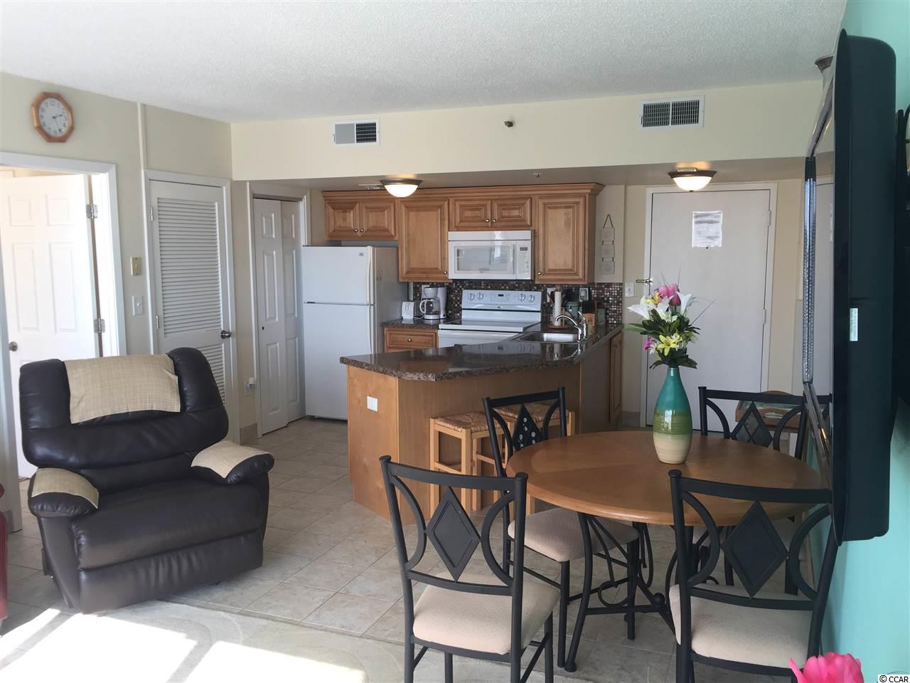 This southern ocean view condo is waiting for you! Well maintained 2BR-2BA unit with upgraded kitchen cabinets and counter-tops, tile floor throughout and beautifully furnished. Master bath has been remodeled. HVAC is 4 years old. The Palace Resort features a host of amenities: large oceanfront outdoor pool, indoor pool, whirlpools, putting green, exercise room, sauna, restaurant/lounge, free wireless internet, guest laundry facilities, attached parking garage. The Palace is minutes from Market Common, the Boardwalk, Broadway at the Beach and the Myrtle Beach Airport.