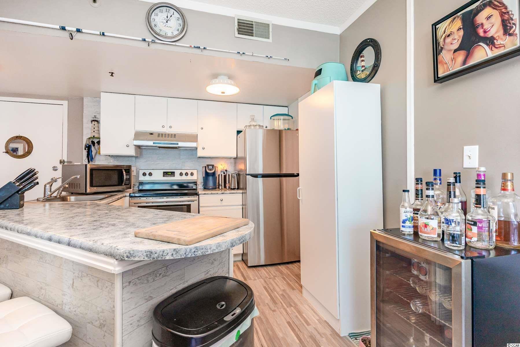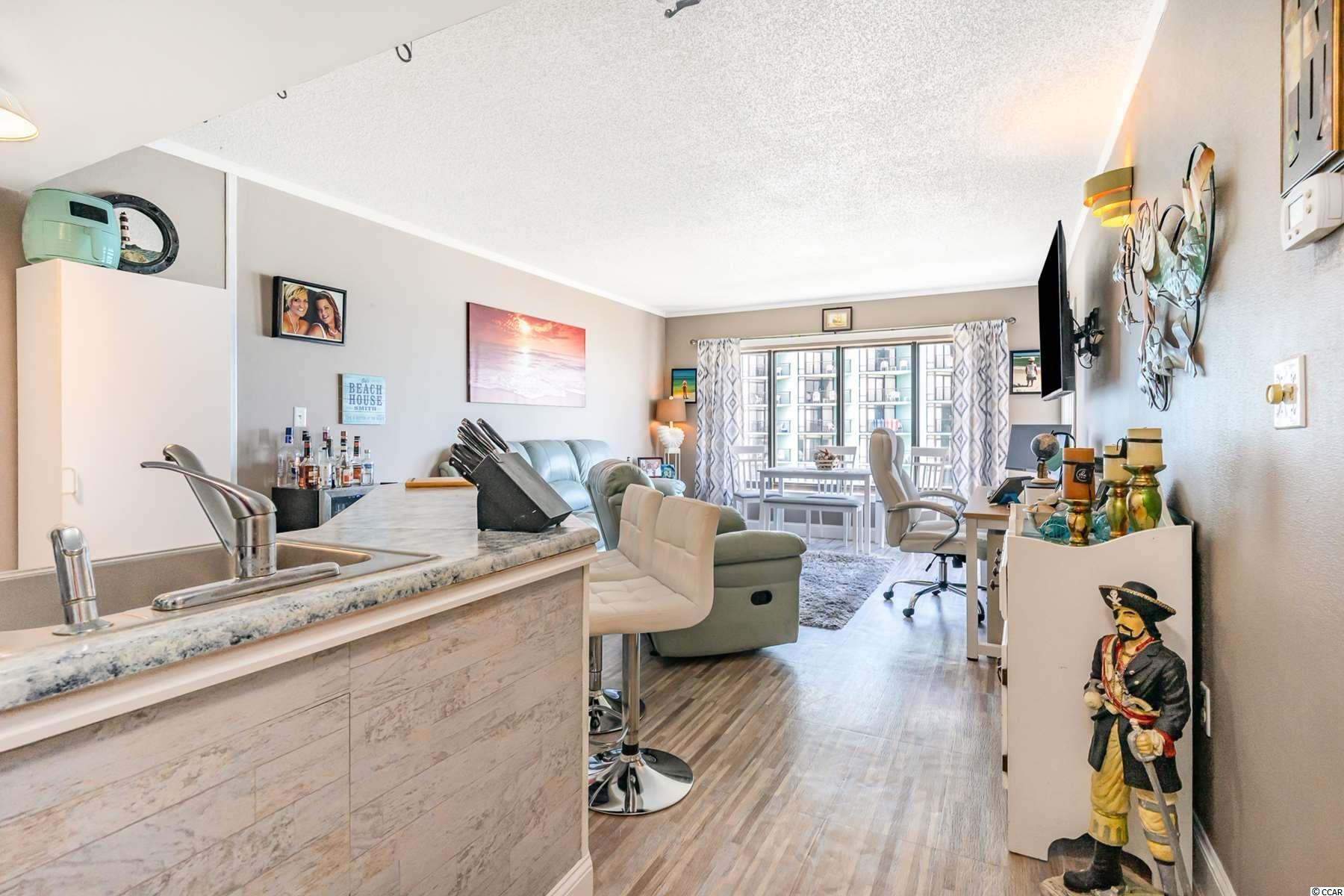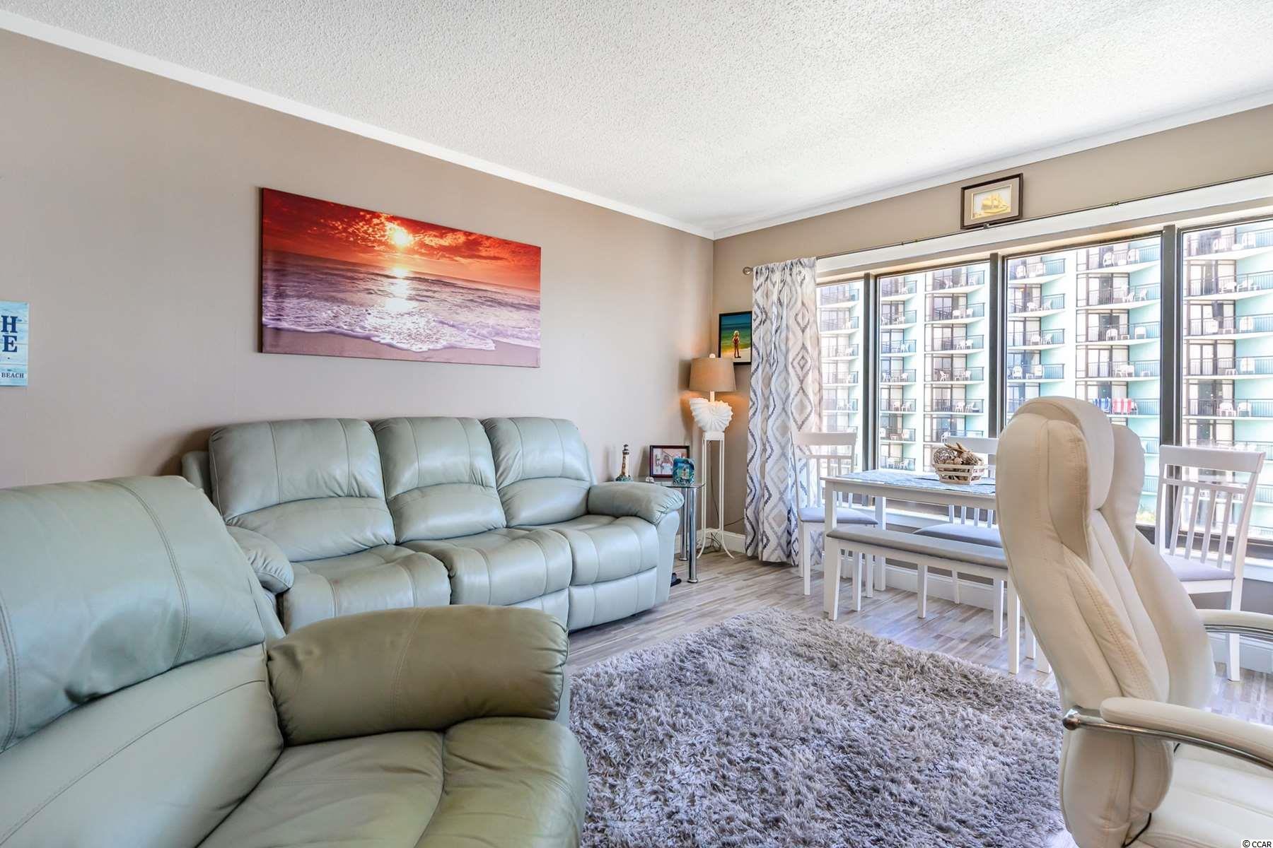 Welcome to this fully furnished 1 bedroom, 1 bathroom condo in The Palace resort! This unit includes a full kitchen with a large breakfast bar, and a very spacious living room with a door to the balcony and beautifully coordinated furnishings throughout. The master bedroom also includes access to your balcony with a view of the ocean and the outdoor pool area. The Palace resort owners and guests enjoy fine amenities, including an indoor and outdoor pool, several hot tubs, an exercise room, lounge area, an onsite bar and grill, and more! Conveniently located near all of Myrtle Beach's finest dining, shopping, golf, and entertainment attractions and just a few steps to the beach! Whether you are looking for an investment opportunity or a vacation getaway, you won't want to miss this!
